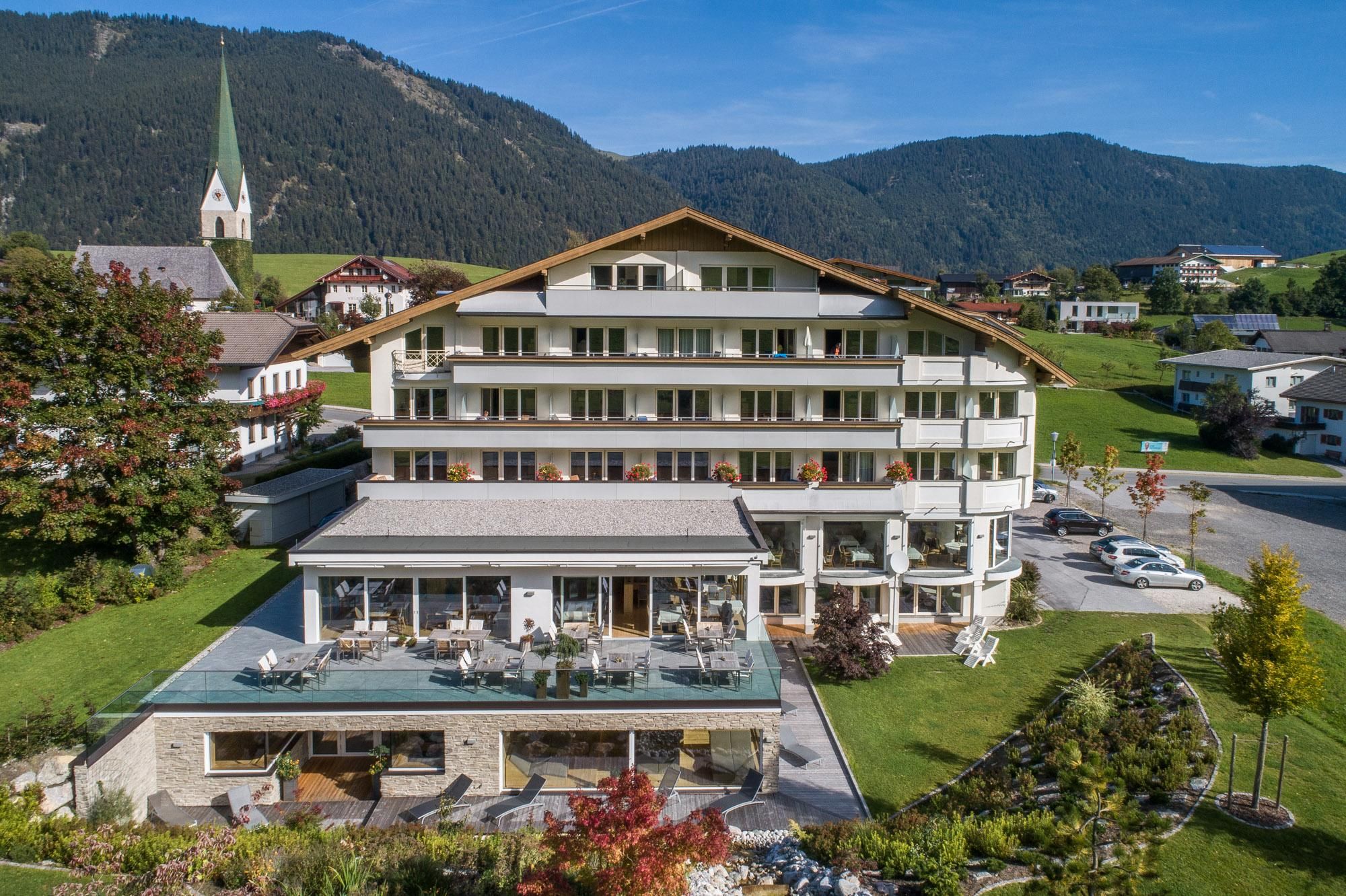 Situated in the heart of Hinterthiersee, Thierseerhof Hotel (90 Beds) offers all the comforts of a modern 4-star hotel: indoor swimming pool, wellness centre, massages, solarium, spacious rooms with all the mod-cons, garage, ski lift in front of your door, sunbathing lawn, impeccable service and excellent cuisine.