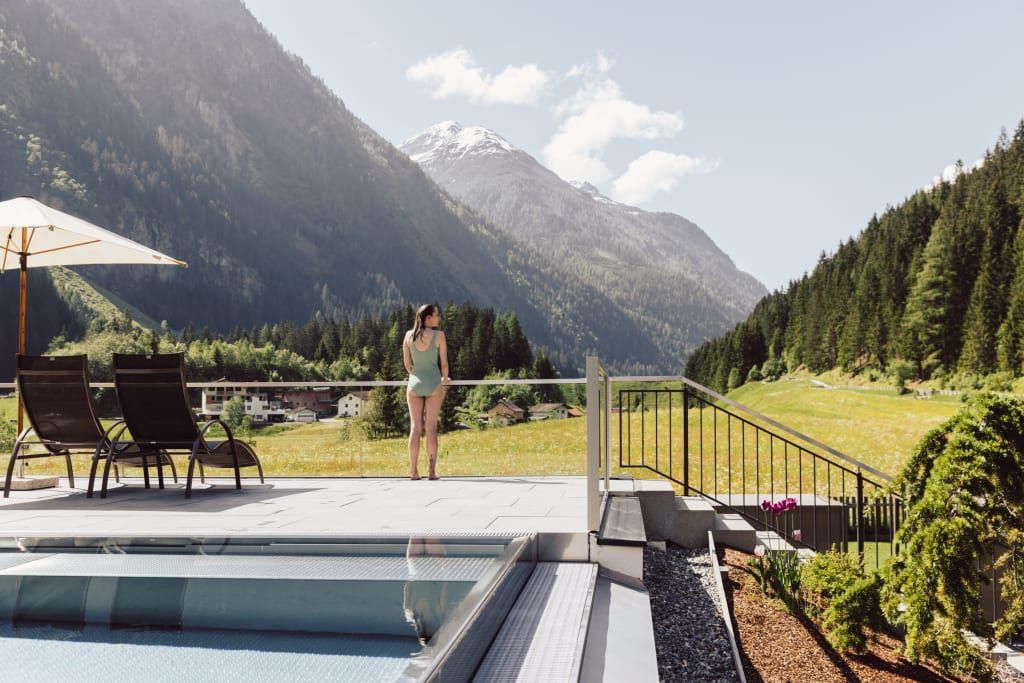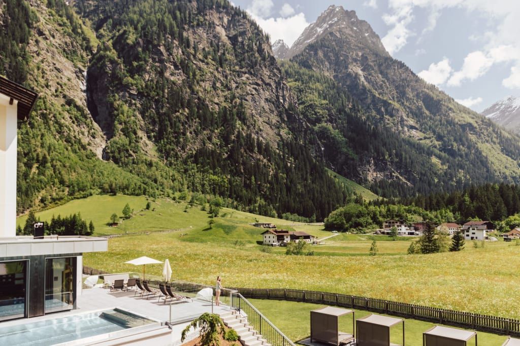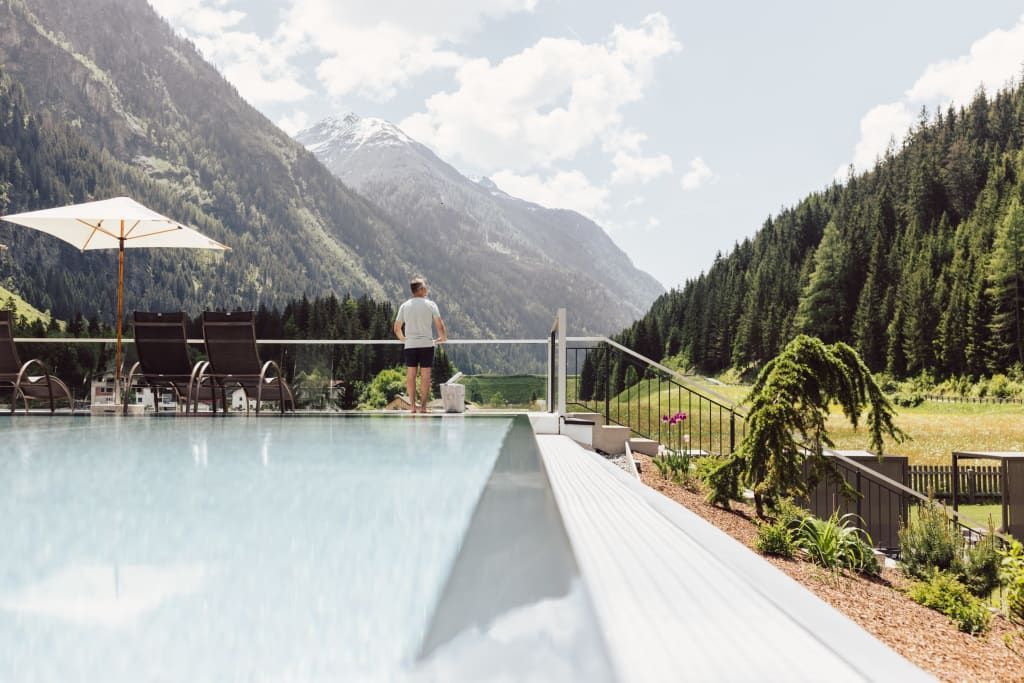 Surrounded by meadows, forests and the beautiful mountains of the Tyrolean Alps, Hotel Weisseespitze is located at the heart of the ruggedly picturesque Kaunertal Valley. Enjoy healthy mountain air, culinary delights and a wide range of sports and leisure options in a pleasant and friendly atmosphere of Tyrolean hospitality. The lift takes you from the spacious underground car park directly to the reception, convenient for wheelchair users. Here you will find cosy lounges and dining rooms with non-smoking areas. The 600 m² spa area consists of an infinity pool, 2 saunas, a steam bath, infrarot cabin and a relaxation room. There is also a small gym and also massages are offered . Additional facilities include a well-tended garden with a sunbathing area, outdoor tennis courts, a children's playground and a children's playroom. The spacious rooms and suites are equipped with all modern conveniences. The balconies offer fantastic views of the surrounding mountains and the valley. Half-board is included in the price and comprises the varied breakfast buffet with many healthy items, a hearty snack buffet or coffee and cake in the afternoon, and a 4-course dinner with a choice of dishes. If you book a whole week at Hotel Weisseespitze, a Gala Diner is also included in the price.