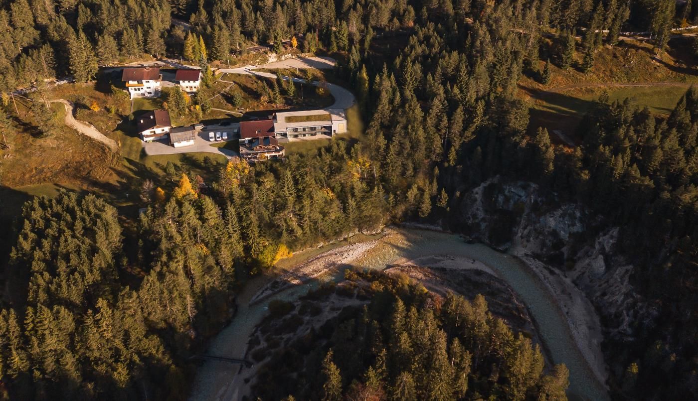 The ISARLODGE WIESENHOF was opened in December 2019. In Scharnitz, with a view to the young Isar, you can also find your "place of power" in the Karwendel. Where the Hinterautal-, Karwendel- and Gleirschvalleys meet, you can enjoy the view of the turqouise Isar and the surrounding mountain peaks, or take a walk through forests and unspoilt nature - far away from stress, everyday life, hectic and traffic.