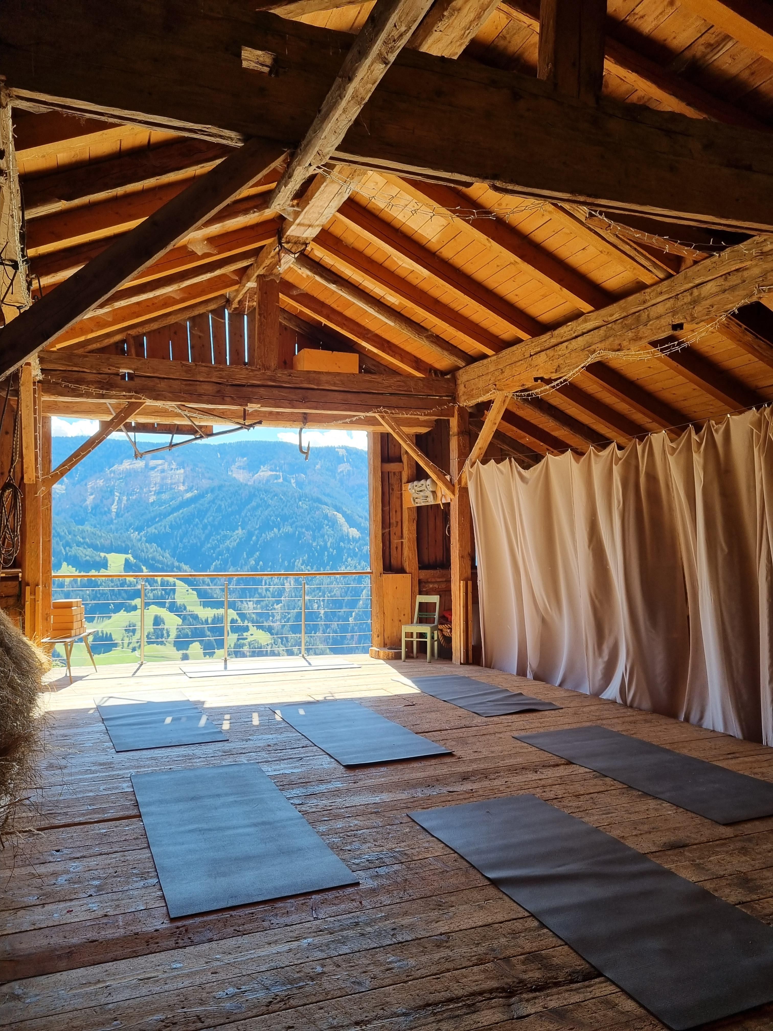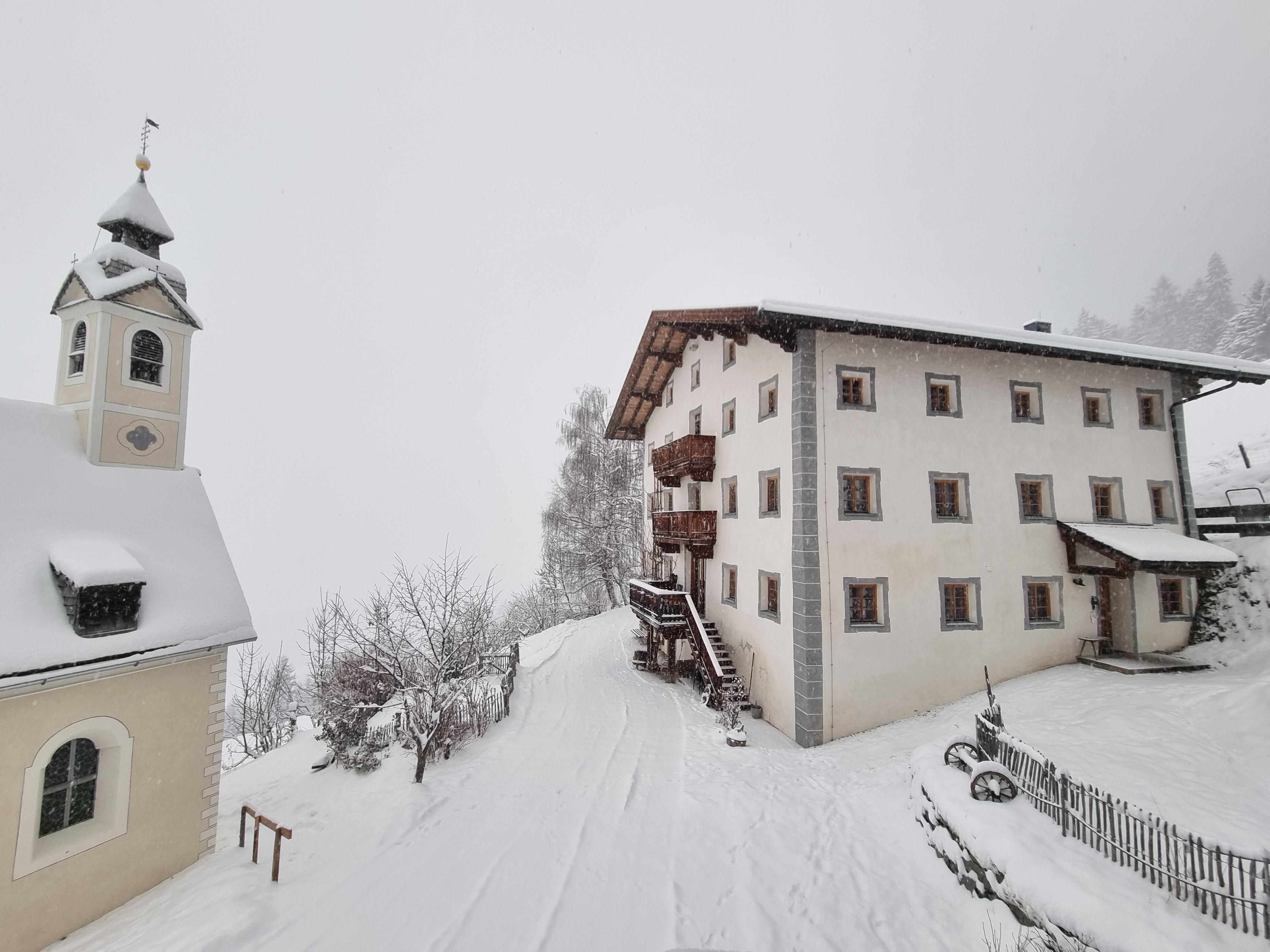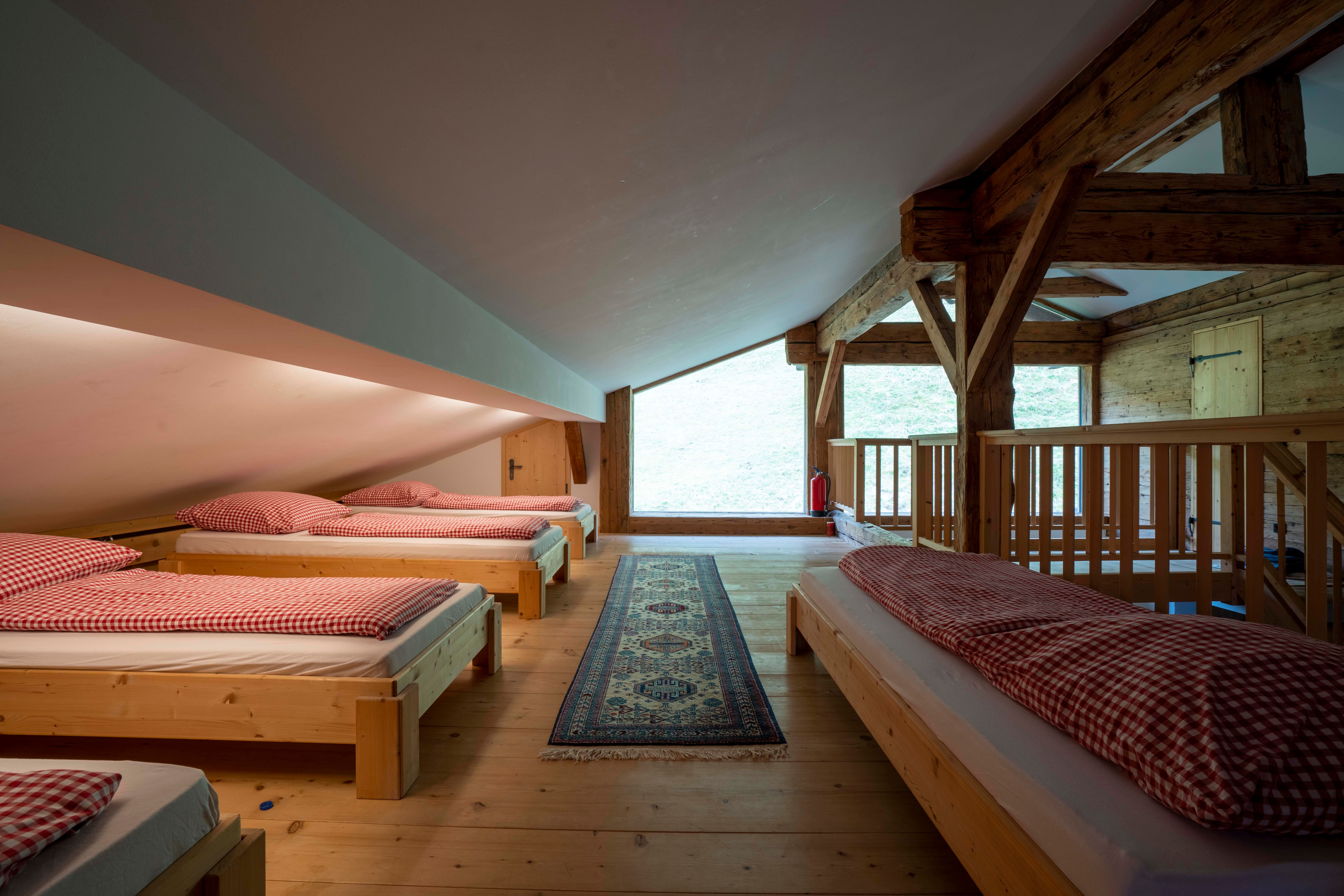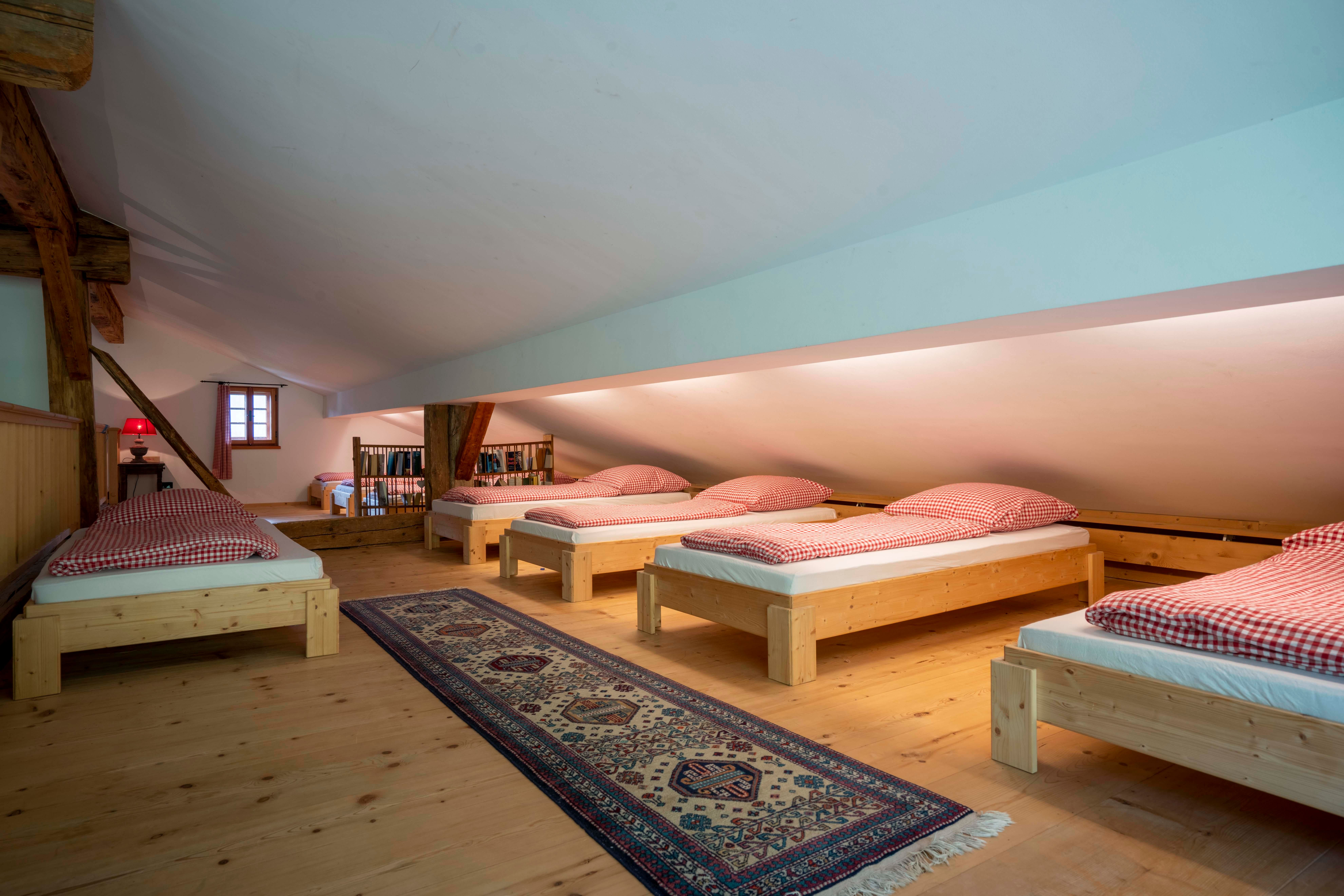 Next to the house is the chapel, stable building (farm animals, bouldering in the hay, outdoor yoga) and snack gardens. In summer, a swimming pond offers refreshment.