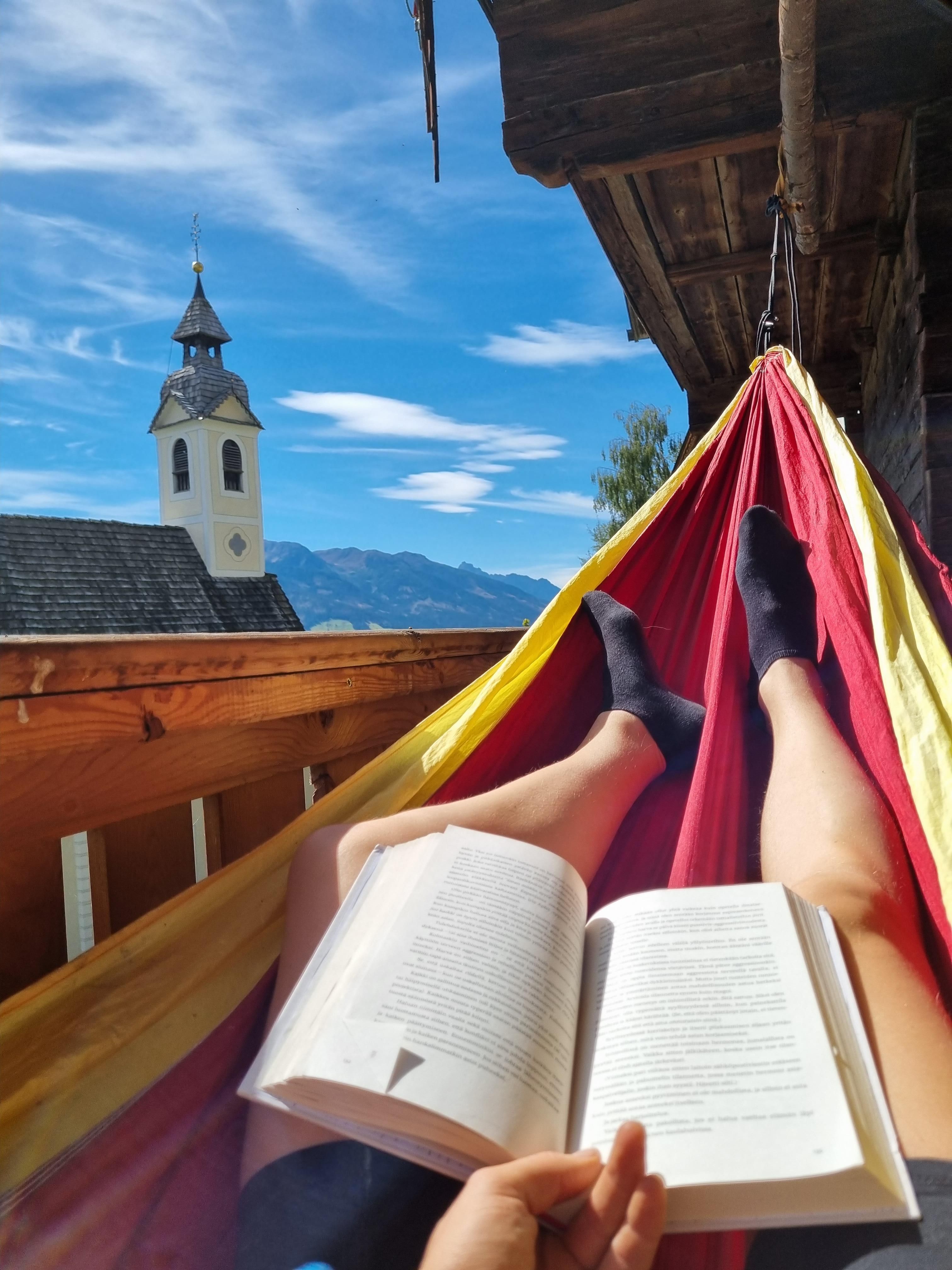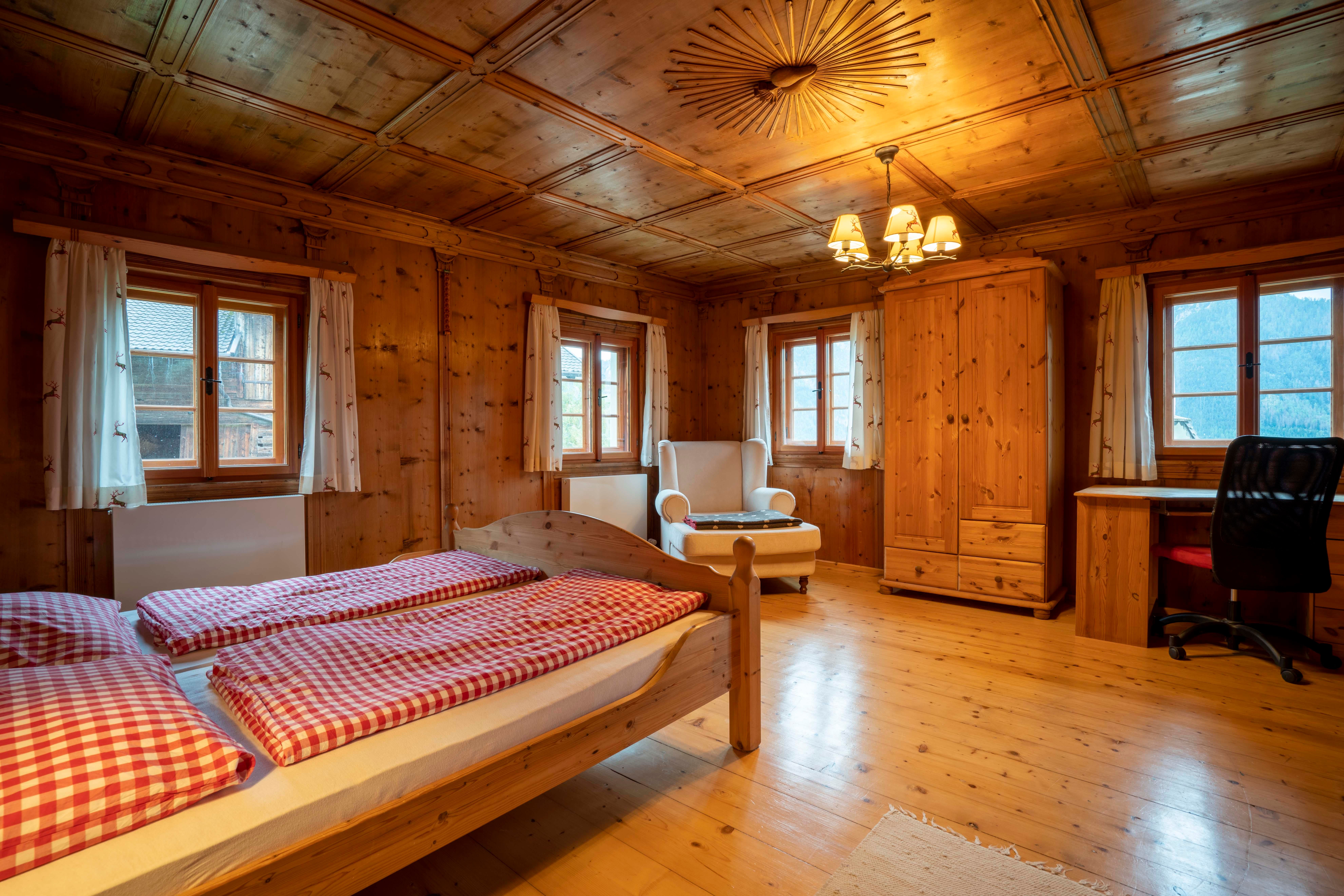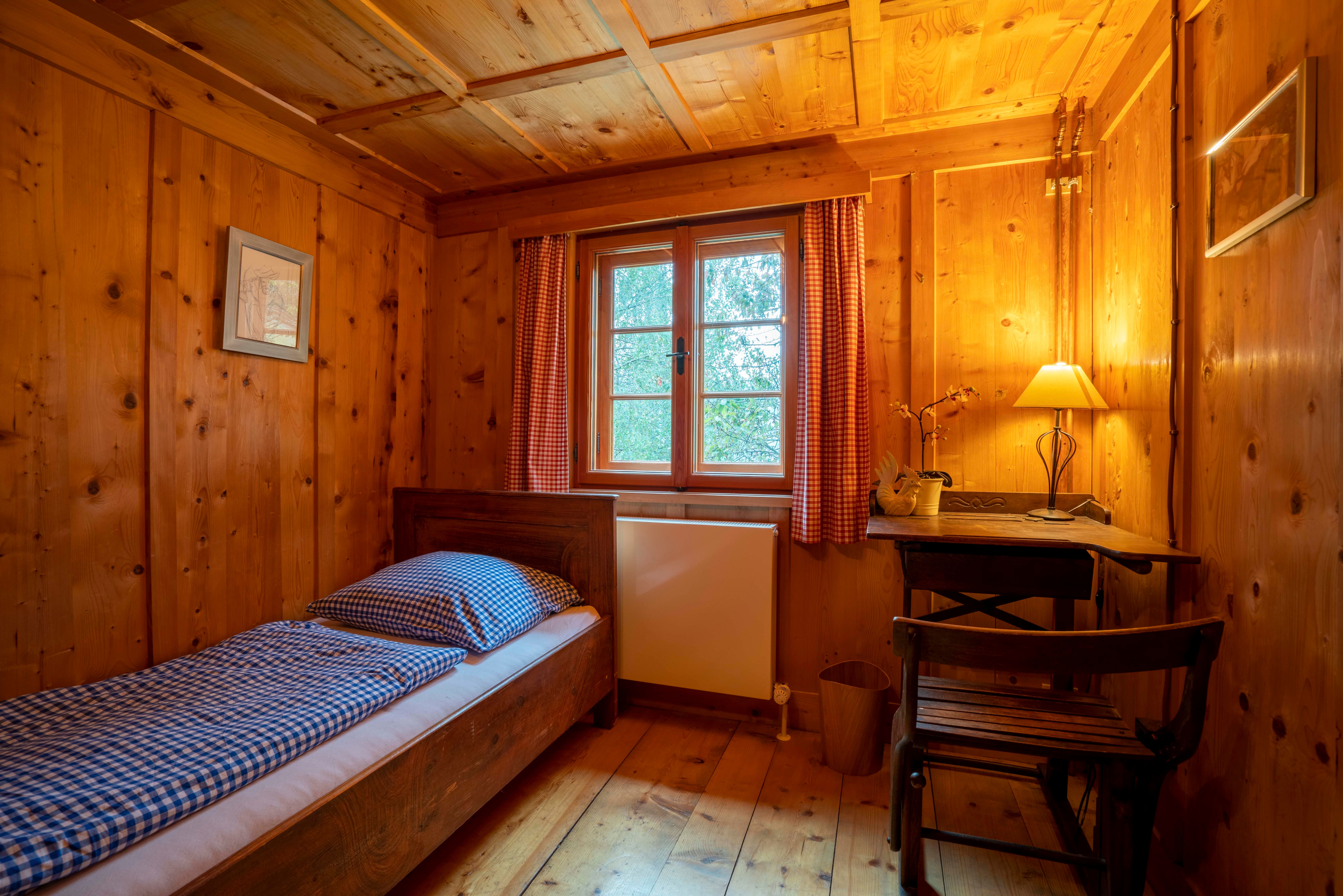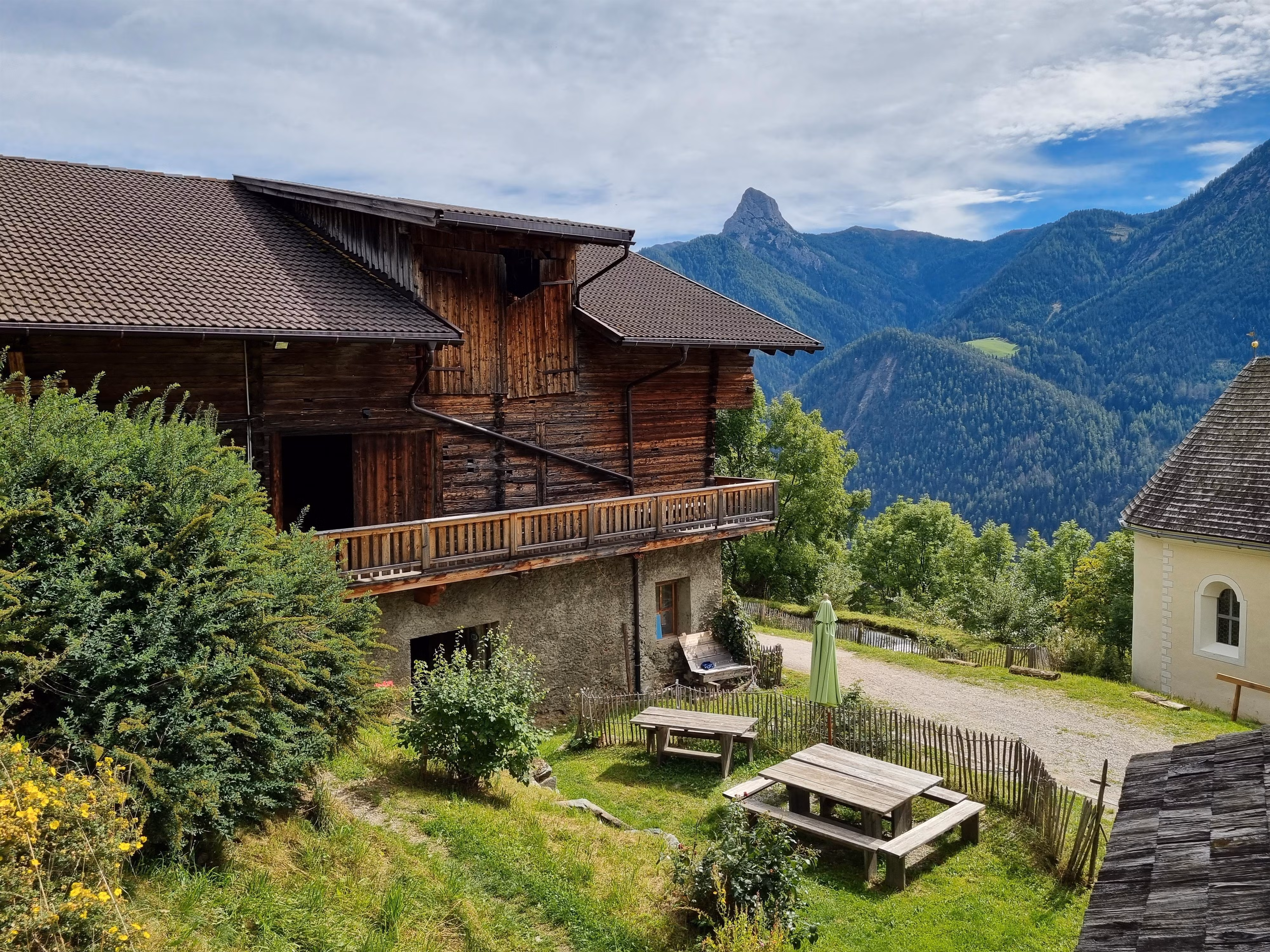 Next to the house is the chapel, stable building (farm animals, bouldering in the hay, outdoor yoga) and snack gardens. In summer, a swimming pond offers refreshment.