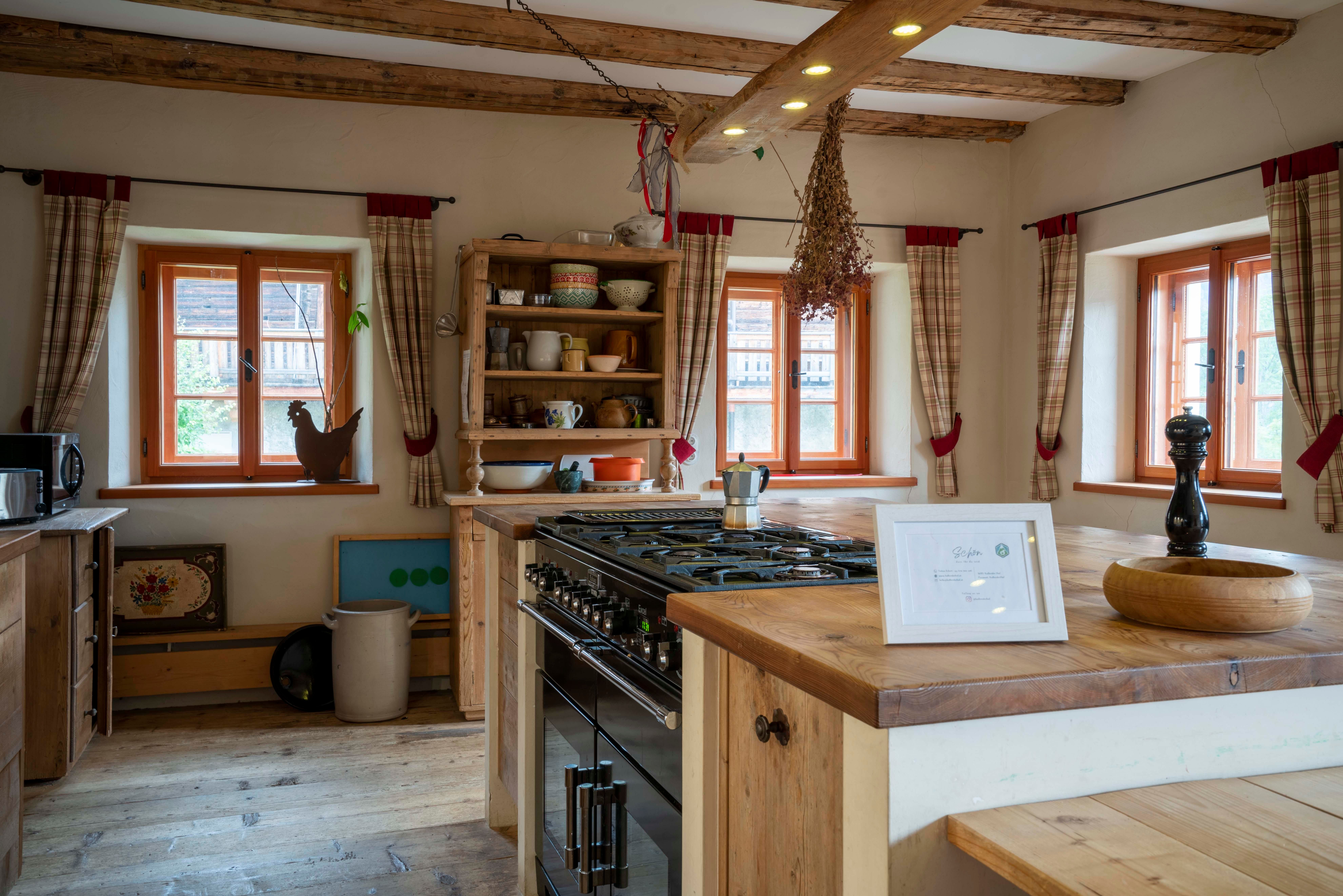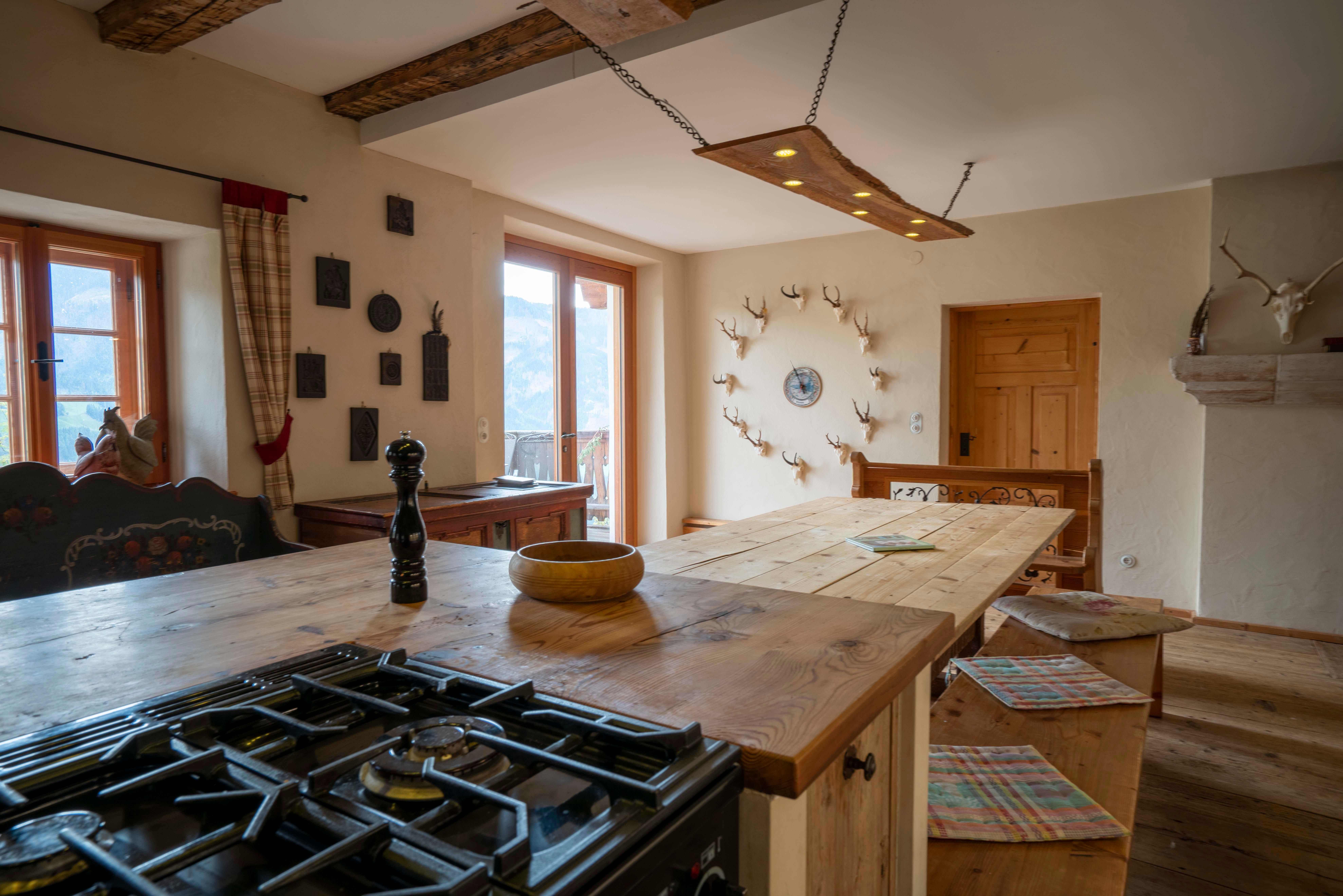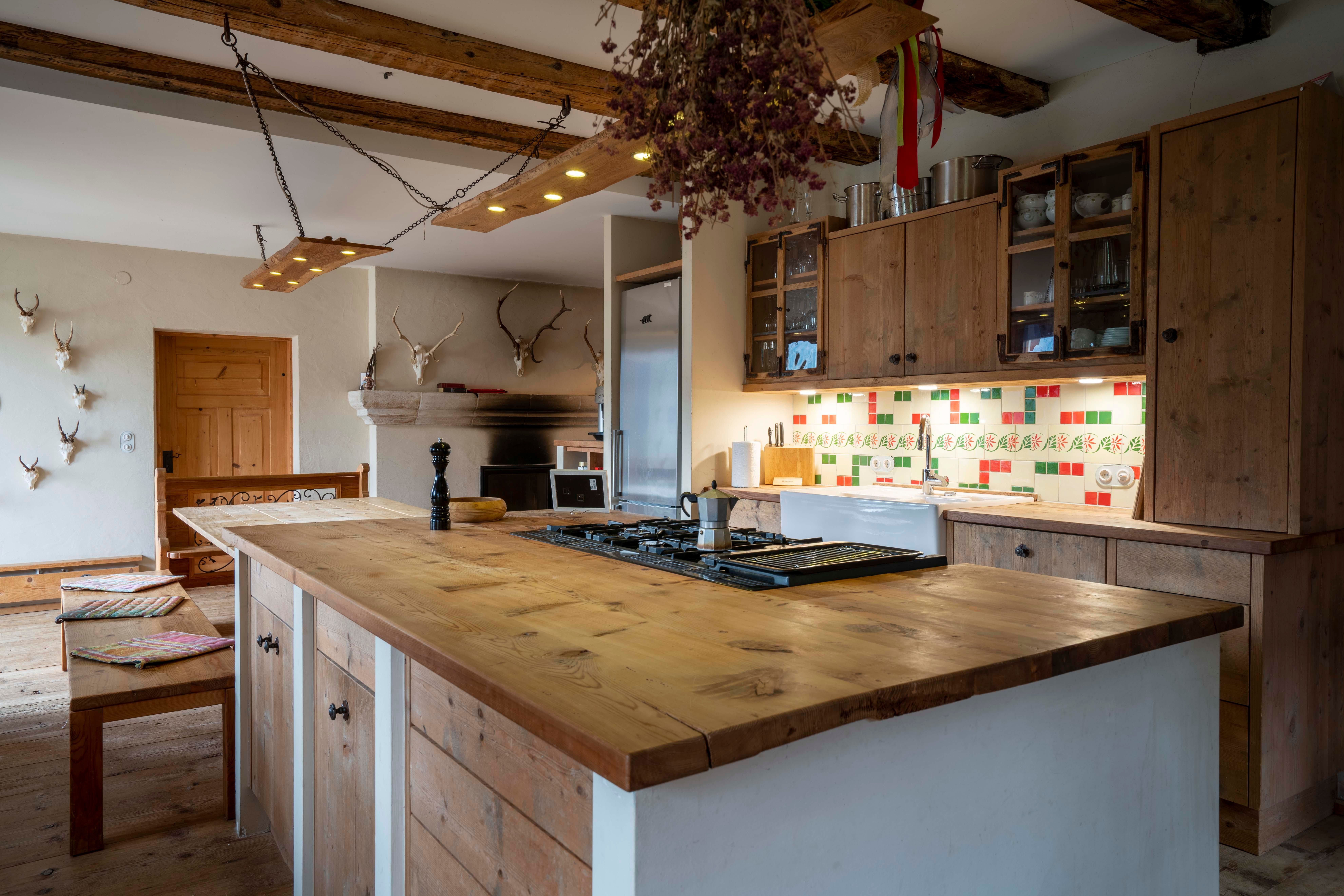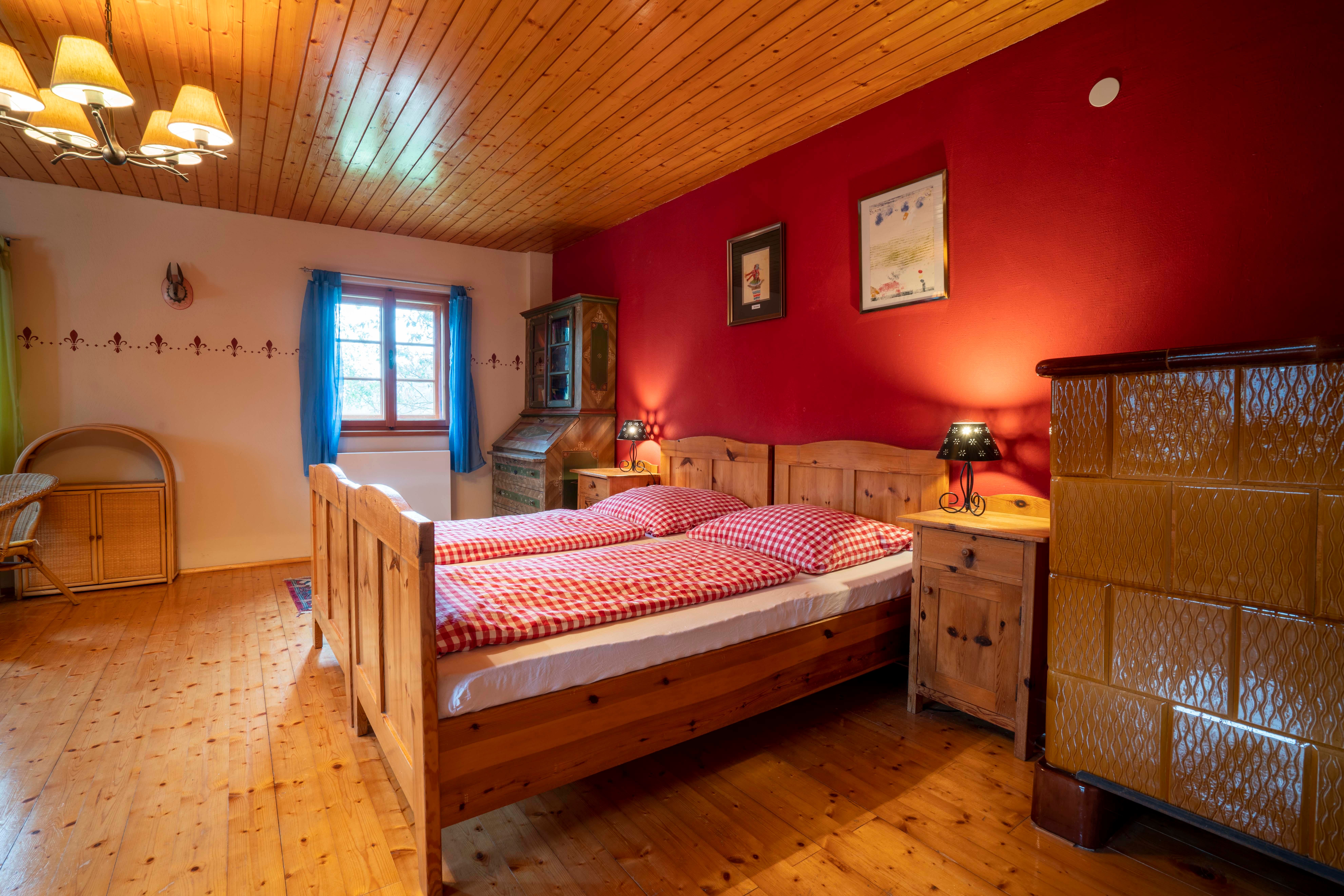 The kitchen, which is equipped with a large gas stove, is ideal for communal dinners and in the farmhouse parlor with stove, a projector and installed screen can be used to create cozy movie or exciting lecture evenings.