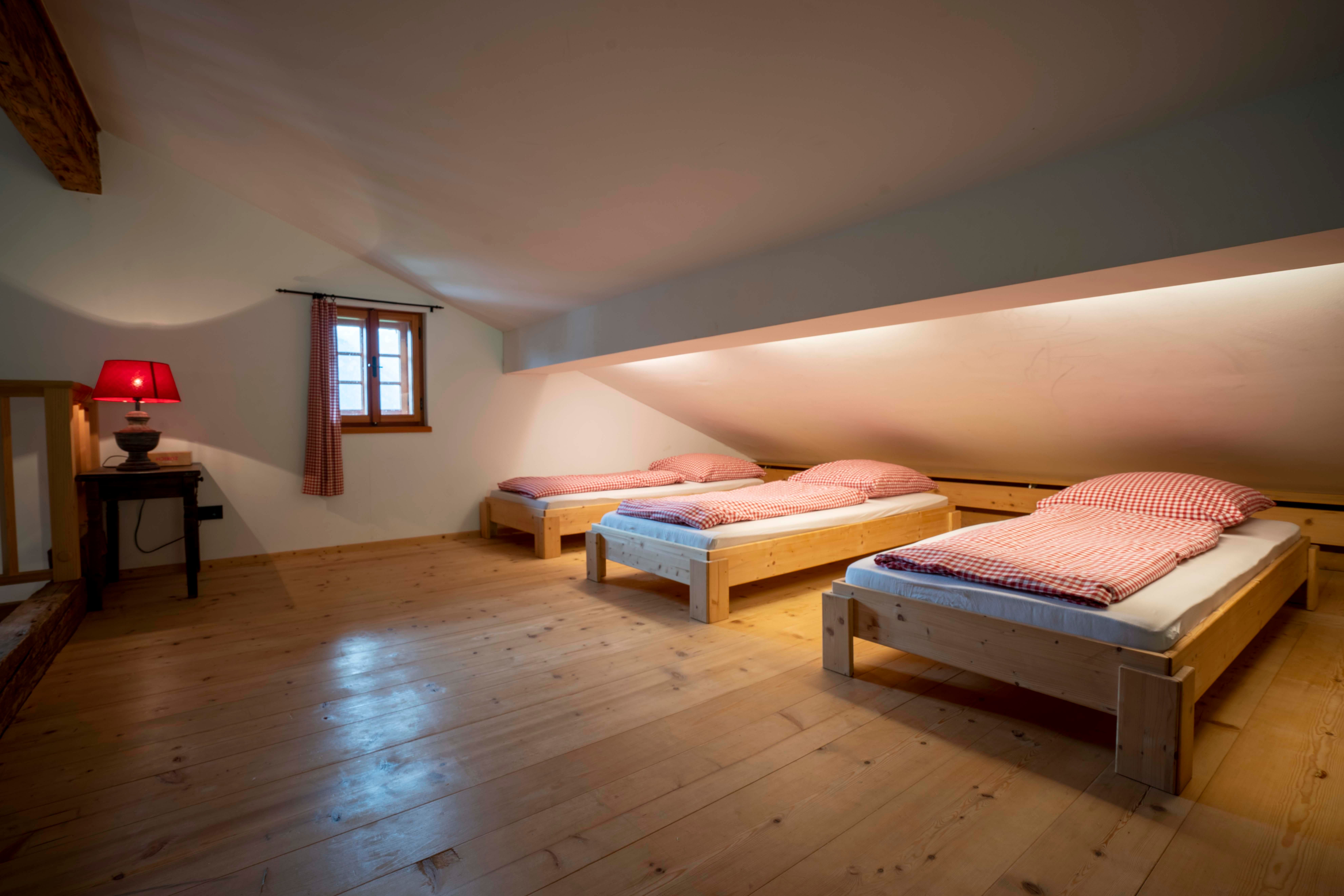 There are a total of 19 beds in the house (11 beds in various rooms and 8 in the dormitory)