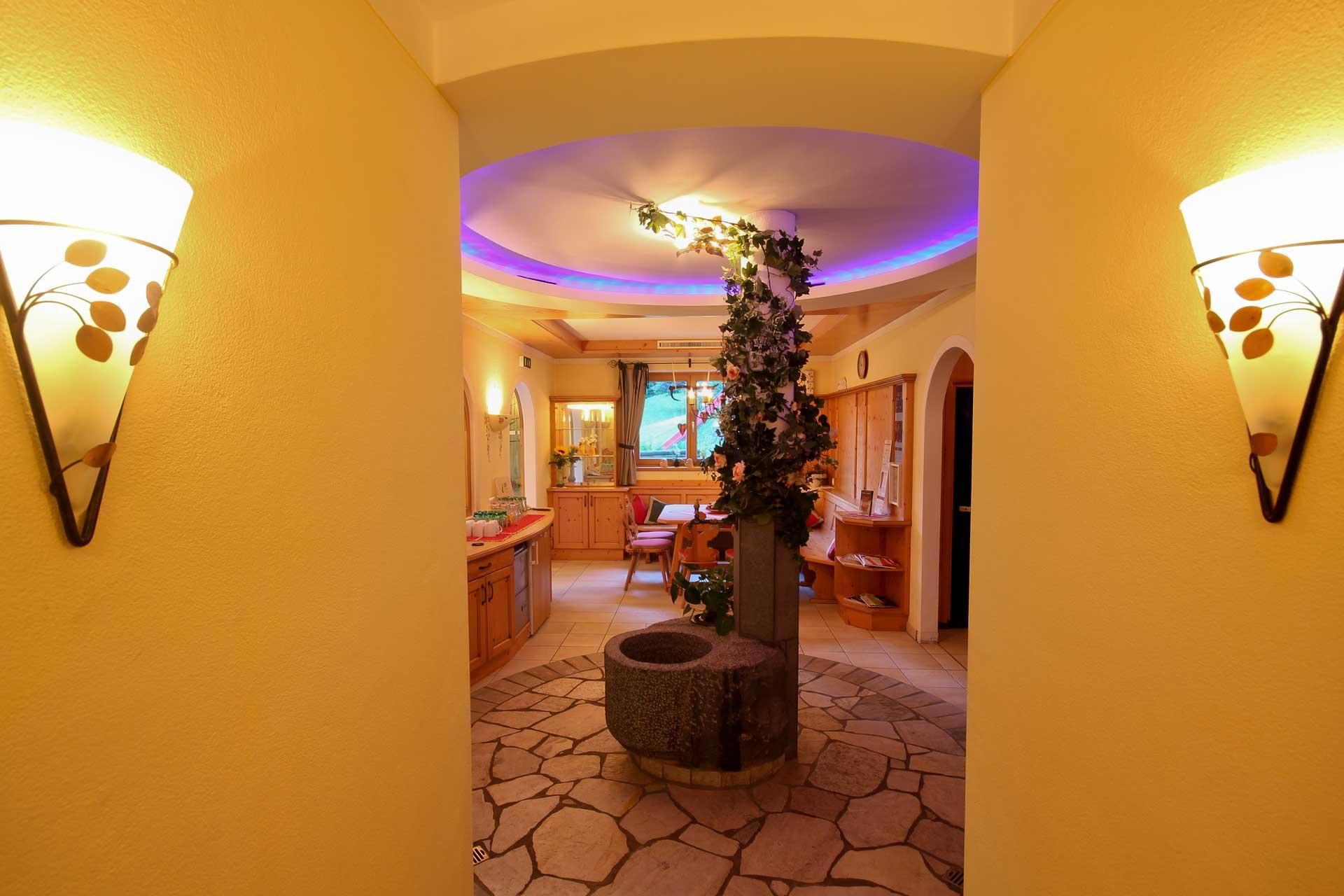 In our wellness oasis you will find many highlights, such as a steam bath with starry sky, an alpine Finnish sauna made of old "barn wood", an infrared sauna with in-depth effect, a solarium, a grotto with 5 sparkling showers, an atmospheric relaxation area, a sauna parlour with vitamin bar, a free tea bar and a rock fountain with fresh spring water.