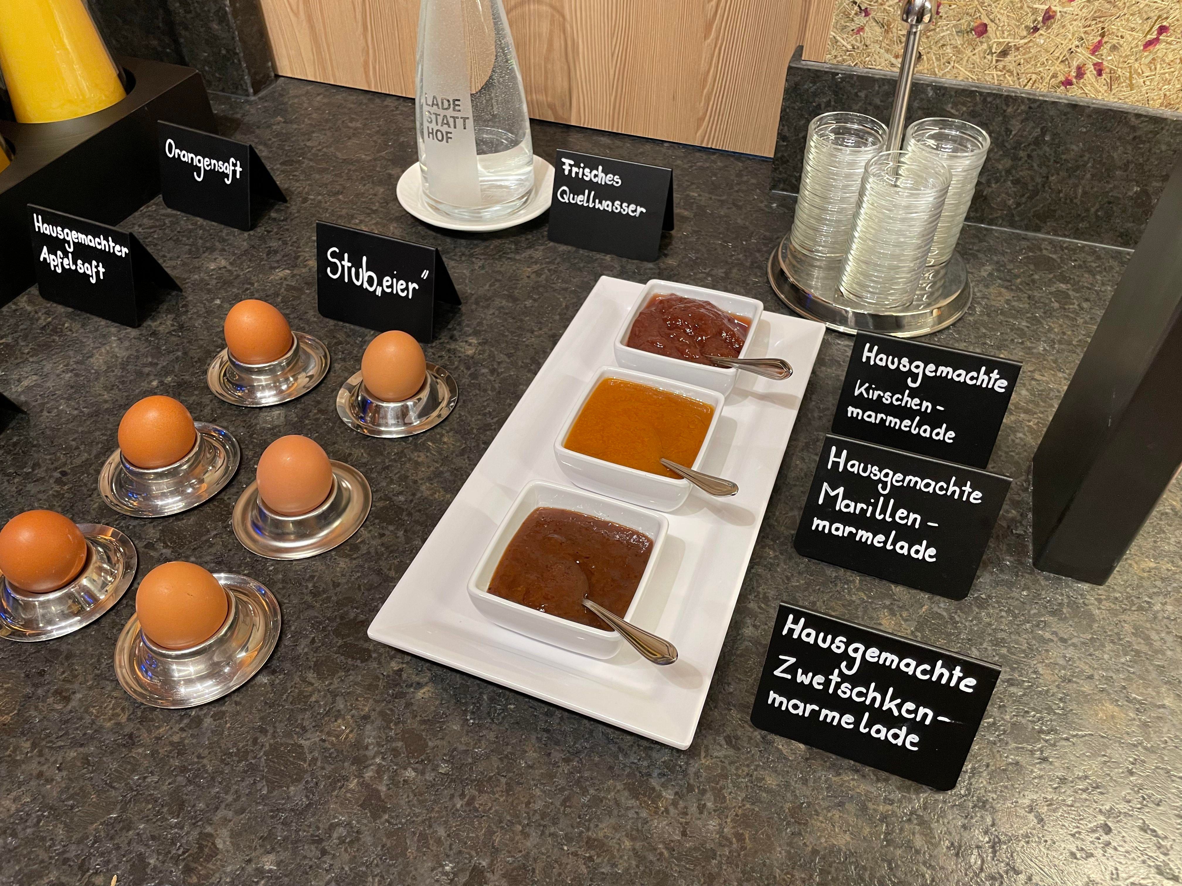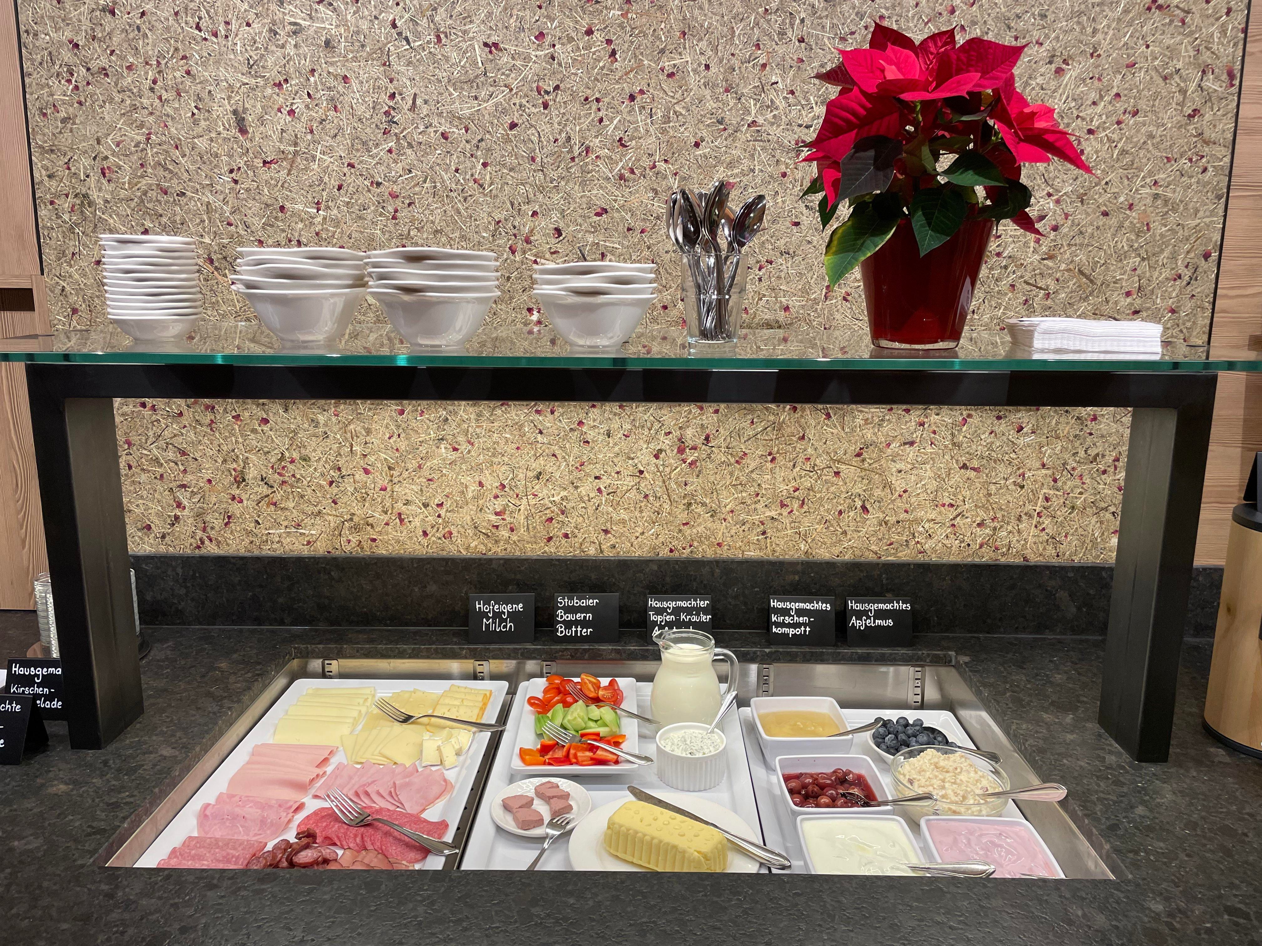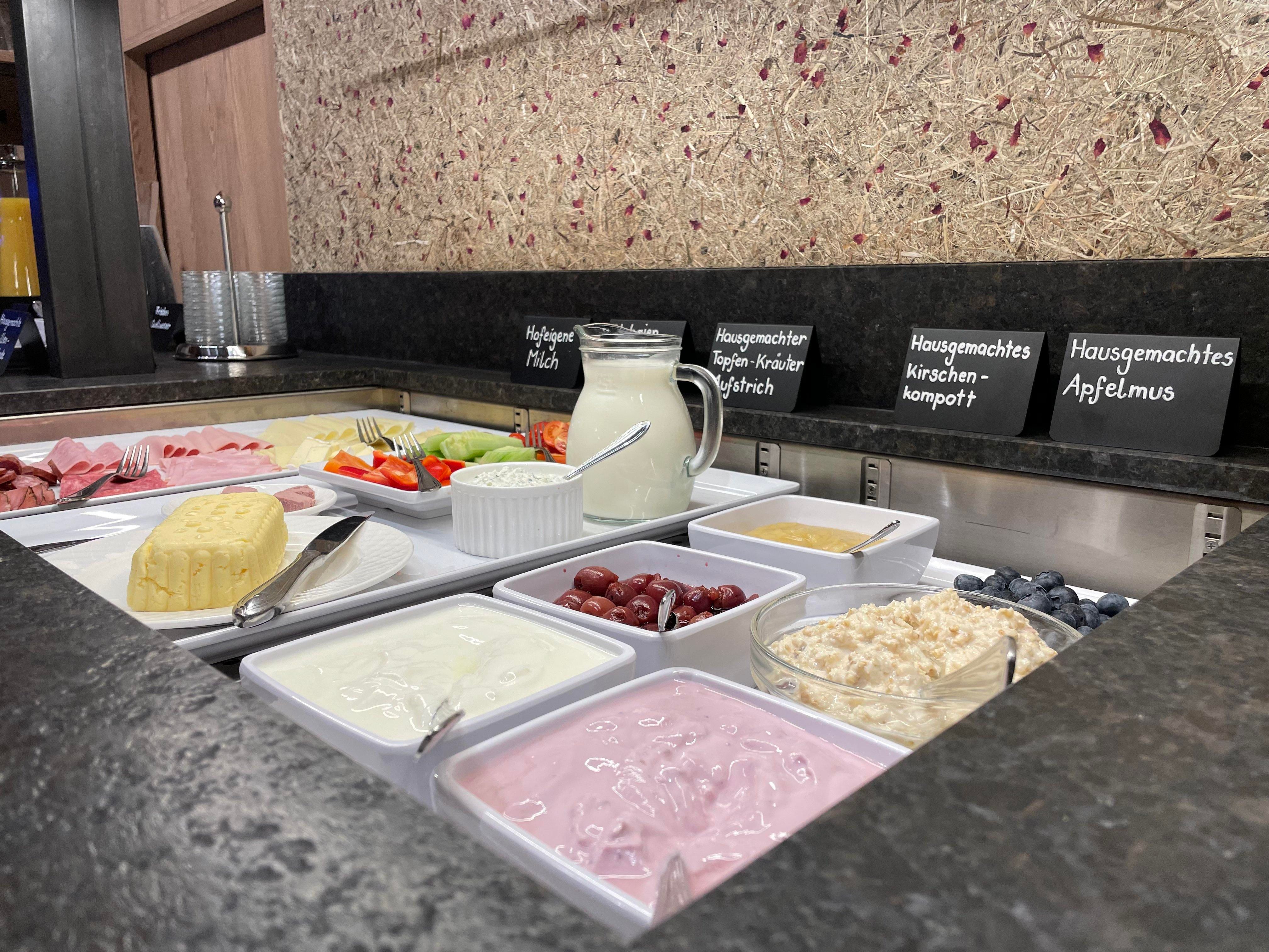 For a leisurely breakfast in your apartment, you can order a breakfast basket with farm produce or enjoy our breakfast buffet against a small surcharge.