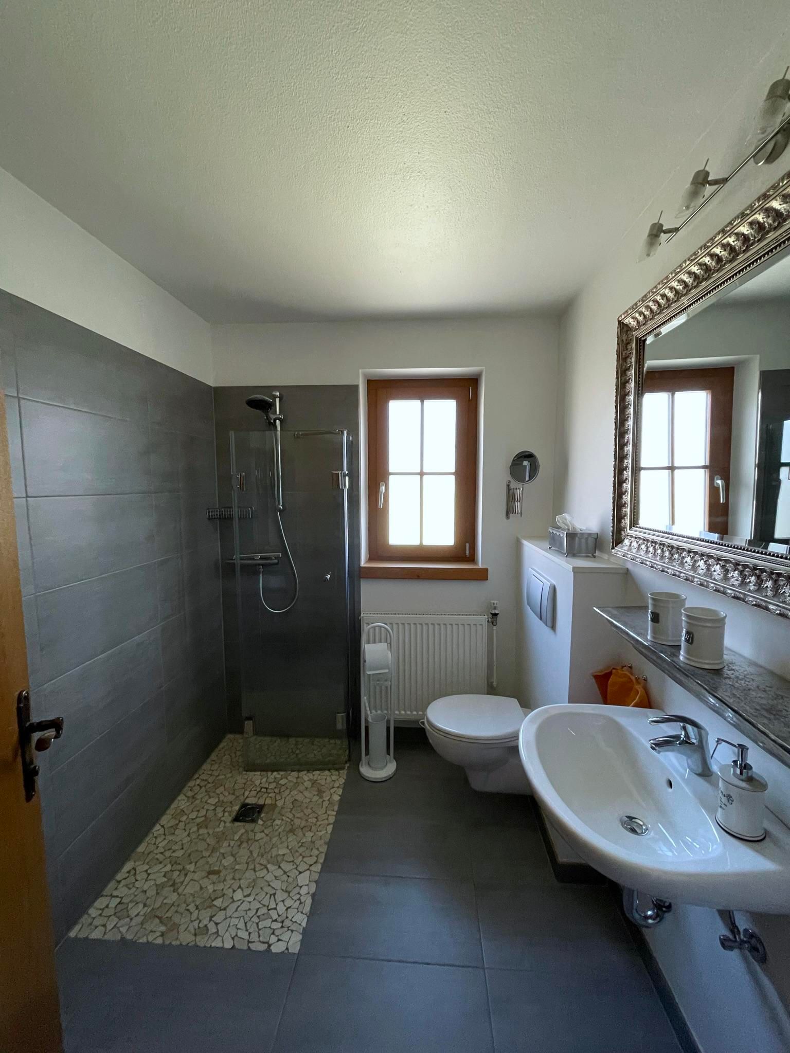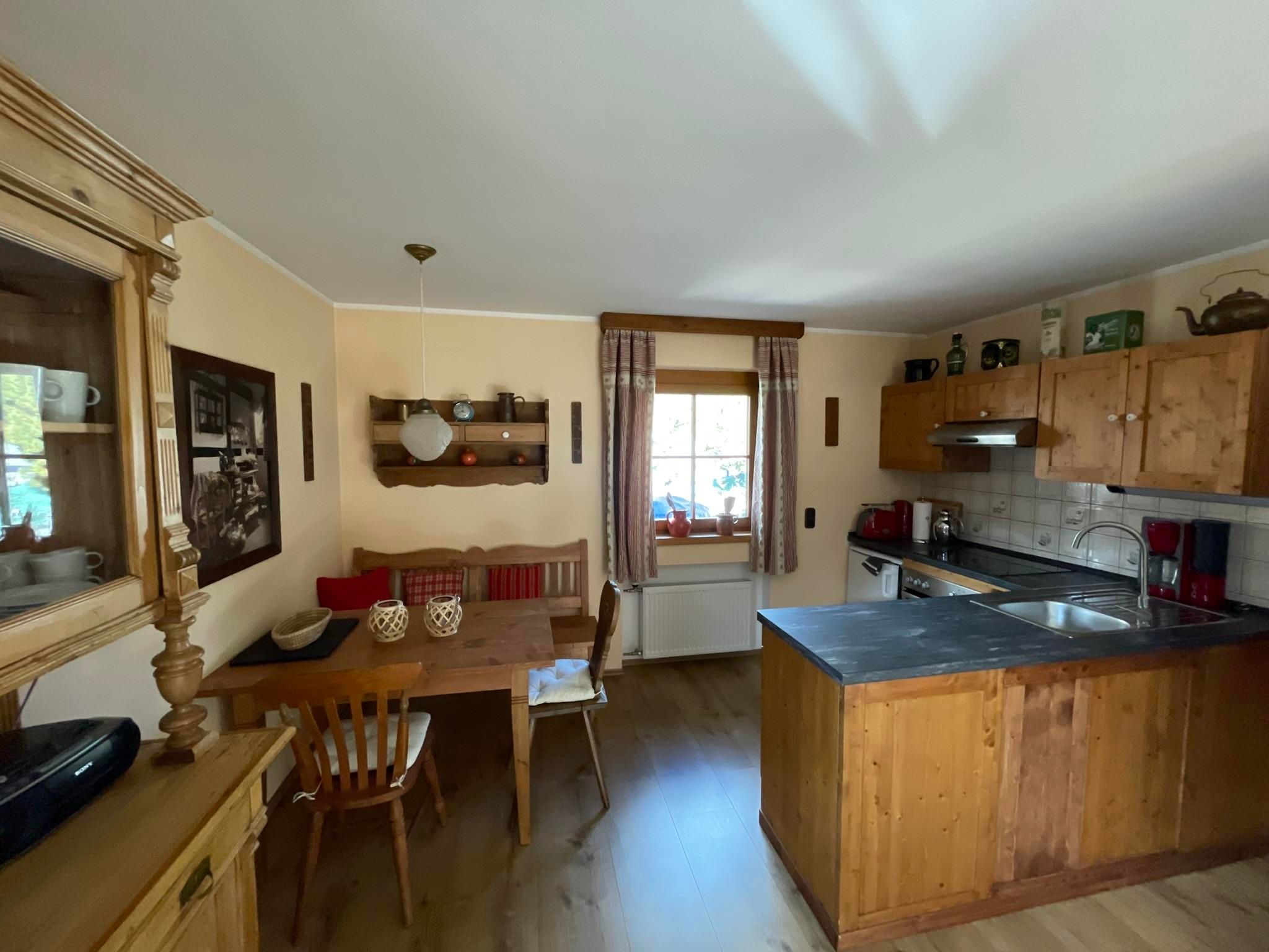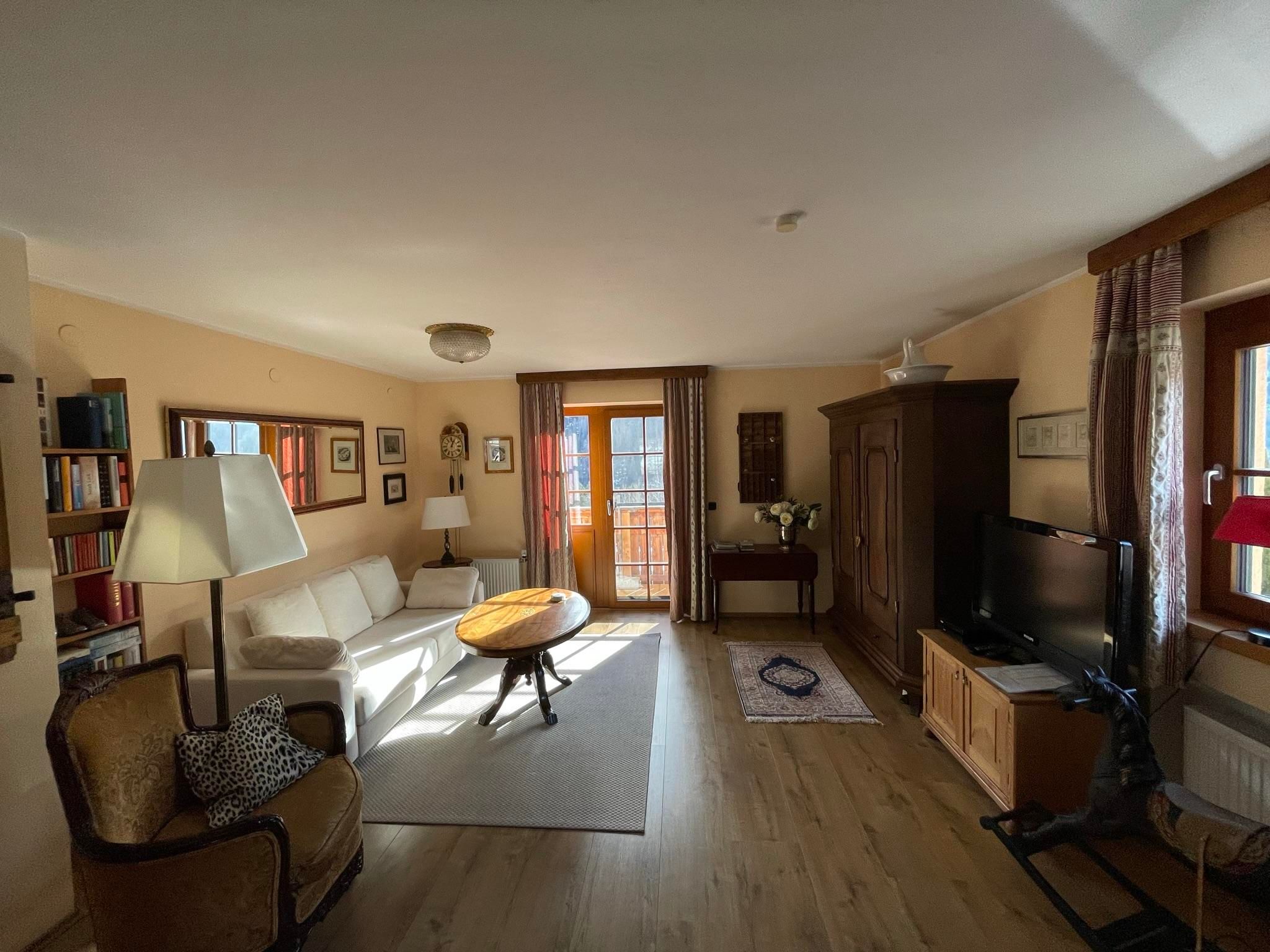 Our house is in a quiet location, away from the road. The generously cut and with antique furniture, tastefully and very comfortably furnished apartment is facing south. You have an overwhelming view of the gigantic mountain world.