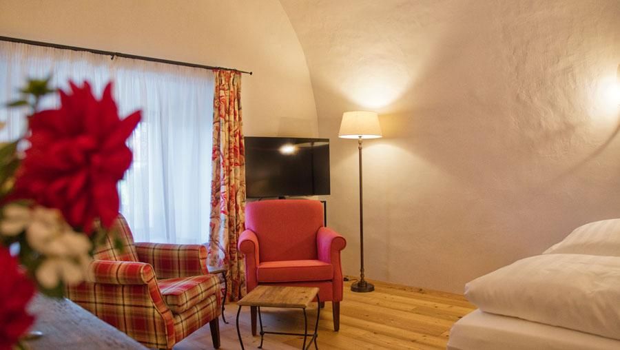 In the LANDHAUS, natural wooden beams, solid wood furniture and fine fabrics make the rooms a unique holiday home.