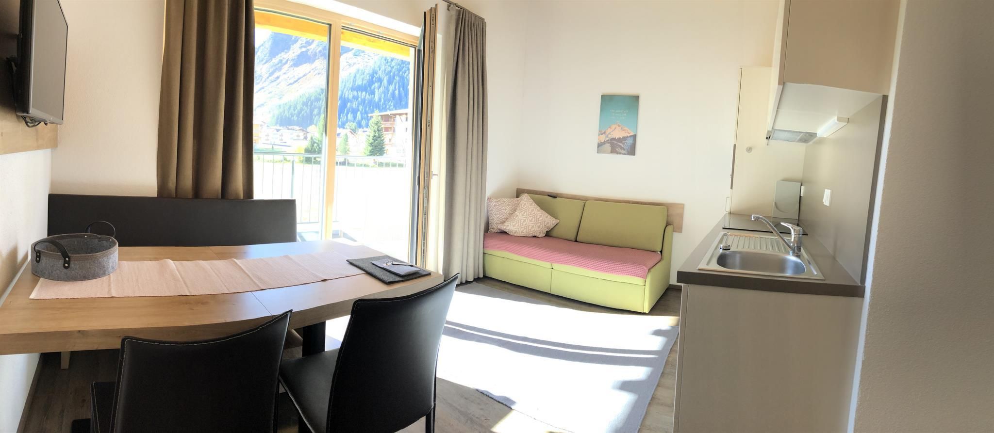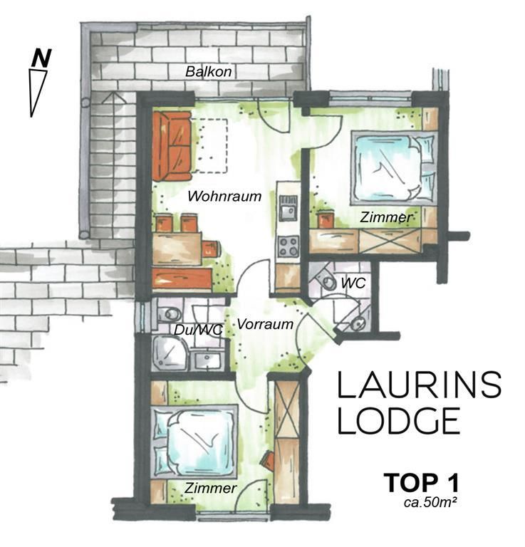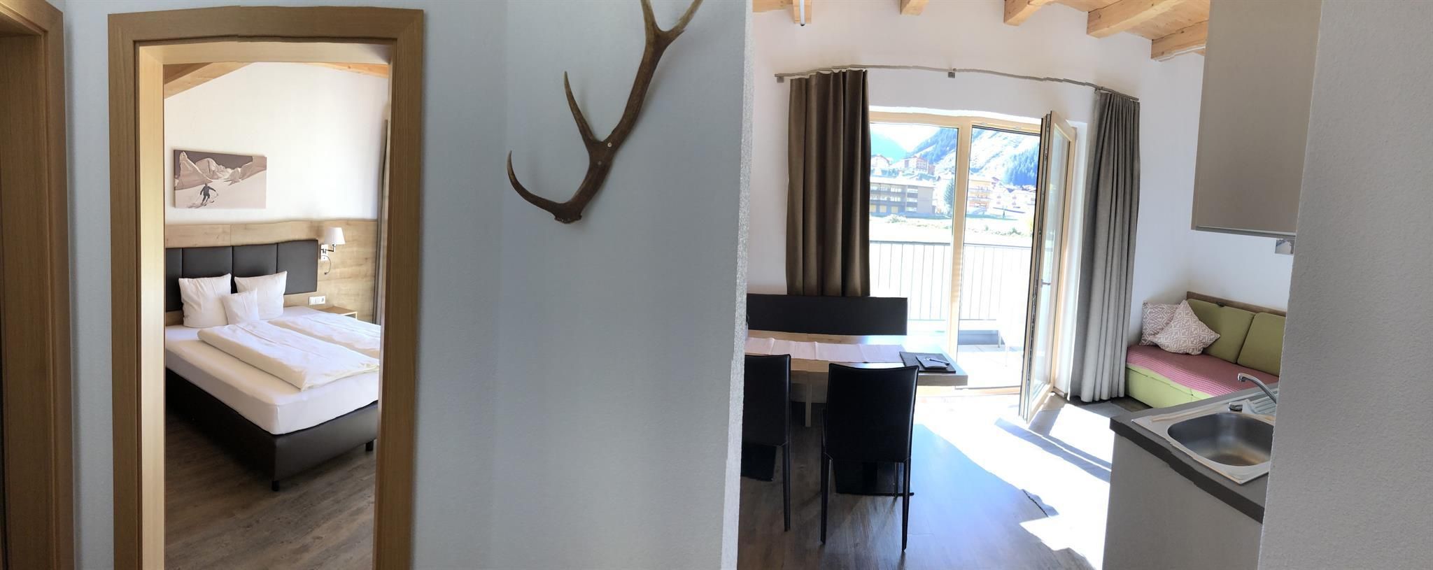 Starting in 2015, we provide 2 fully-equipped apartments in LAURINS LODGE, in Galtür. We are pleased to offer you the following rental accommodation facilities and would be happy to welcome you as our guests. Our house is centrally located, in calm surroundings, less than 3 minutes’ walk to the center of the village of Galtür. From here, local buses serve the skiing areas of Galtür (Wirl) and Ischgl (8 km). The supermarket is located nearby and even the public indoor swimming pool is just a few minutes away on foot. Additional apartments and comfortable double or triple rooms with bed & breakfast, shower/WC are available next door in our “Nonas b&b”. Breakfast can also be arranged here on request.