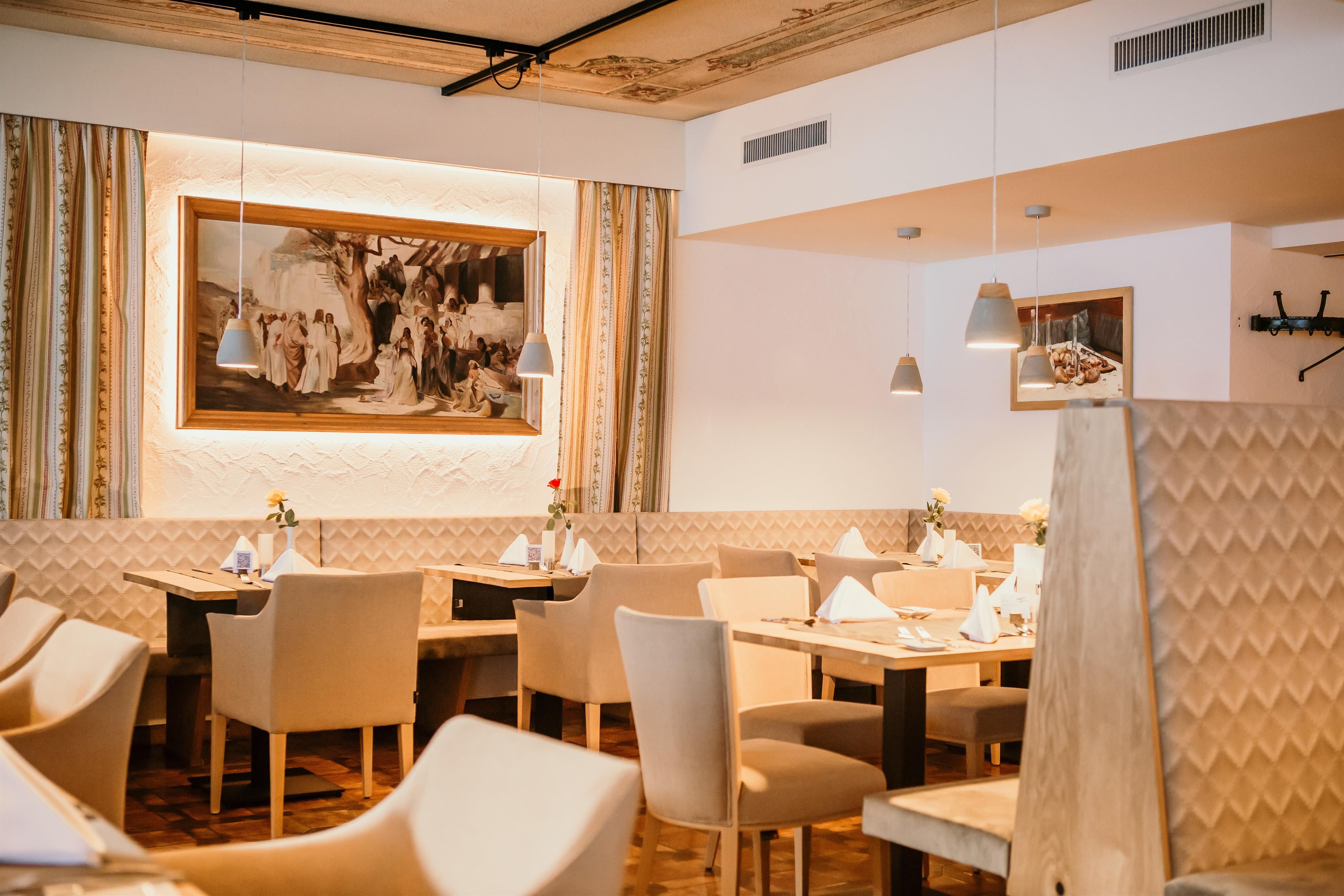 Our luxurious rooms in comfortable size offer stylish atmosphere and make winding down easy due to unobtrusive colours, based onto biological wooden construction. Every room contains a tepidarium, a roman sweating bath with infrared and solar radiation that effect positively your state of health. We offer you sanarium, sauna, steam bath, hay beds and solarium for relaxing. We serve you regional dishes and international delicacies à la carte or half board all day long. We invite you to have a degustation in our In-house-distillery.