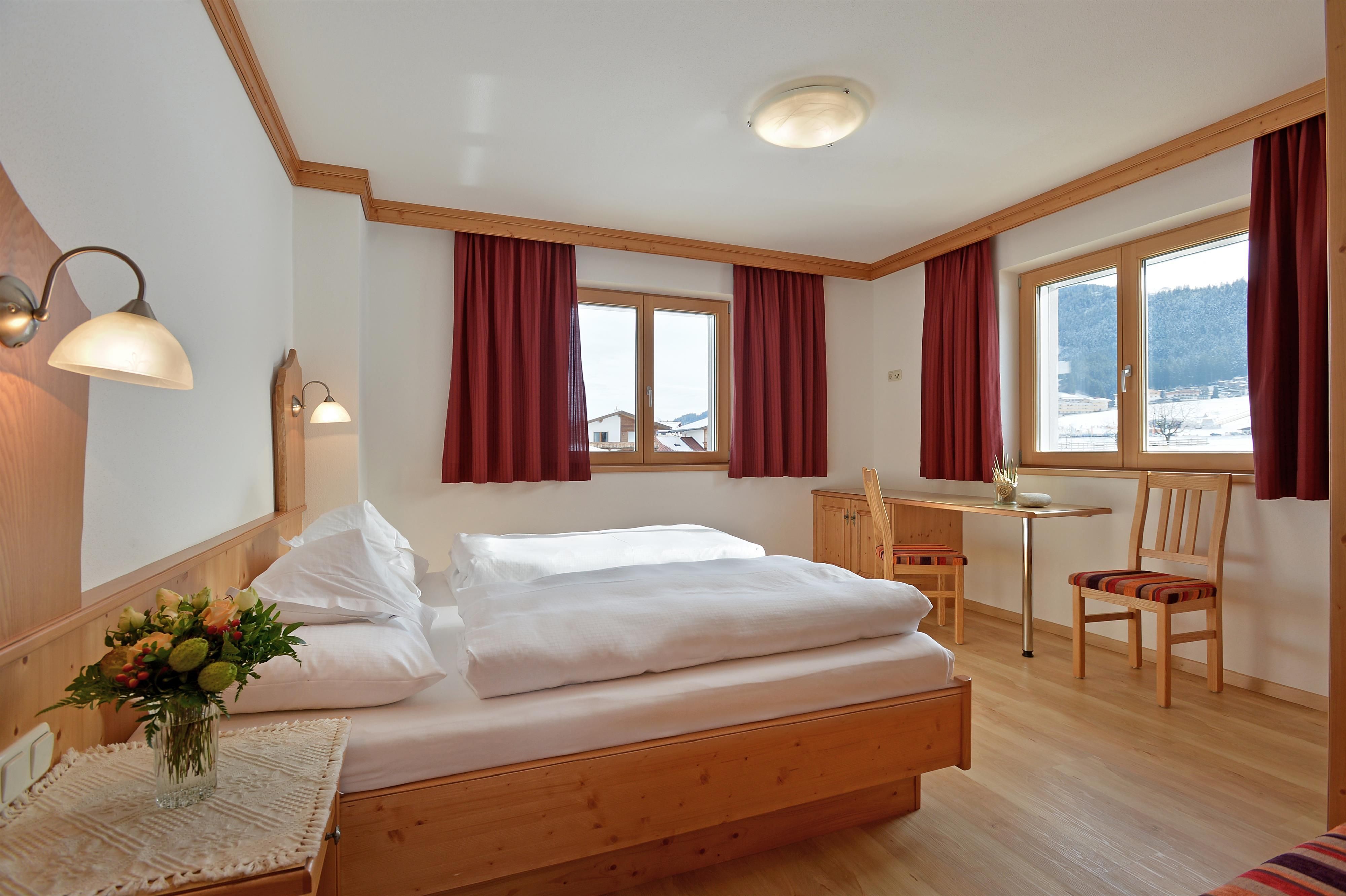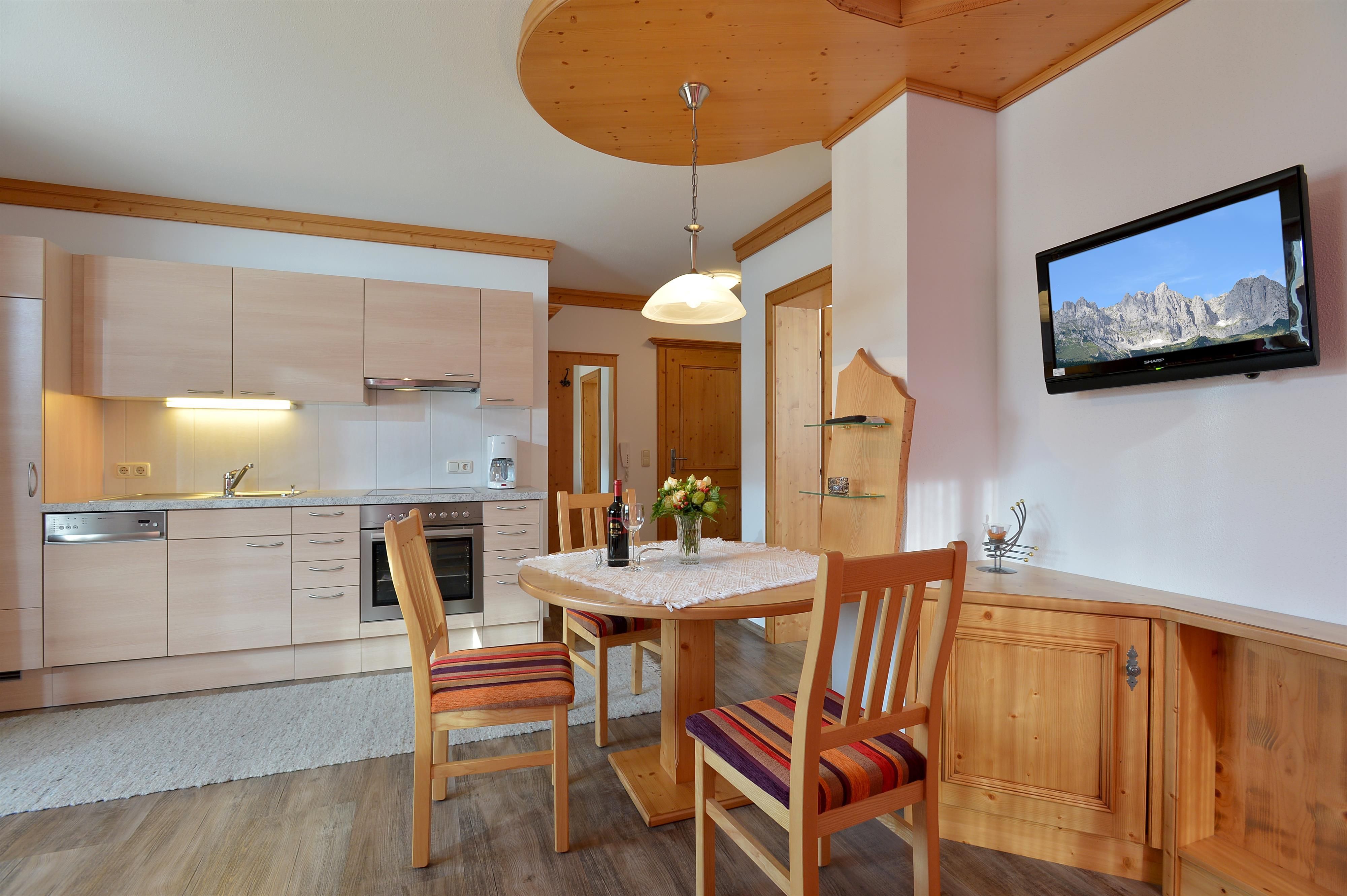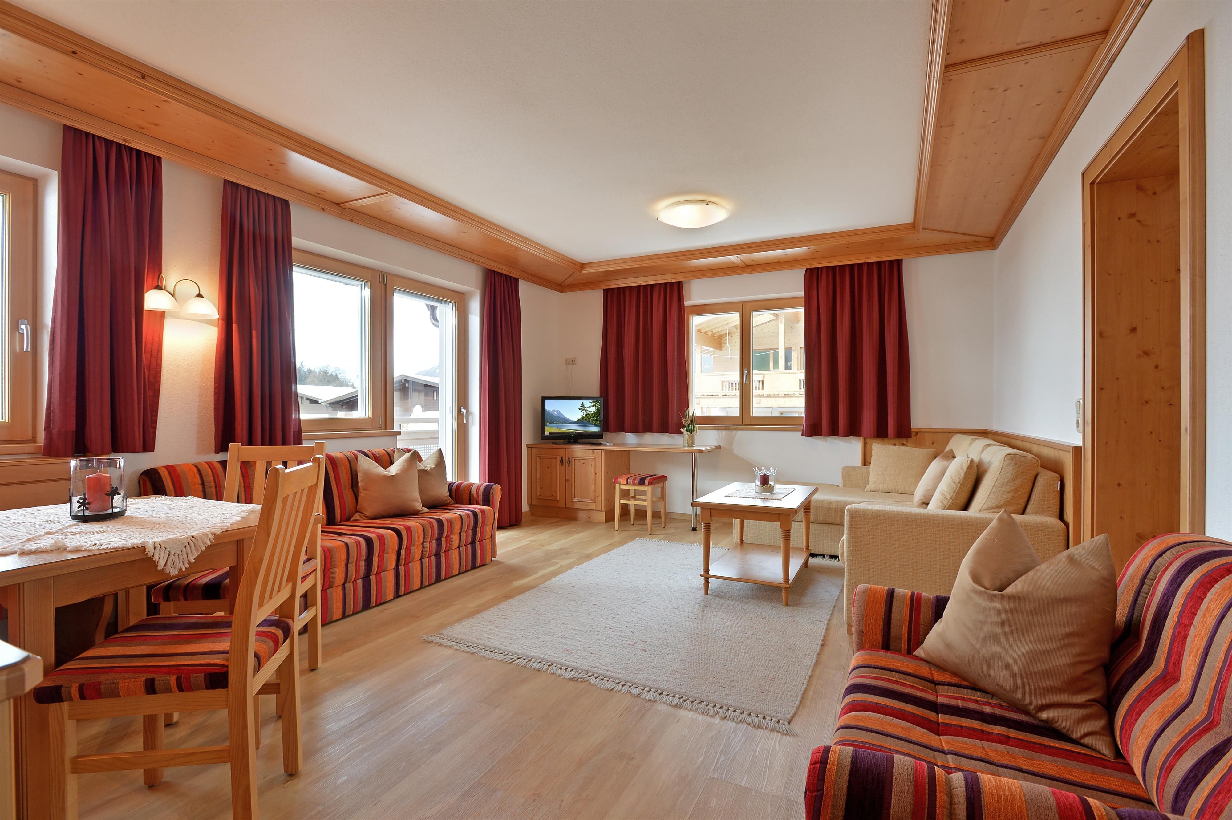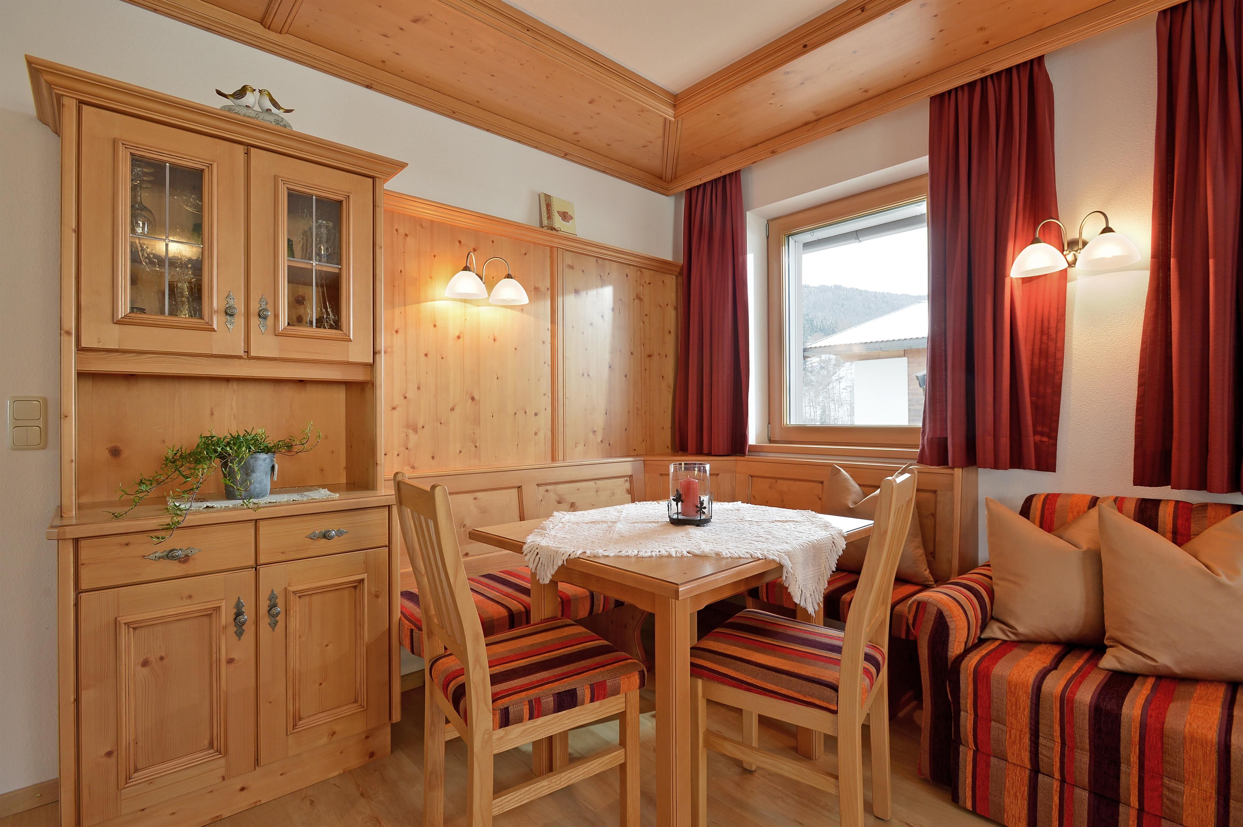 The guests have a newly built vacation home at their disposal, which is also only five minutes away from the center of the village. You can ski directly to the vacation home. The two apartments (for 2-6 persons) in the new vacation house have a sauna. A large lawn for sunbathing as well as sufficient parking possibilities are available. All apartments are cared for and maintained in every detail. In contrast to the big hotels, this way we are able to create a homely and familiar atmosphere. In the lovingly and comfortably furnished rooms, pure well-being is the order of the day. The light and high-quality materials create an ambience in which you can relax and let yourself go. All rooms have modern equipment that leaves nothing to be desired. The traditional-rustic style of furnishing increases the cosiness and the feeling of security even more.