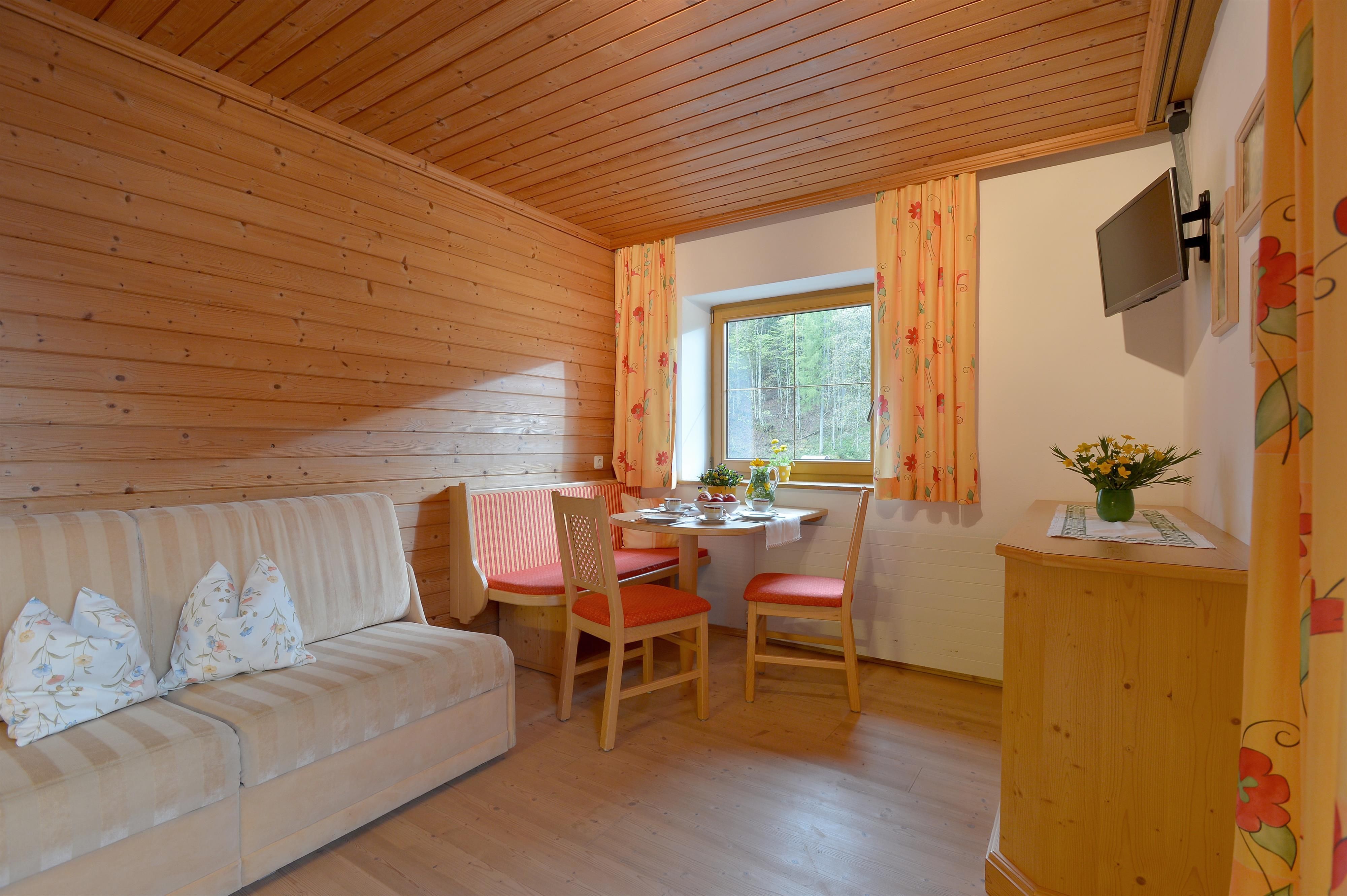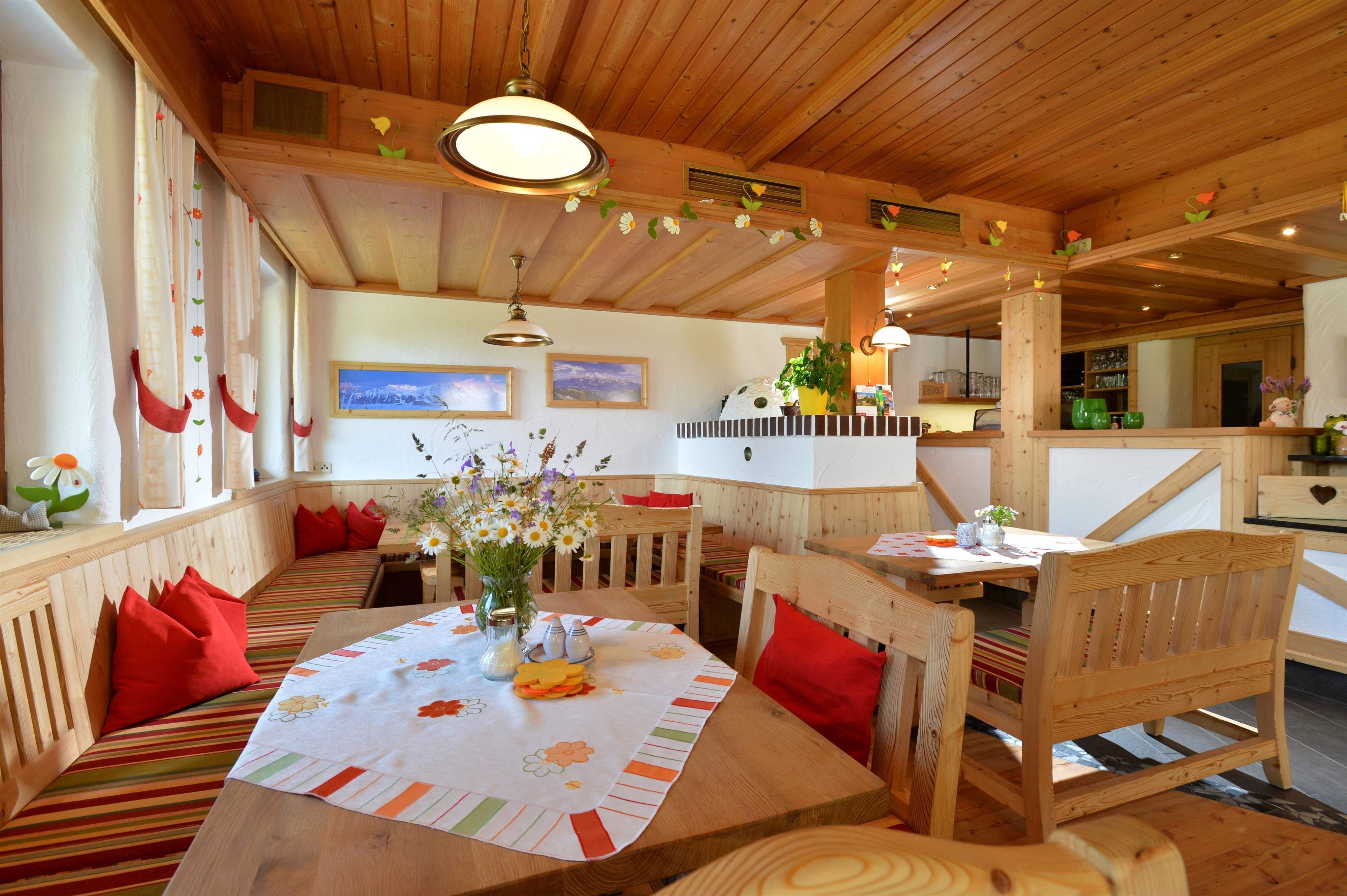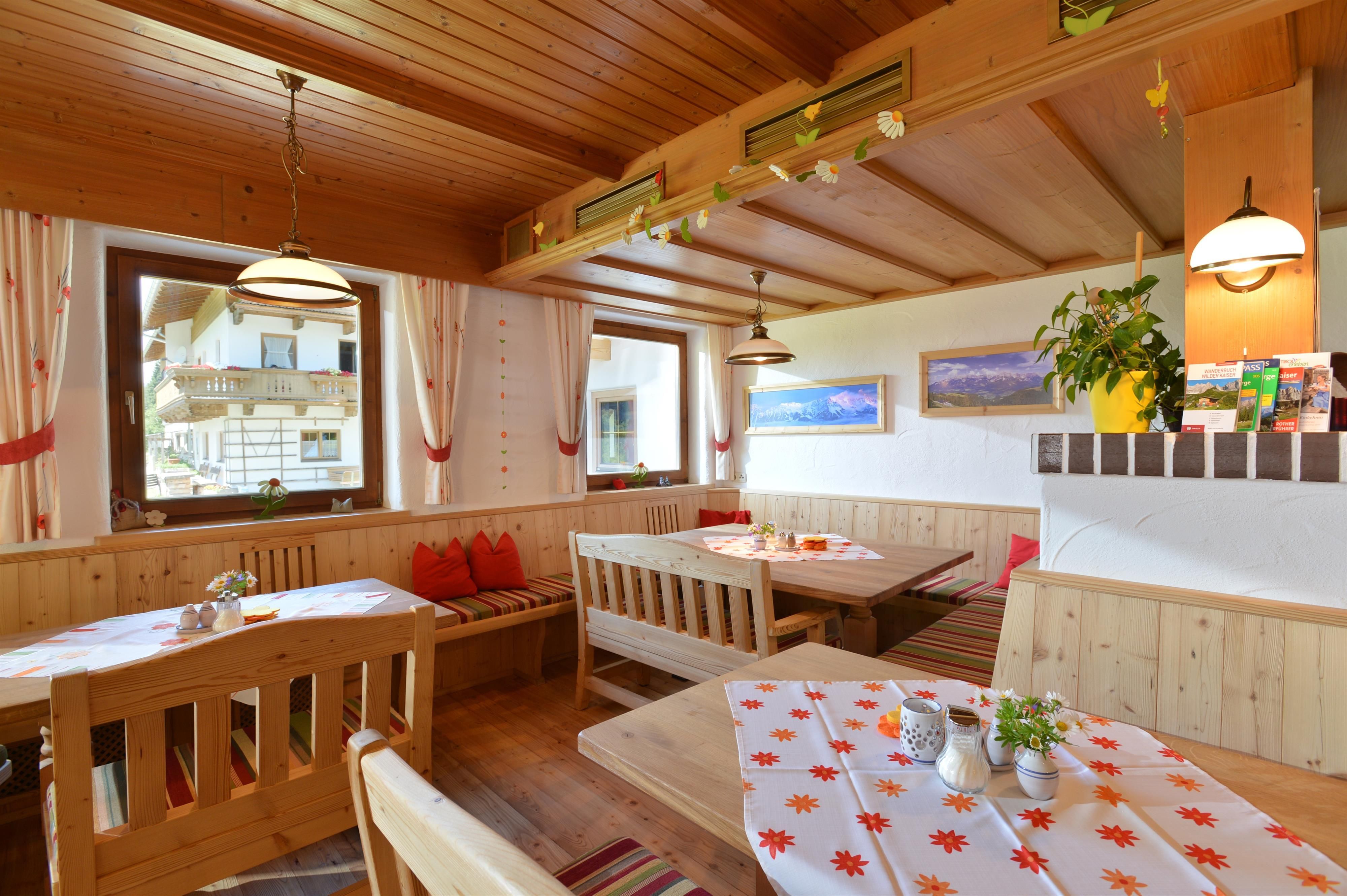 Relax on our sunny terrace or in our cosy guest room. Homemade organic products with an extended breakfast, Tyrolean specialities, homemade pastries and on request vegetarian food will be prepared for you. "Kneippism(R)" possible.