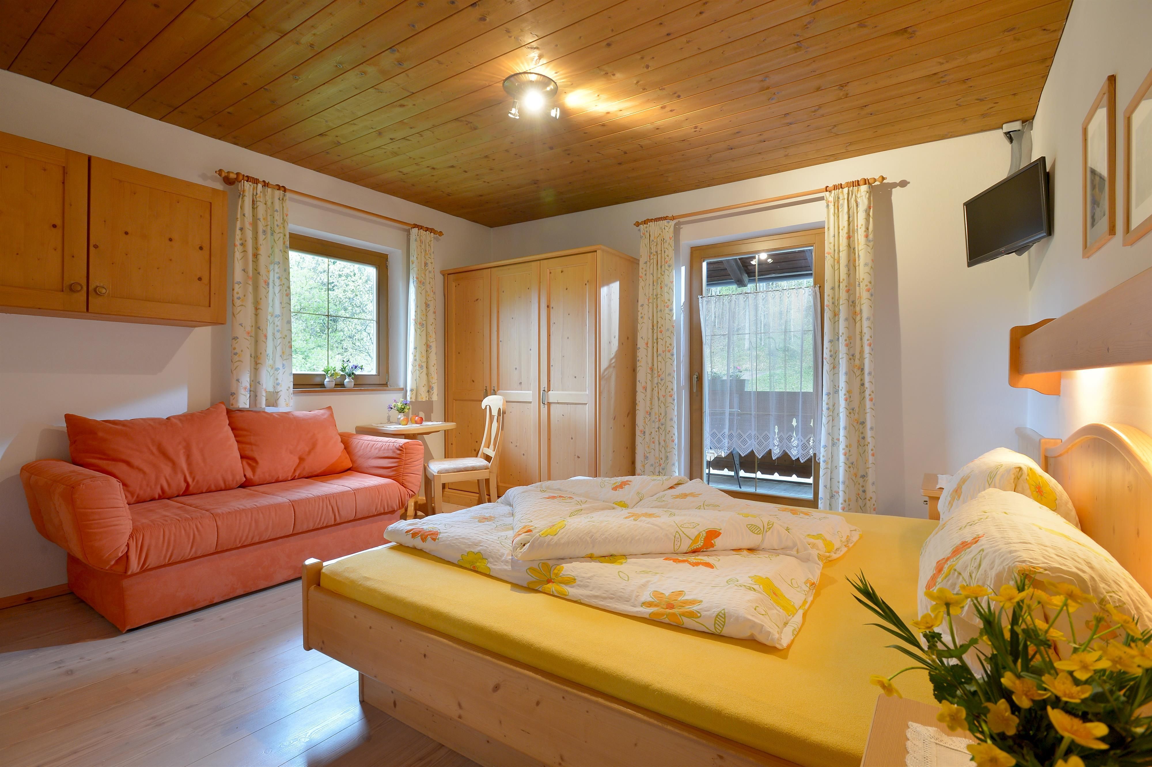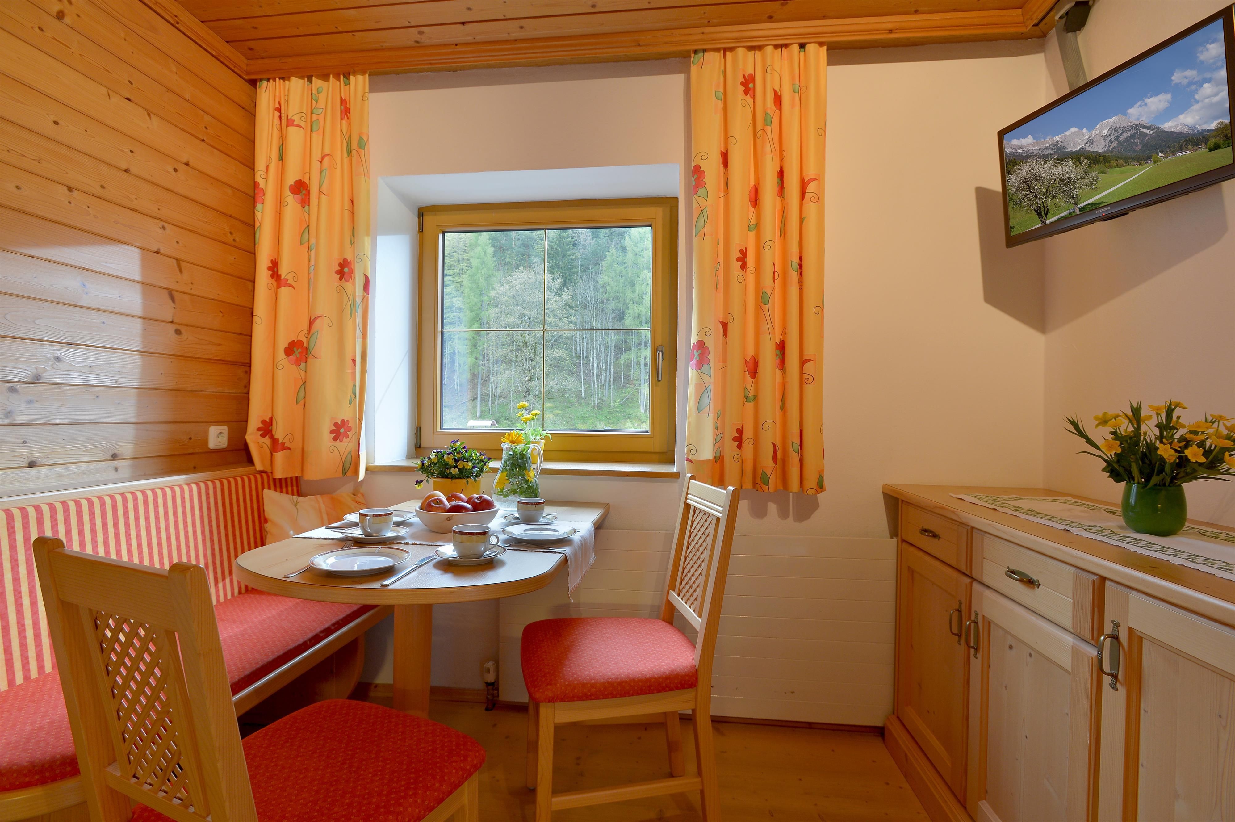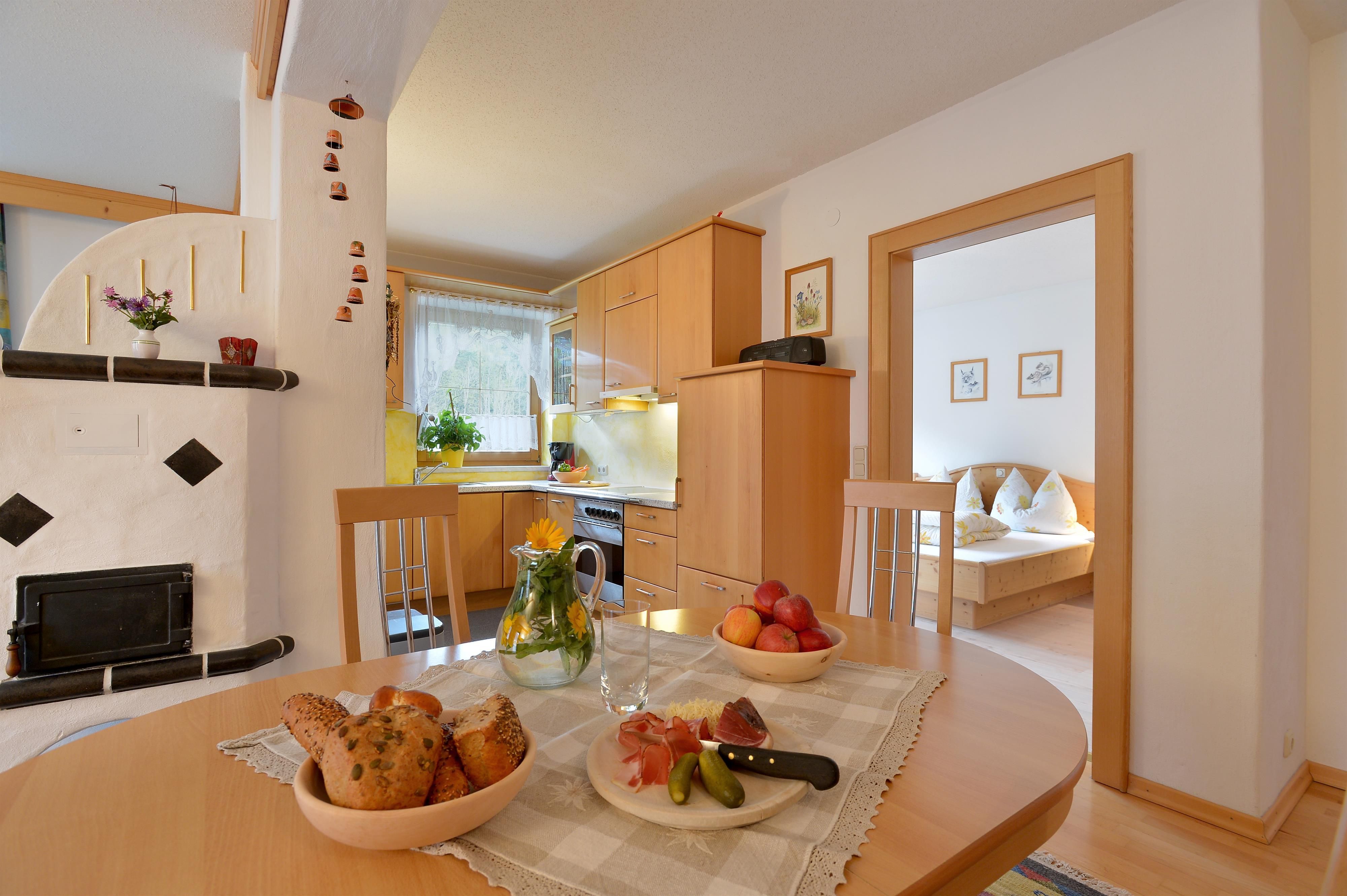 Relax on our sunny terrace or in our cosy guest room. Homemade organic products with an extended breakfast, Tyrolean specialities, homemade pastries and on request vegetarian food will be prepared for you. "Kneippism(R)" possible.