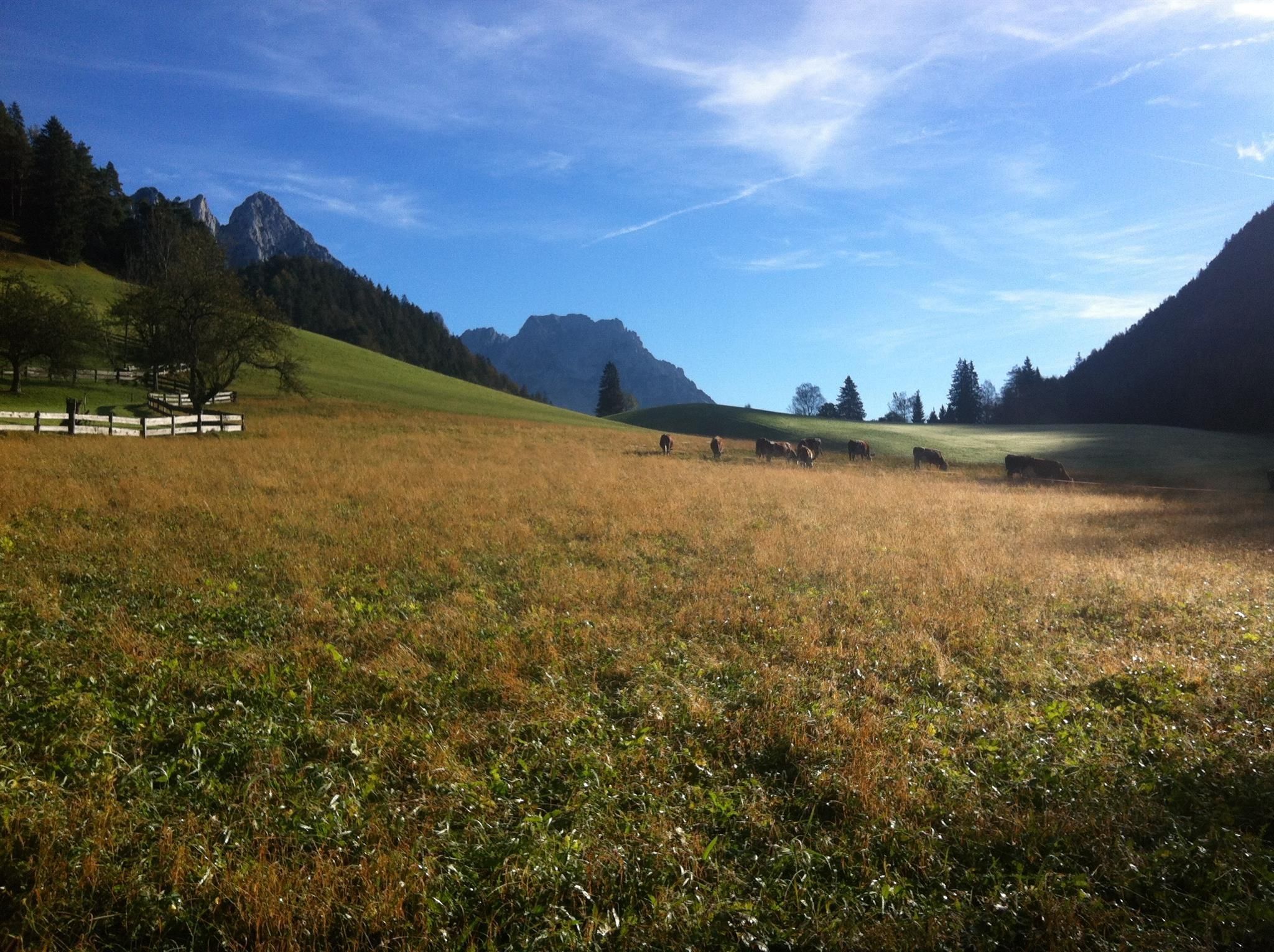 Numerous possibilities for walking, starting in front of the house. Discover at Wilder Kaiser mountains with a guide. We organise hiking, climbing or ski excursions. In winter you can reach the cable car station in Scheffau in a view minutes with the free ski shuttle.