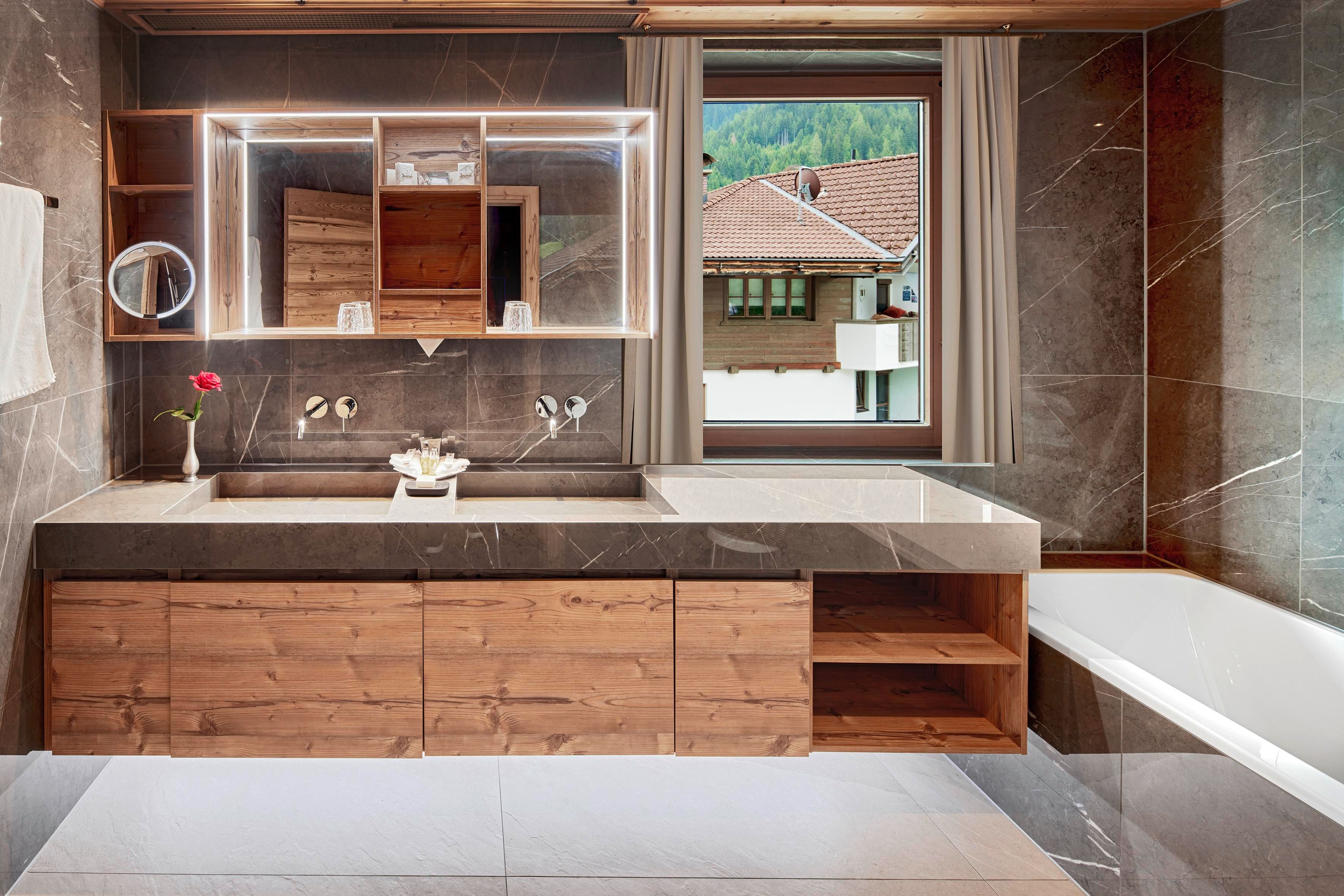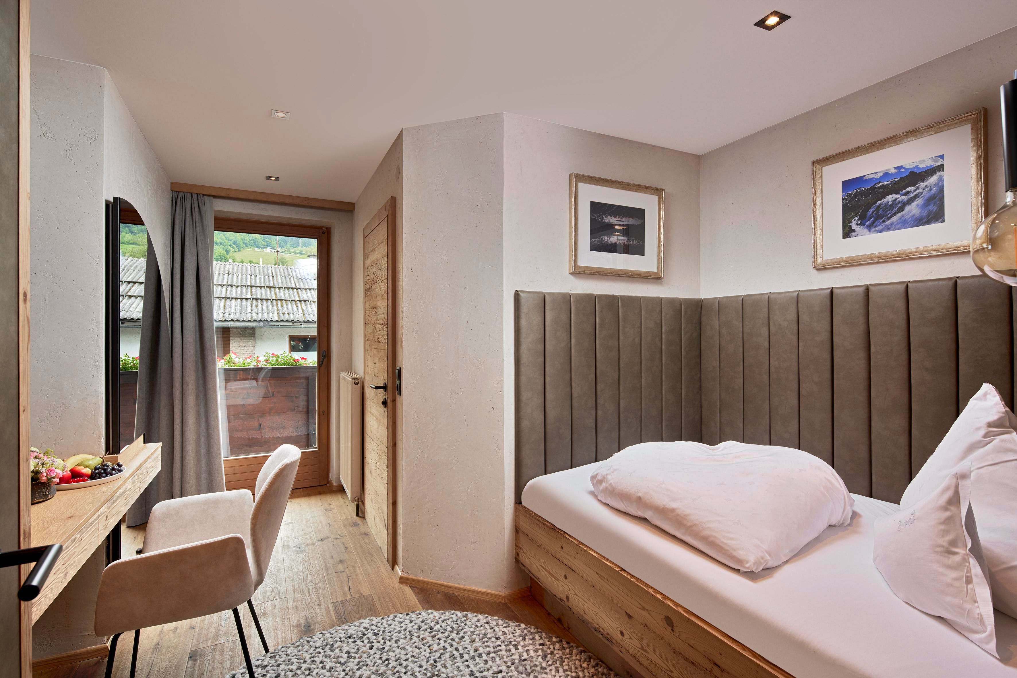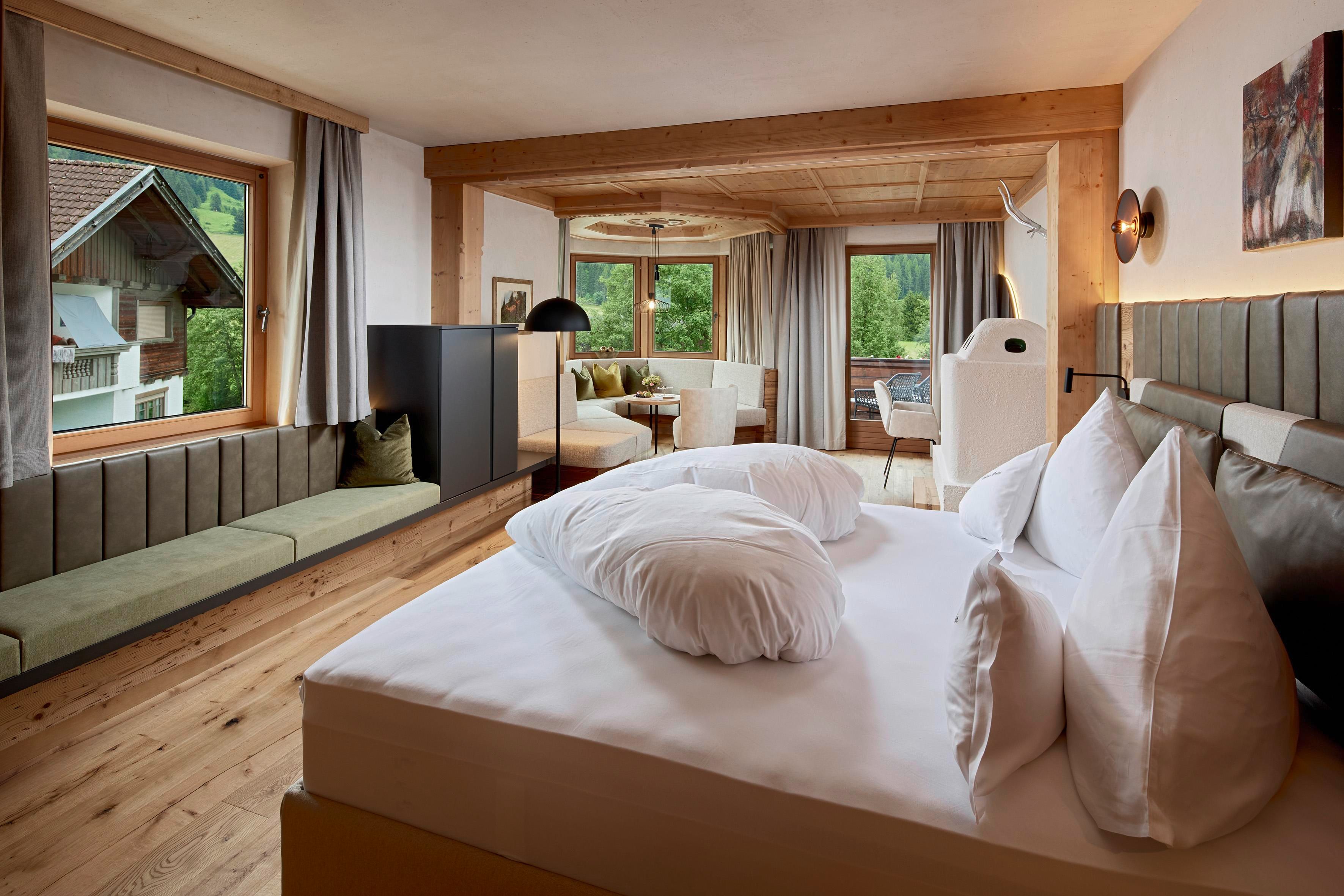 Throughout the entire house and in all our rooms, apartments and suites we have combined tradition and modernity. Our facilities are thus furnished with antiques from the region, local wood and elegant farmhouse furniture. All rooms are characterised by a discreet pine wood scent creates a natural feel-good atmosphere. Pamper yourself in rustic luxury, some of our rooms even come with their own sauna and a cosy warm fireplace.