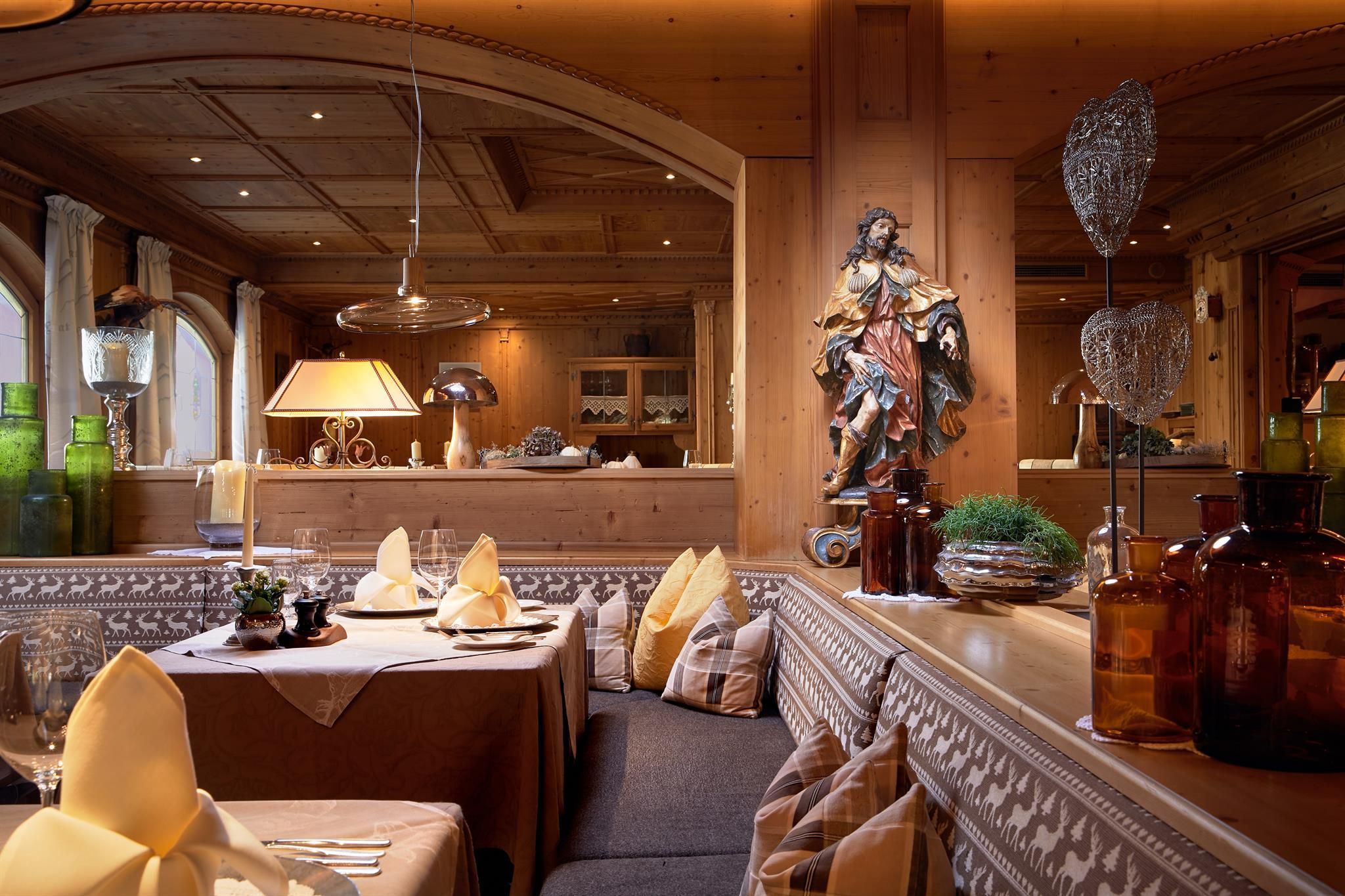 You can thus expect all the amenities of a 5-star Spa Hotel, in particular our much acclaimed Hubertus Stube Restaurant as well as the 3000m2 spa area with more than 20 water, steam and spa facilities and the all-year heated pools with in- and outdoor swimming await you.