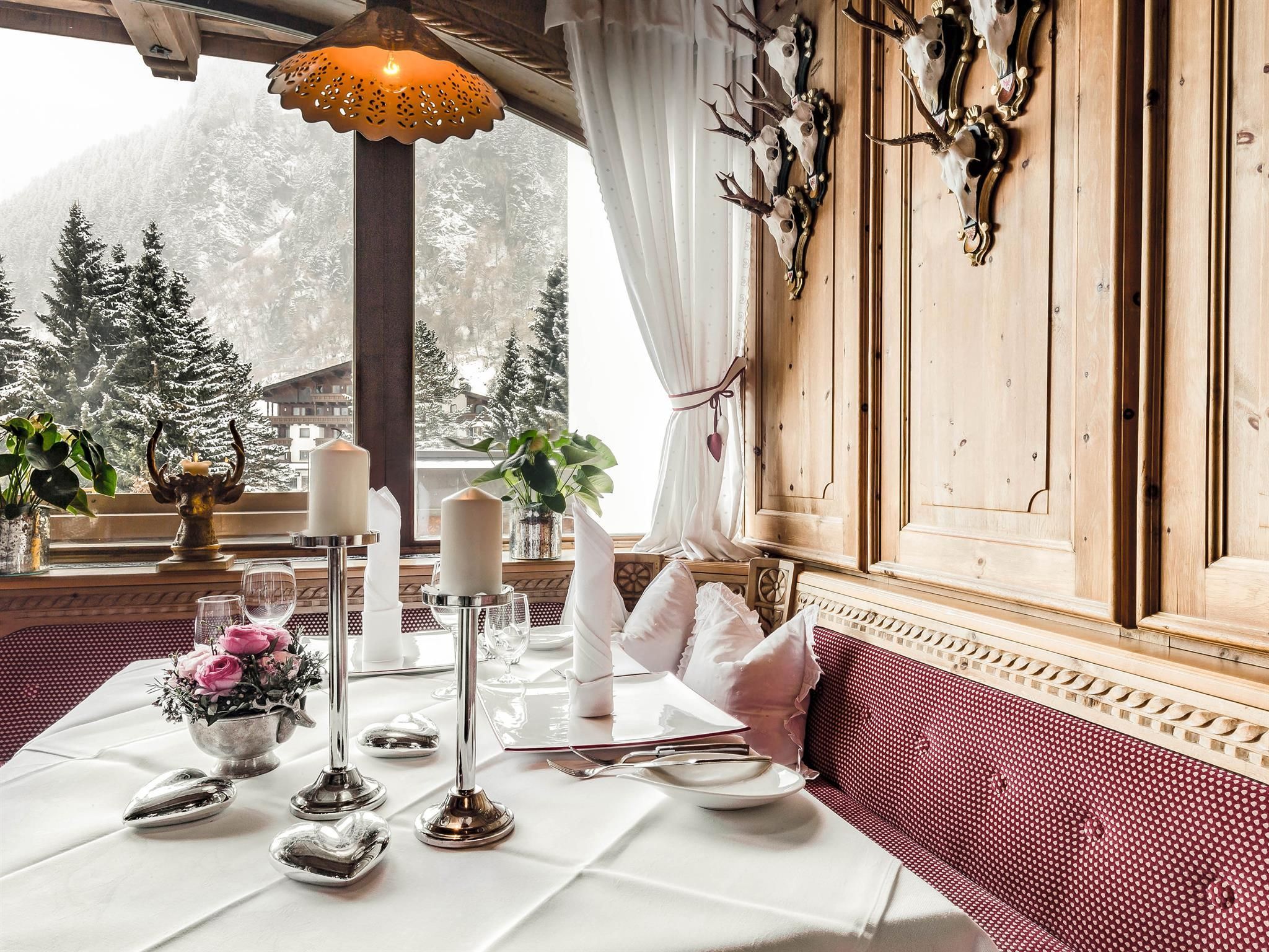 The broad selection of the rich breakfast buffet with its many produce from the region will be the first highlight of all connoisseurs in the morning. Half-board includes a 5-course dinner menu. Here we focus in particular on the quality of products, which mostly come from the region. Alternatively, you can enjoy the à la carte delicacies of our Hubertusstube gourmet restaurant that is distinguished with a 4 Hauben rating. Our romantic terrace, the garden and our cable car gondola enable you to enjoy at rich lunch, home-made strudel and a fondue in casual atmosphere.