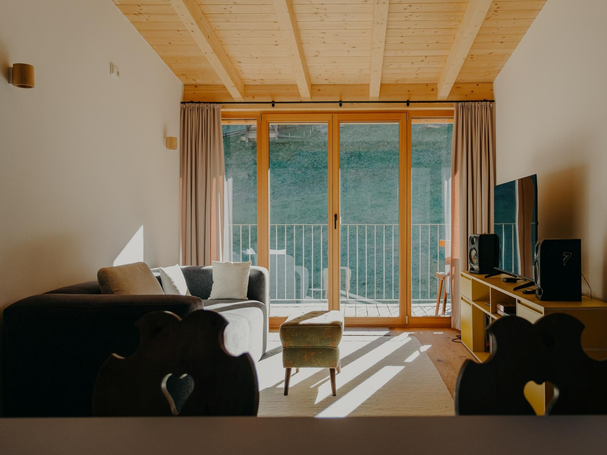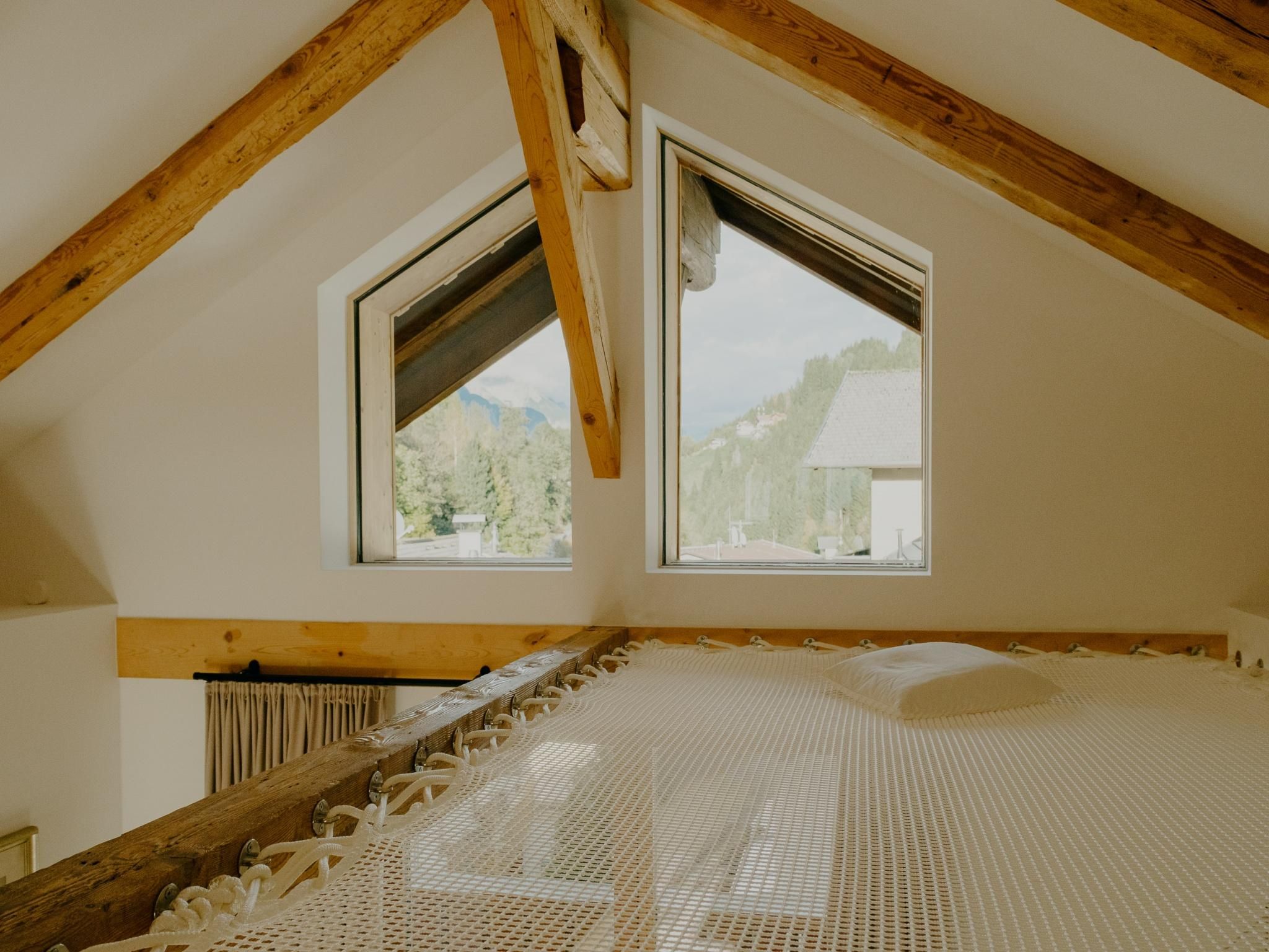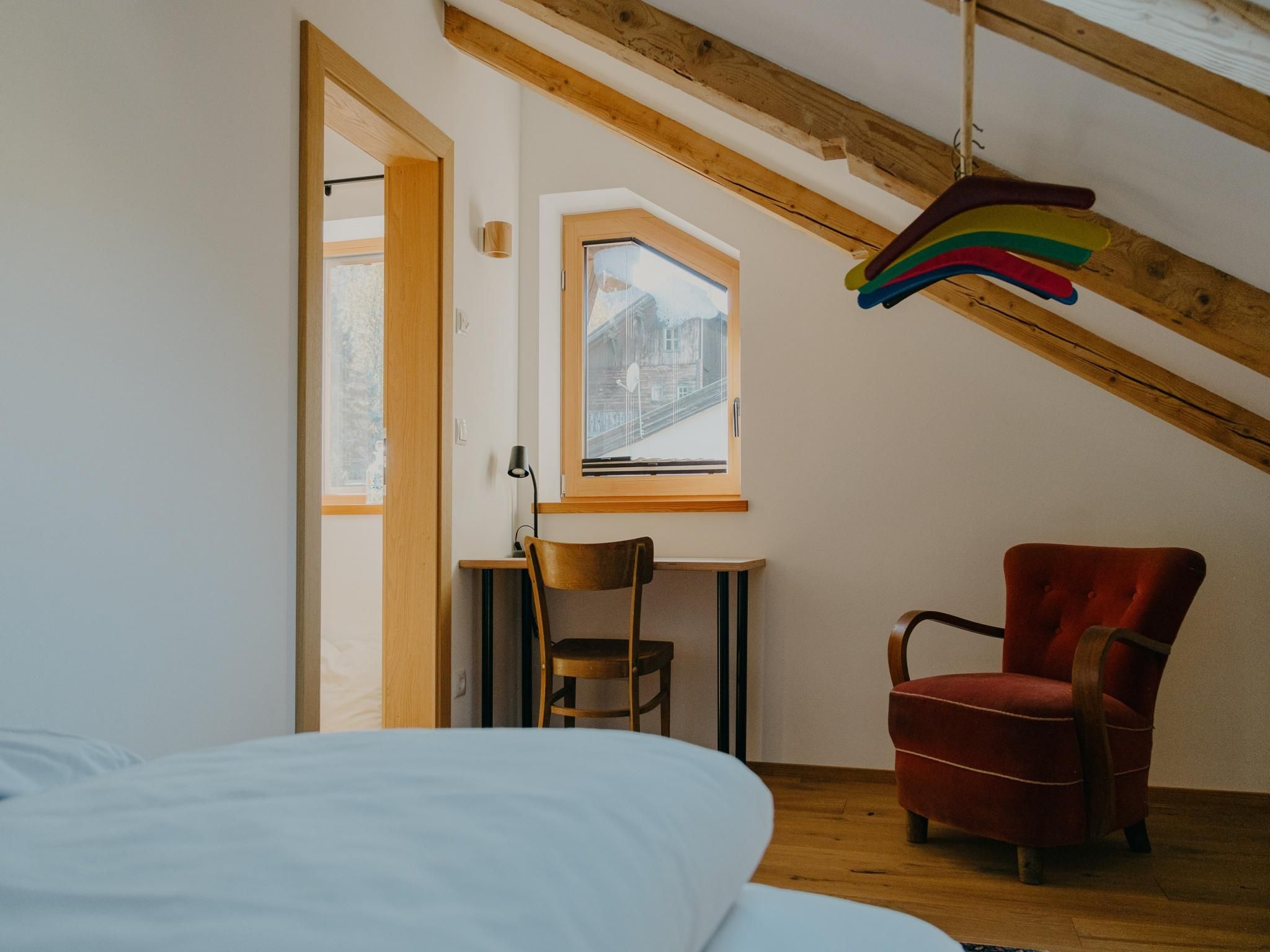 A bright, 3-room, top floor apartment for up to 4 people with lots of natural light and mountain views. At the heart of the Dachstubn apartment is a spacious, open-plan living and dining area with a fully equipped kitchen. The flat also has two bedrooms with comfortable double beds and a bathroom with a shower, bathtub and toilet.