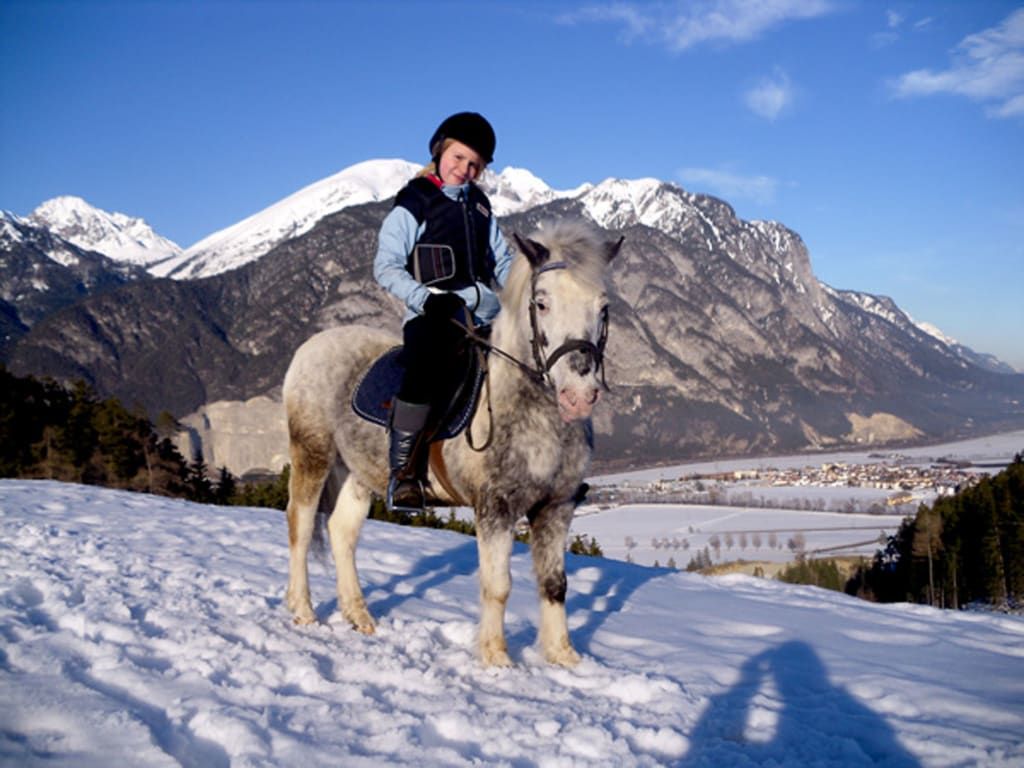 Welcome to the heart of the Tyrol, at Studlerhof,, located high above Innsbruck on a sunny upland plateau. Where helping out around the farm is welcome. Take part in a journey through the diversity of daily life. Discover and enjoy - the FARM EXPERIENCE. Get up on the saddle. Over rolling hills, or in a quiet location by the edge of the forest. Children rejoice in happiness with our horses. Exploring nature on horseback can truly delight. Accompanied by Hannelore and then it is time to stroke the horses. They love to be cared for and groomed, as perhaps we do. Living with animals offers so much. Enjoy the wonderful view of the magnificent mountain scenery in all directions, directly from our comfortable holiday apartments. Where are the children? Whether in the stable or the playground, your children are in good hands. Wonderful, that is a holiday at the STUDLERHOF! Both children and adults can find happiness on horseback. That's a holiday at the Studlerhof. Best regards from the Hörtnagl family