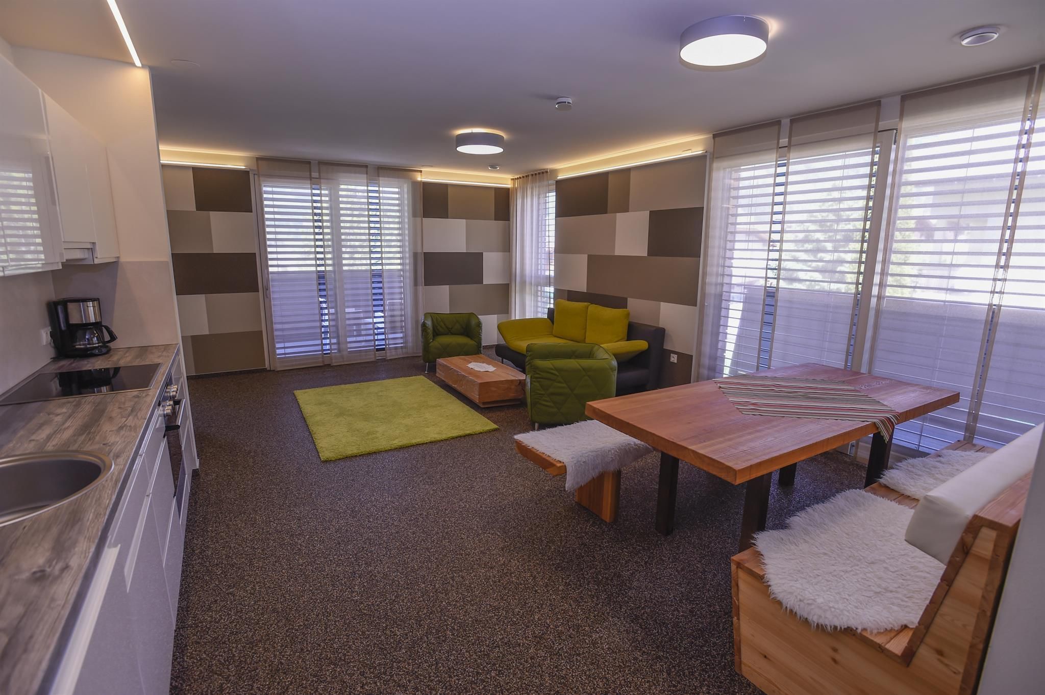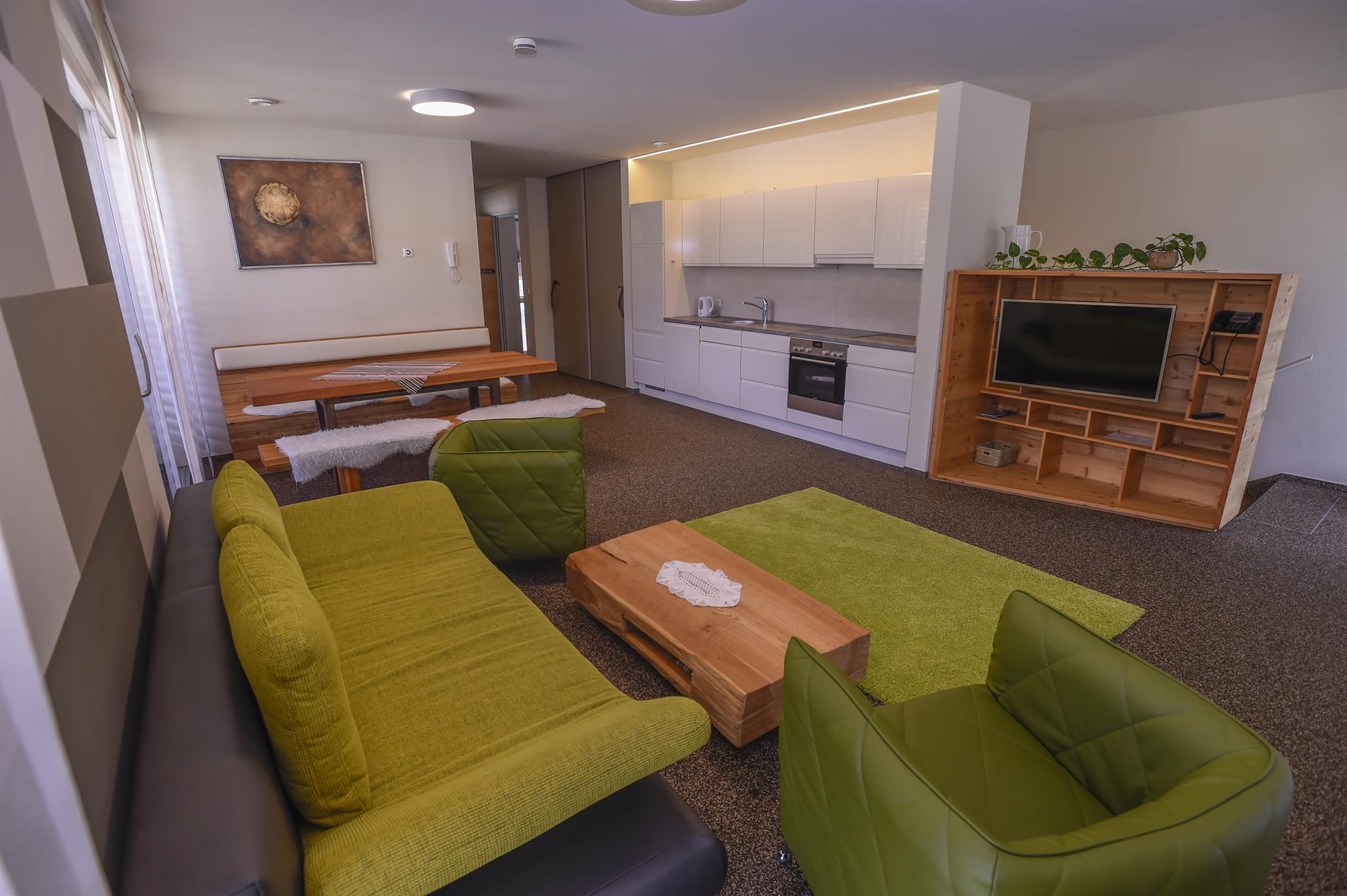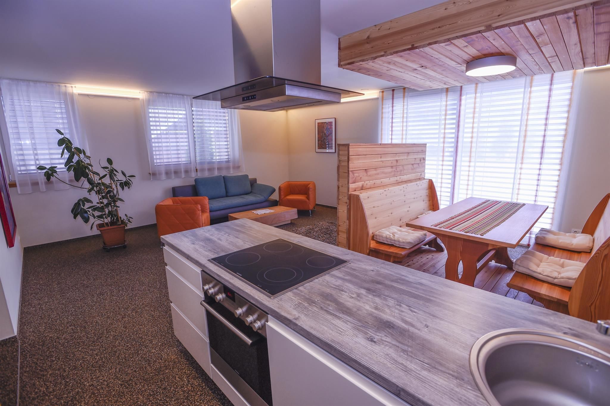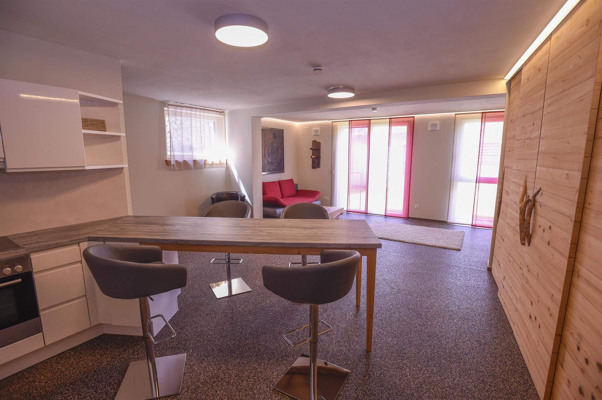 In the tradition-apartments of SUN Matrei on the Pfarrangerweg in Matrei in East Tyrol, modern achitecture combines with traditional wood, iron and stone elements to vreate holiday apartments with the highest level of holiday enjoyment. The individual apartments offer space for two to seven people. From the large living, cooking and dining area you have direct access to one of the south-east to west oriented balconies.