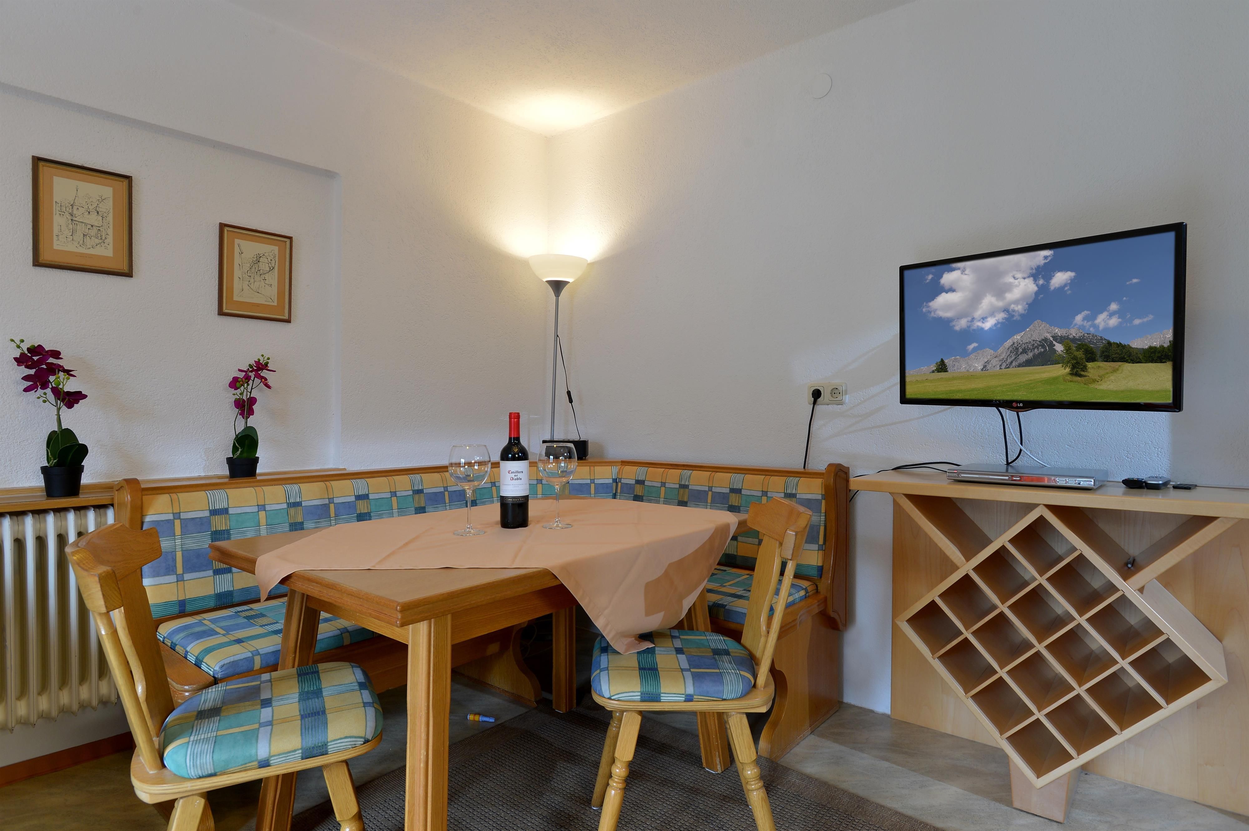 Our house is situated in the middle of the village center of Ellmau in a sunny quiet location with beautiful panoramic view to the Wilder Kaiser-mountains. We are the ideal starting point for you holiday. Just next door you can find a little parc with playground and relax-chairs, the bus stop and many shops and restaurants. The Hartkaiser-station for skiing in the winter and hiking in the summer and the Kaiserbad for swimming, tennis and climbing is about 10 minutes per foot. In the winter there is a free ski bus every 15 minutes to the entry of Austrias biggest ski area. You can find the ski bus stop just next door. We are looking forward to welcome you in our house! Tanja and Florian