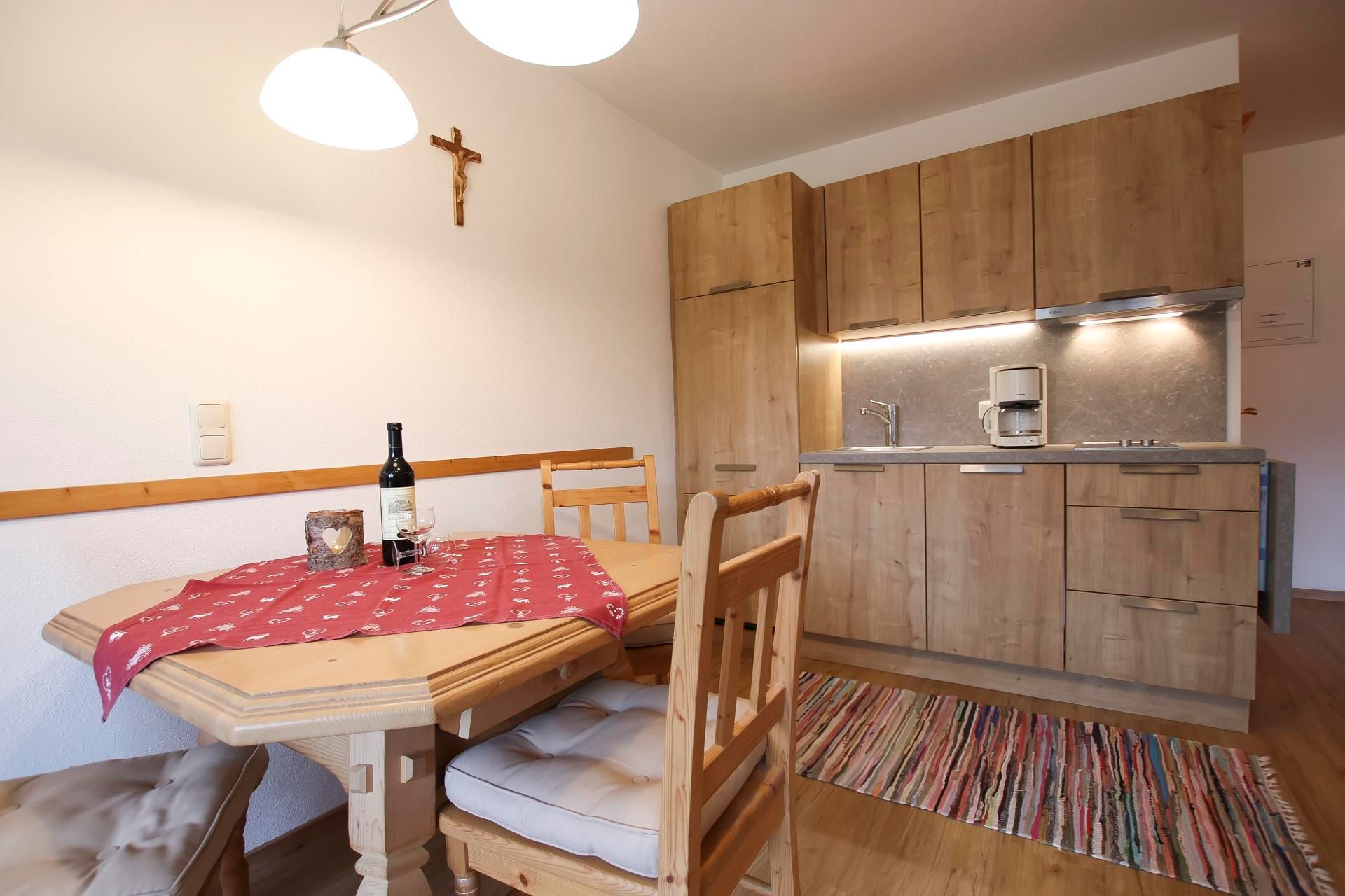 Comfortable farm-house in Tyrolean style in calm and sunny position near the cable-car station, about 500 m from the centre. Room for ping-pong, room for skies and boots, shoe-dryer, large parking.