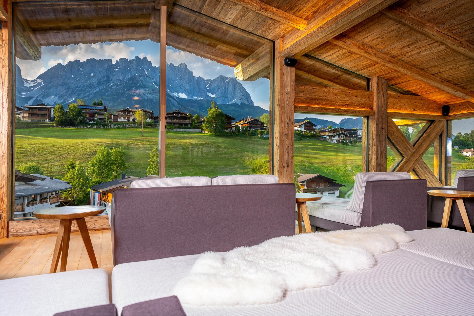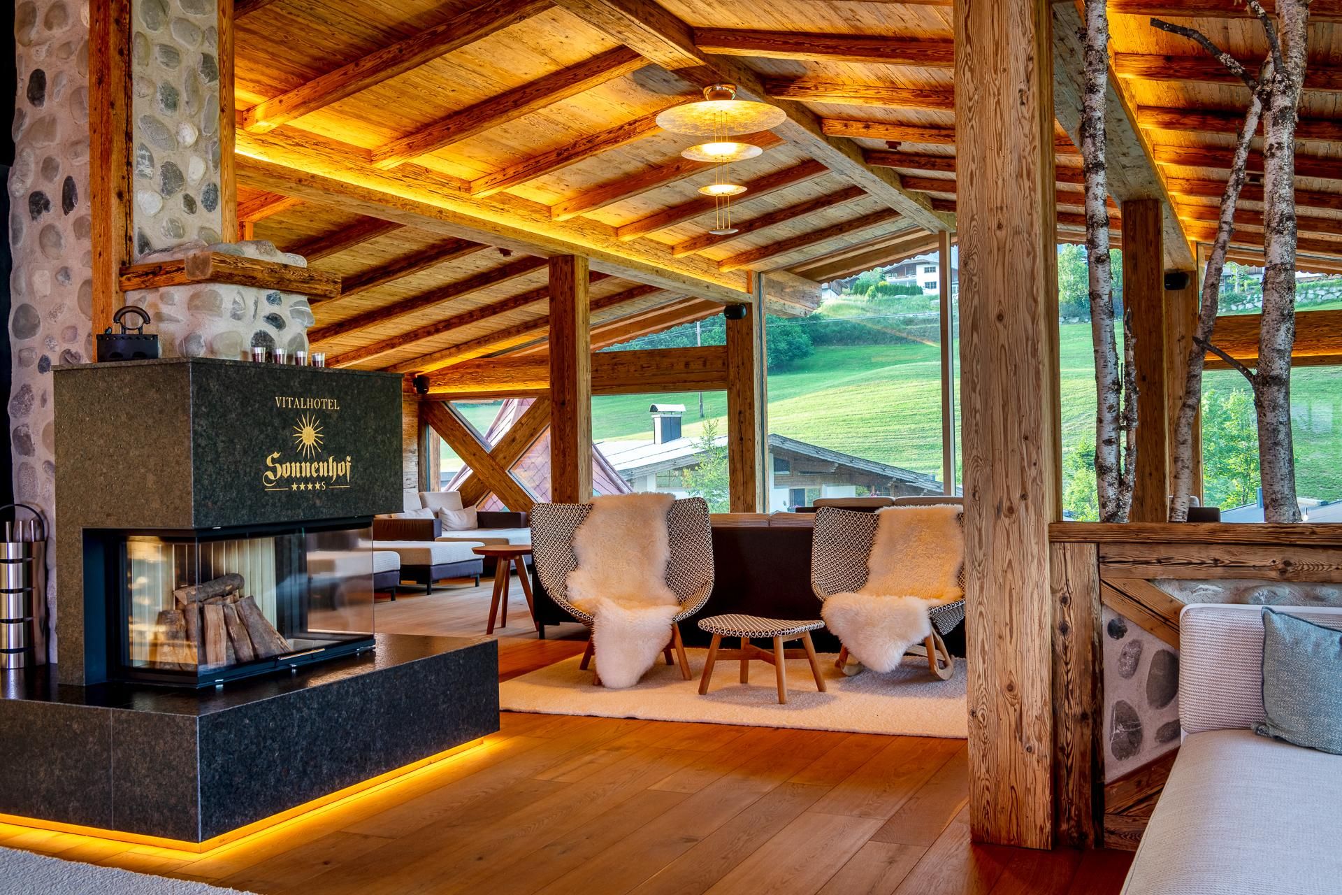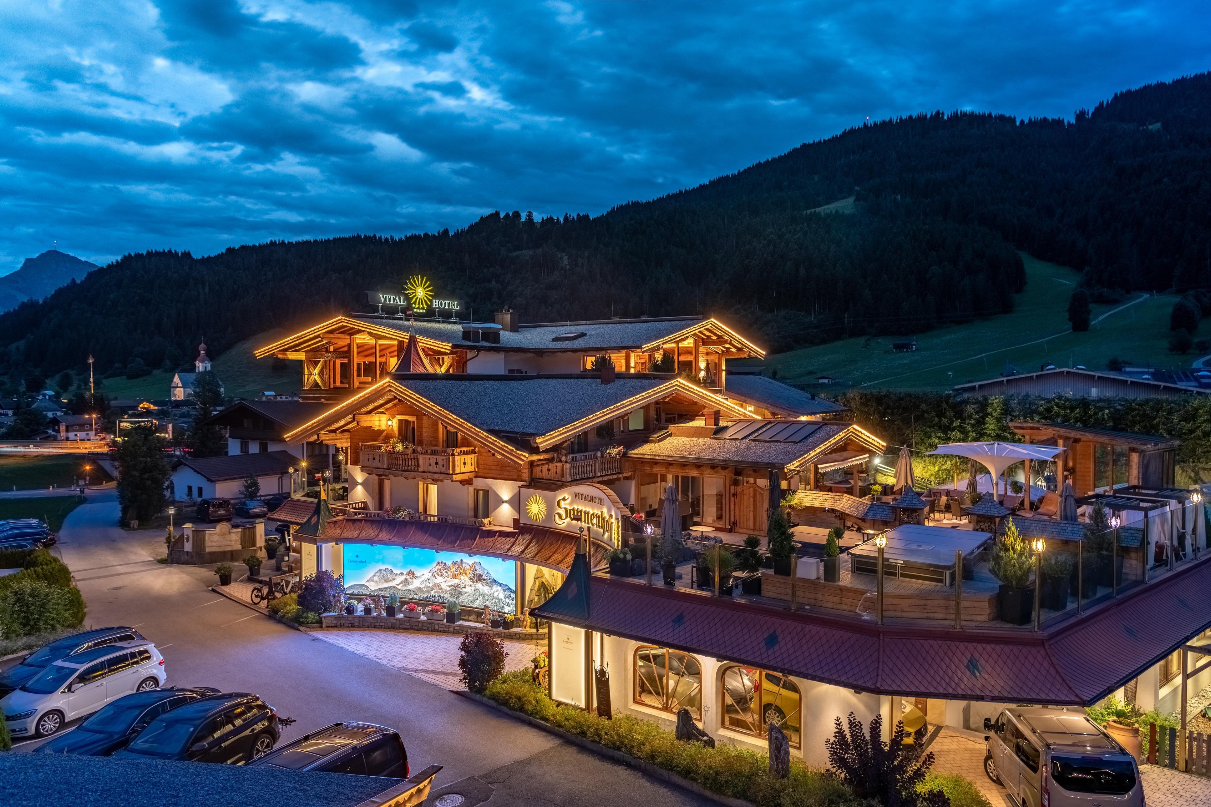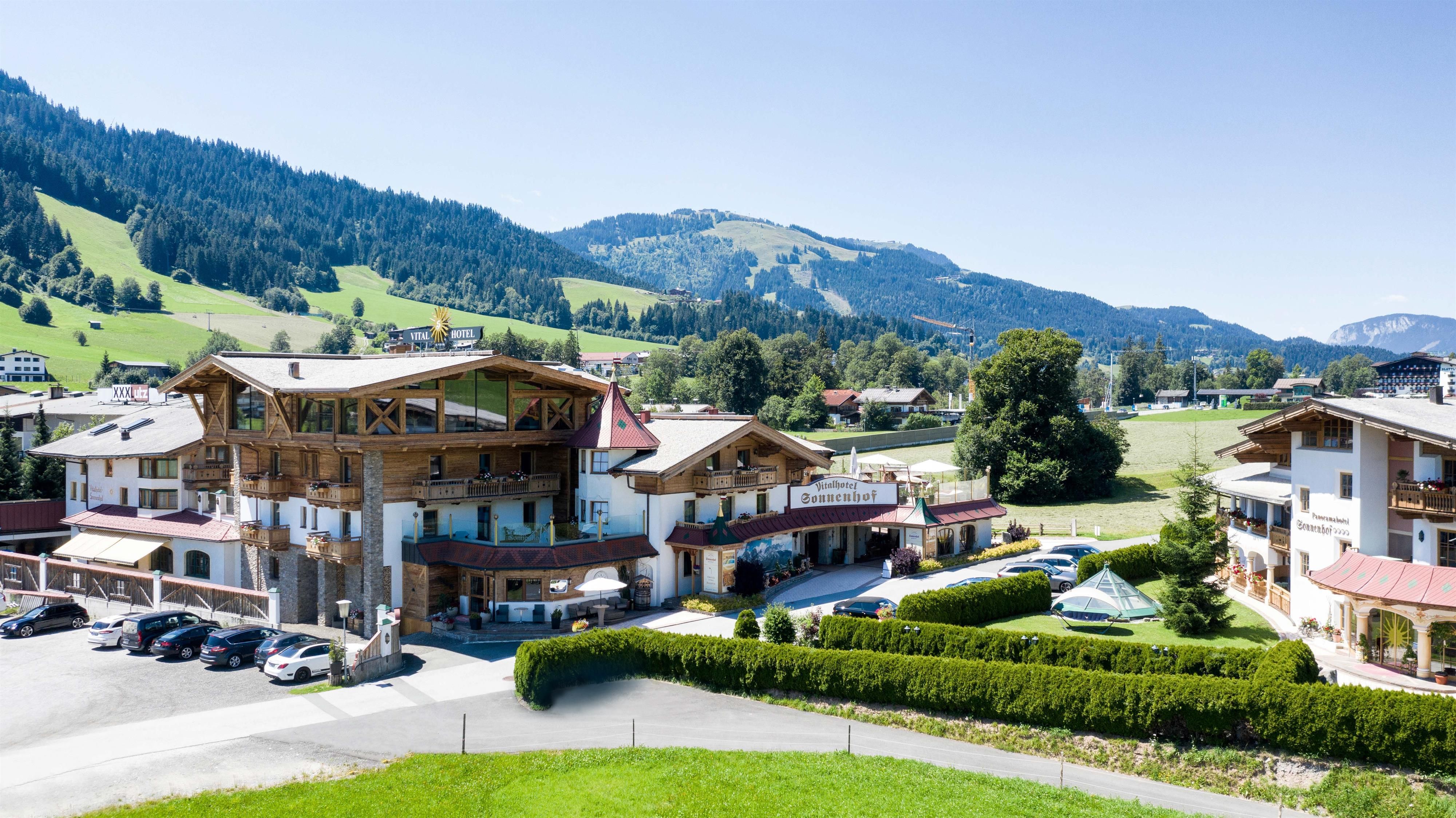 Our Vitality- and Panoramahotel Sonnenhof in Going is located at the foot of the imposing Kaisermountains - with a sweeping view of the majestic peak. Feel at home in our spacious suites and rooms and enjoy the comfort and atmosphere of our four-star hotel. A spacious wellness oasis with a 1500 m² large spa, 2 heated bio-ponds, an indoor pool and sauna, awaits you. Pamper yourself with delicious Tyrolean specialities and tasteful desserts from our kitchen. The Wilder Kaiser region offers many activities all year: 700 km of hiking trails, 12 golf courses, gorges, lakes, children's theme parks, cycling trails, 280 km of skiing slopes, cross-country skiing trails and much more. Your kids will enjoy our varied child and youth program.