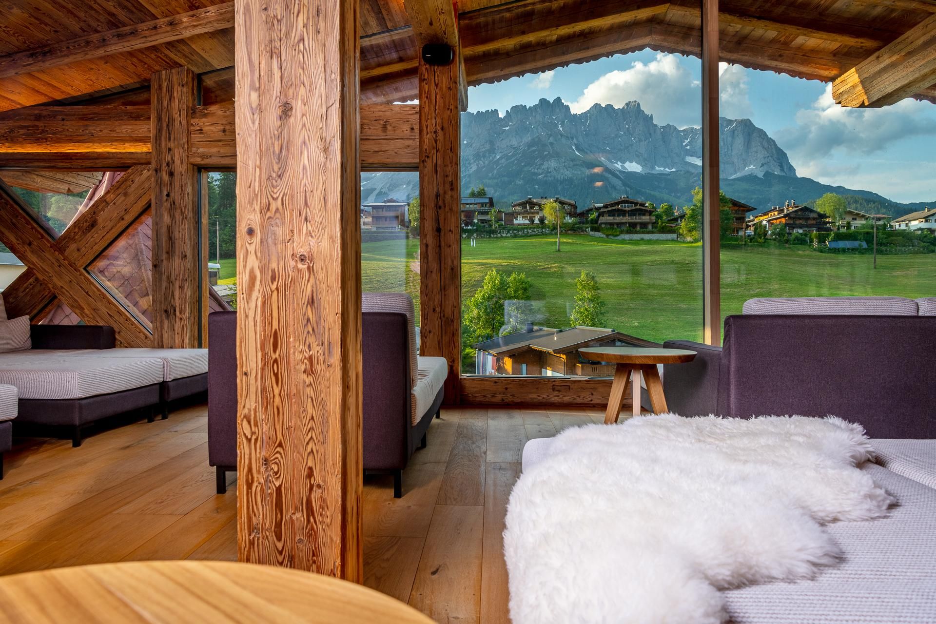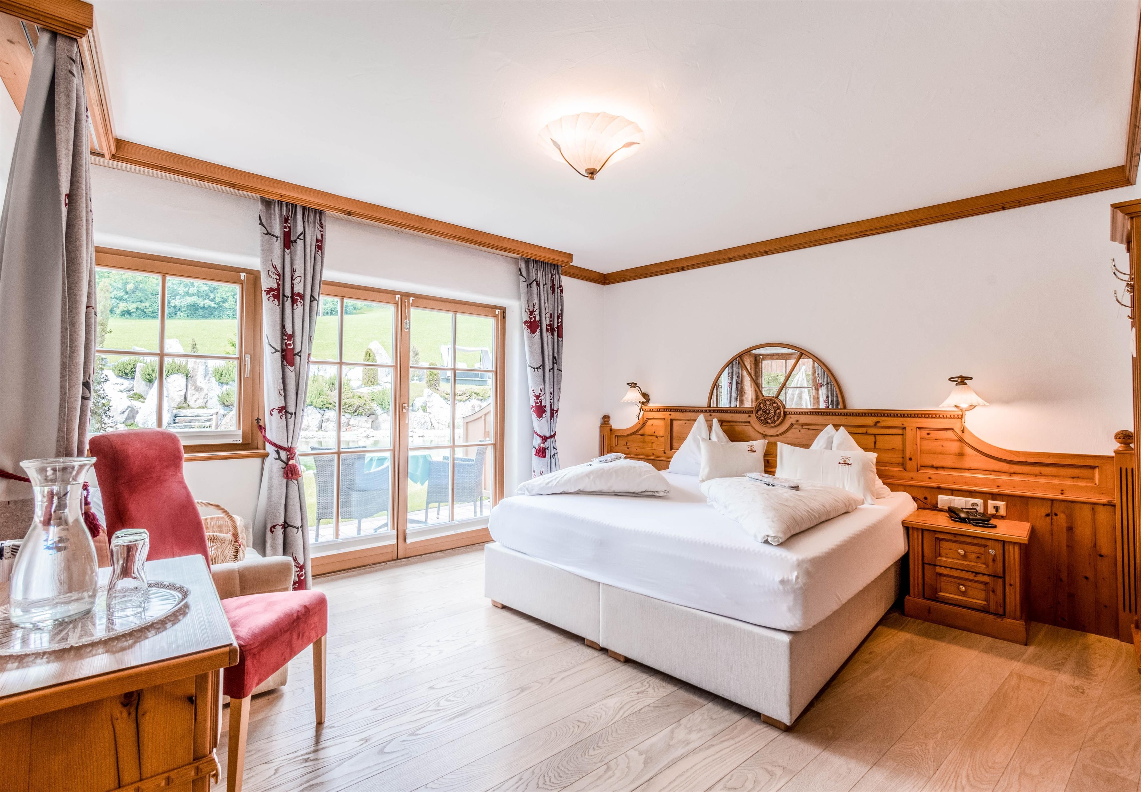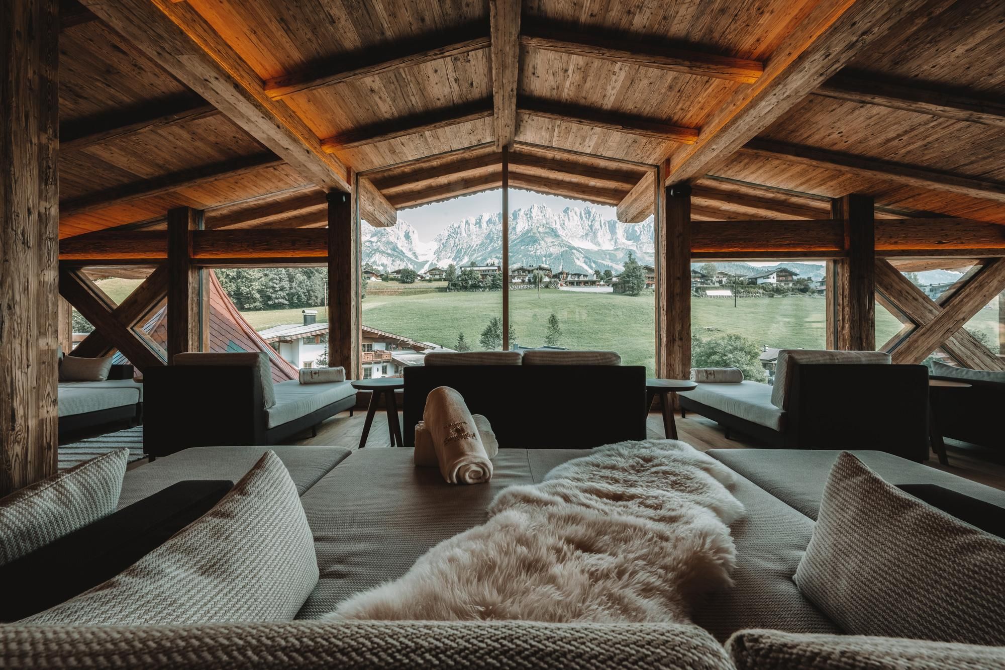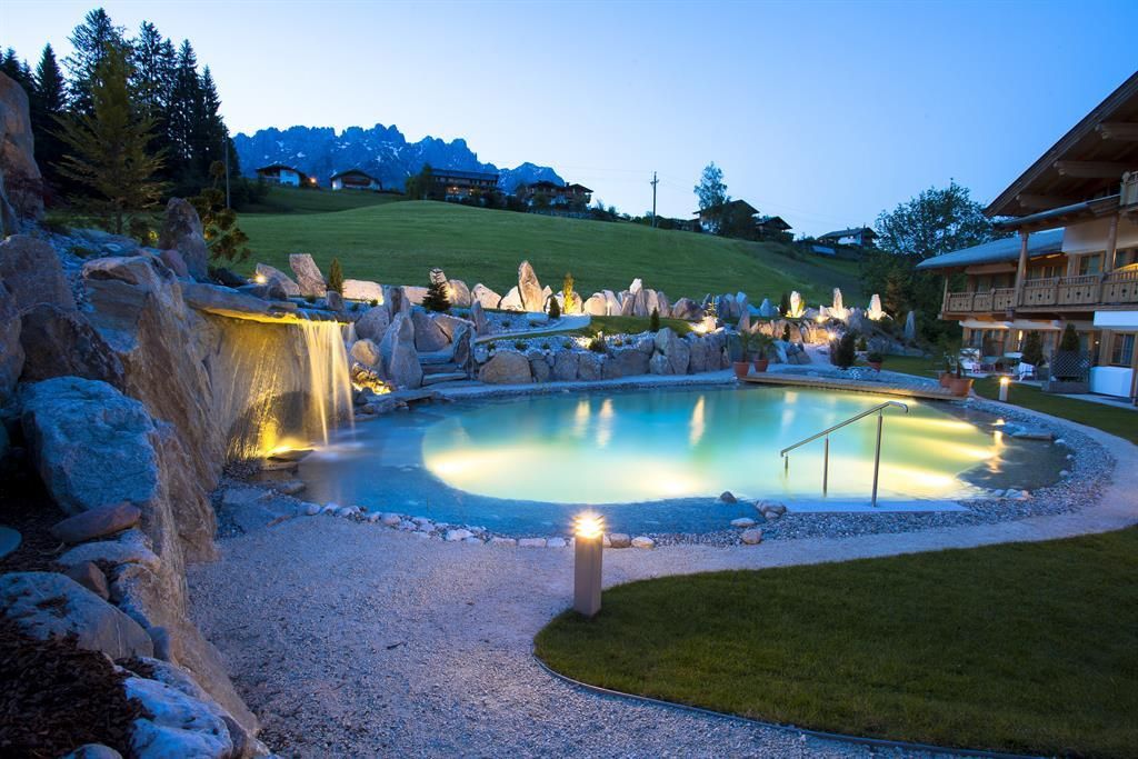 Our Vitality- and Panoramahotel Sonnenhof in Going is located at the foot of the imposing Kaisermountains - with a sweeping view of the majestic peak. Feel at home in our spacious suites and rooms and enjoy the comfort and atmosphere of our four-star hotel. A spacious wellness oasis with a 1500 m² large spa, 2 heated bio-ponds, an indoor pool and sauna, awaits you. Pamper yourself with delicious Tyrolean specialities and tasteful desserts from our kitchen. The Wilder Kaiser region offers many activities all year: 700 km of hiking trails, 12 golf courses, gorges, lakes, children's theme parks, cycling trails, 280 km of skiing slopes, cross-country skiing trails and much more. Your kids will enjoy our varied child and youth program.