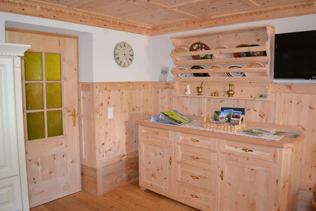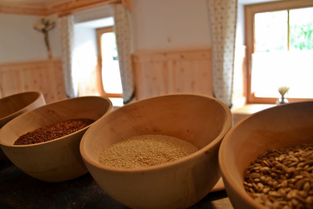 Welcome! Great to see all of you! Wake up, blink and smile. How good life can be. Enjoy your holidays at Stoanahof! Generous holiday apartments with furniture from wood and cosy rooms are great to pause and rest. Yummy, the smell of coffee is in the air. Monika is getting fresh herbs to make tea from our spiral herb garden. Yoghurt, milk, a variety of jam, honey, bacon and much more. Homemade. Truly delicious! Hiking, mountain climbing, swimming, cycling. To which mountain hut are we going today? Getting some great tipps while "hoangaschtn", which means chatting, with Wastl. Let's go to the National Park Hohe Tauern in East Tyrol! Peace and quiet. Heavenly. View of the Großglockner, Austria's highest mountain. Enjoy a plate of "Kaiserschmarrn" (a fluffed and cut up, sugared pancake) on a mountain pasture. After having returned home, enjoy a schnapps with Wastl in the "Radlereck" , a welcoming seating arrangement outside. Life is good at Stoanahof! We are looking forward to meeting you! Monika and Sebastian Brandstätter