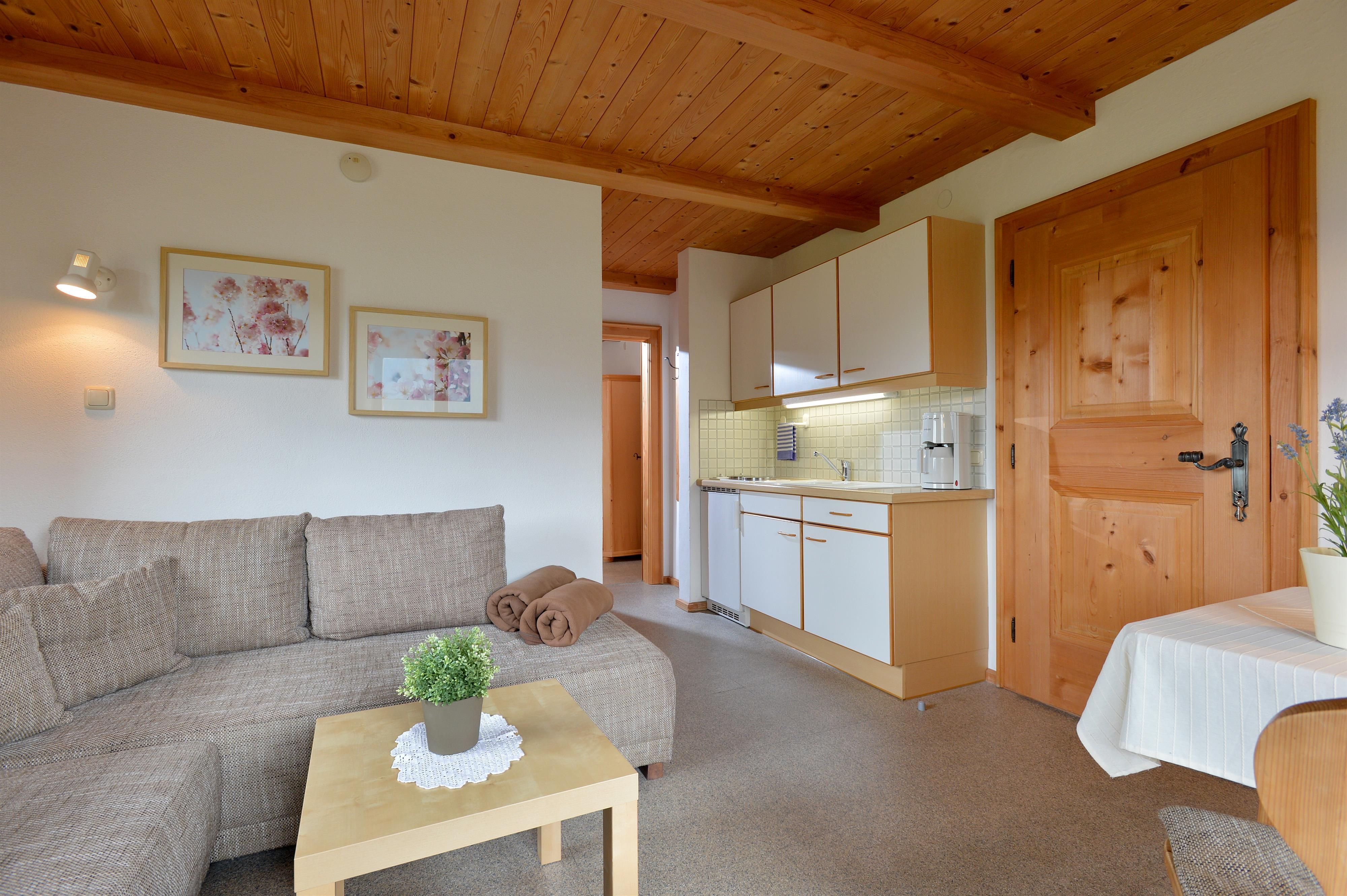 Our apartments have a bedroom, living room, sitting area, satellite TV, bathroom with shower and toilet, balcony, radio, hairdryer, safe, clock radio and are fully equipped in country style with crockery, bed linen and table linen.