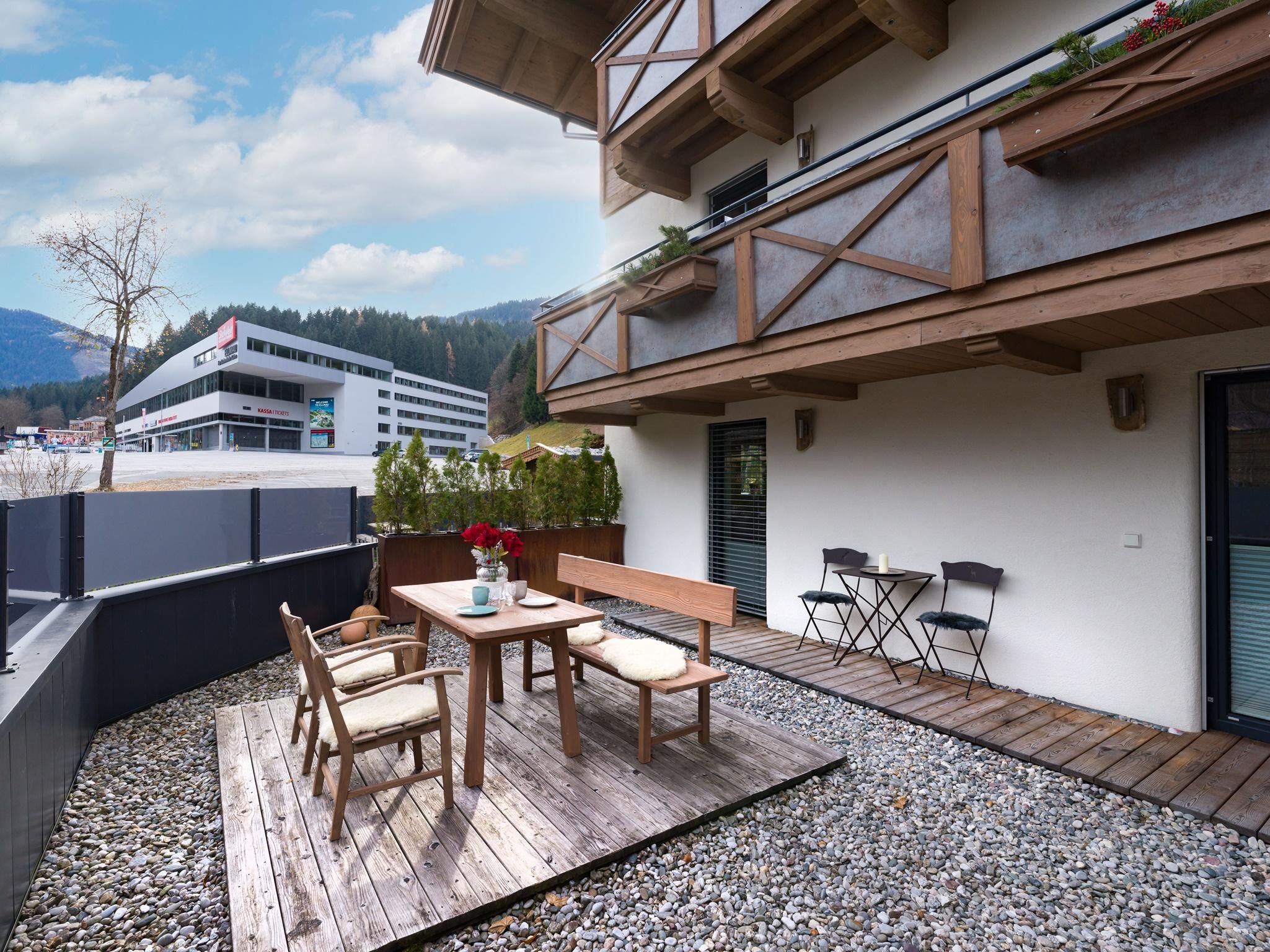 Our house is situated in a quiet location, right next to the valley station of the Hartkaiserbahn cable car, with a fantastic view of the Wilder Kaiser.