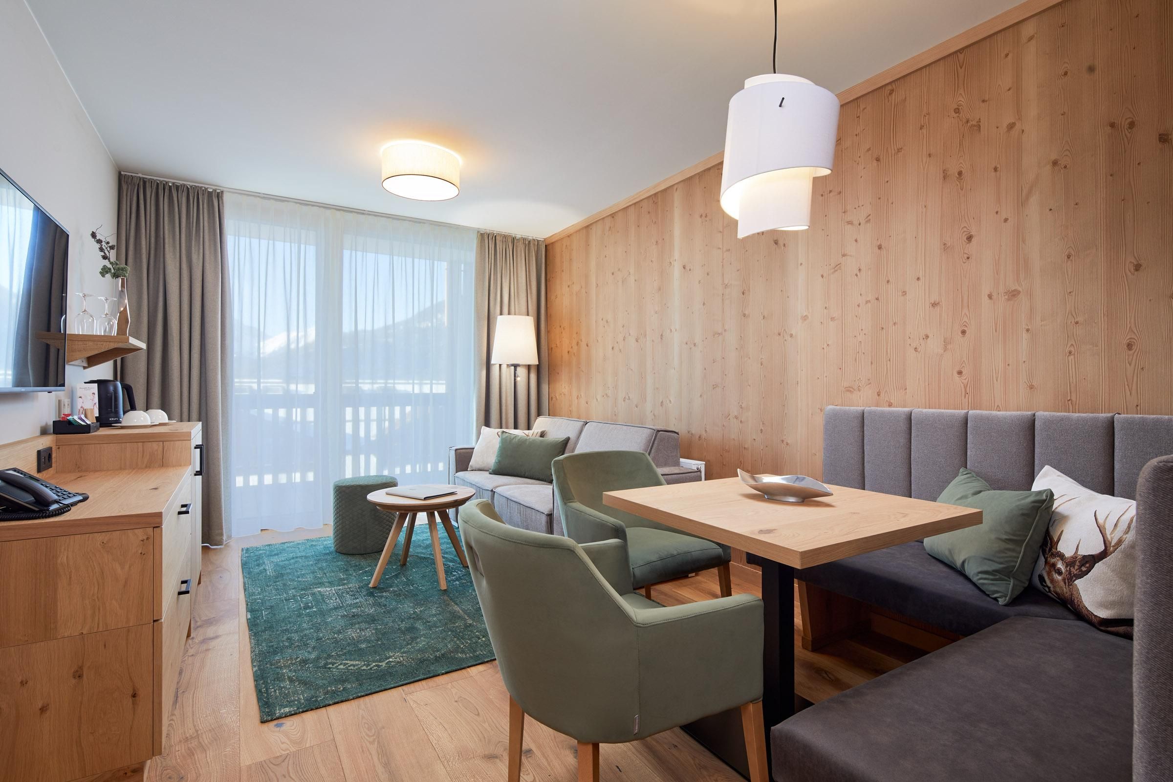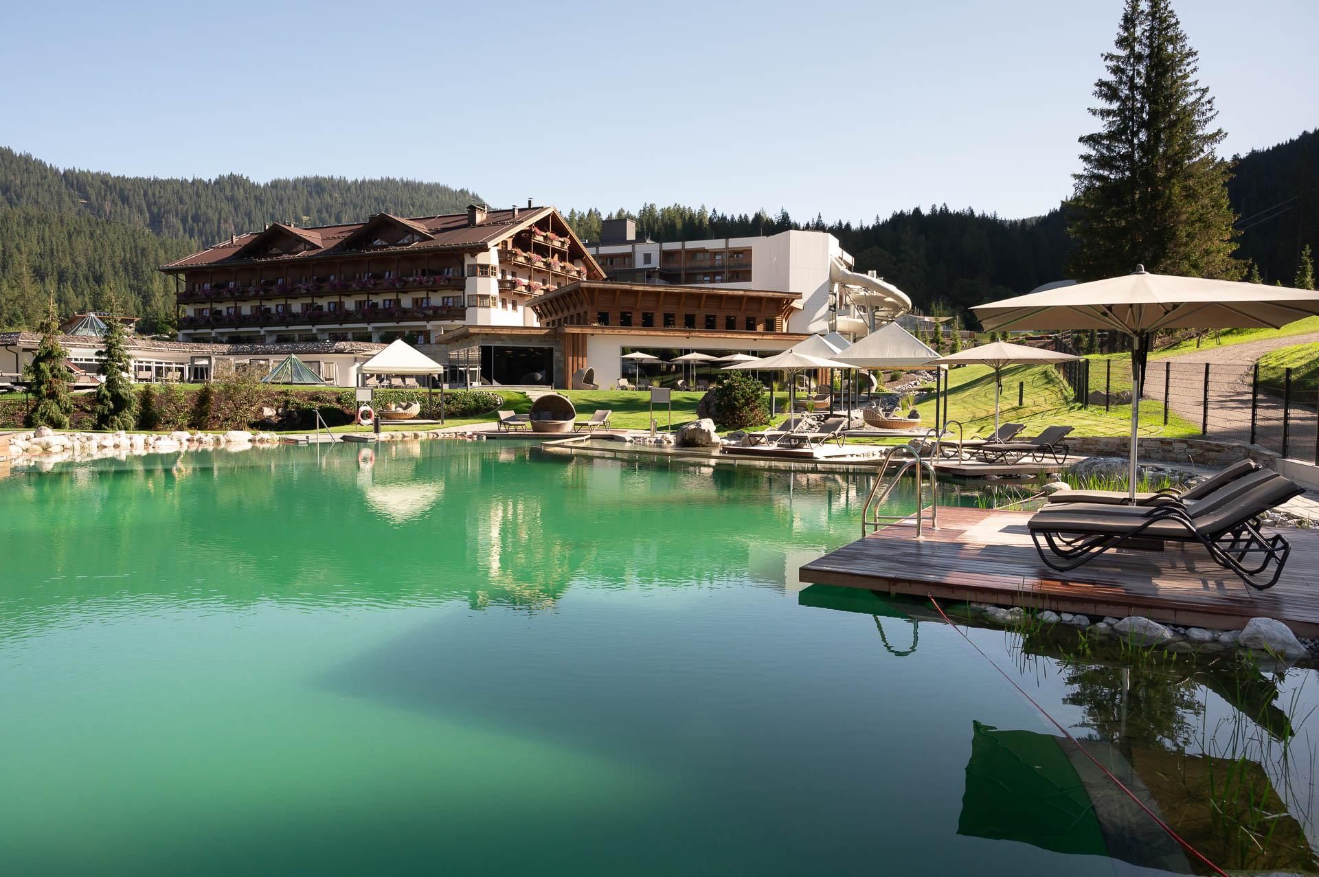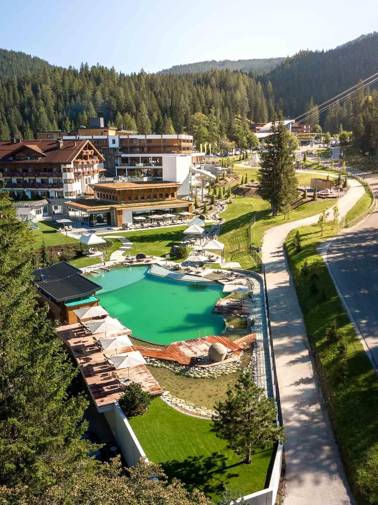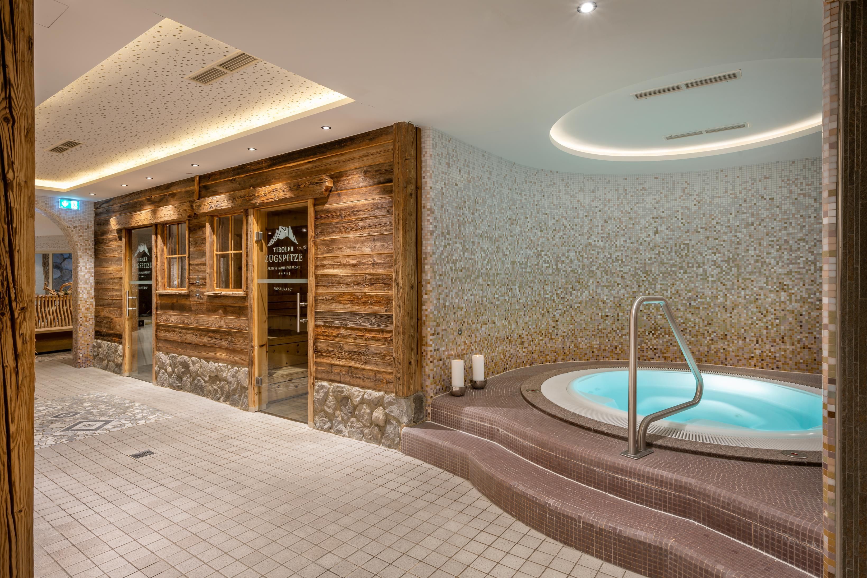 At the foot of the Zugspitze lies the Zugspitz Resort: a 4* superior paradise for families, a home for hiking and nature enthusiasts. 83 rooms and suites in our "Tradition" and "Modern" buildings, indoor-outdoor pools, baby pool, children's water world with competition slide and pirate ship, children's cinema, crawling area, trampoline, pedal kart track and childcare from 3 years. A small, fine wellness area with saunas, steam bath and spa treatments. Perfect location right next to the Tiroler Zugspitzbahn.