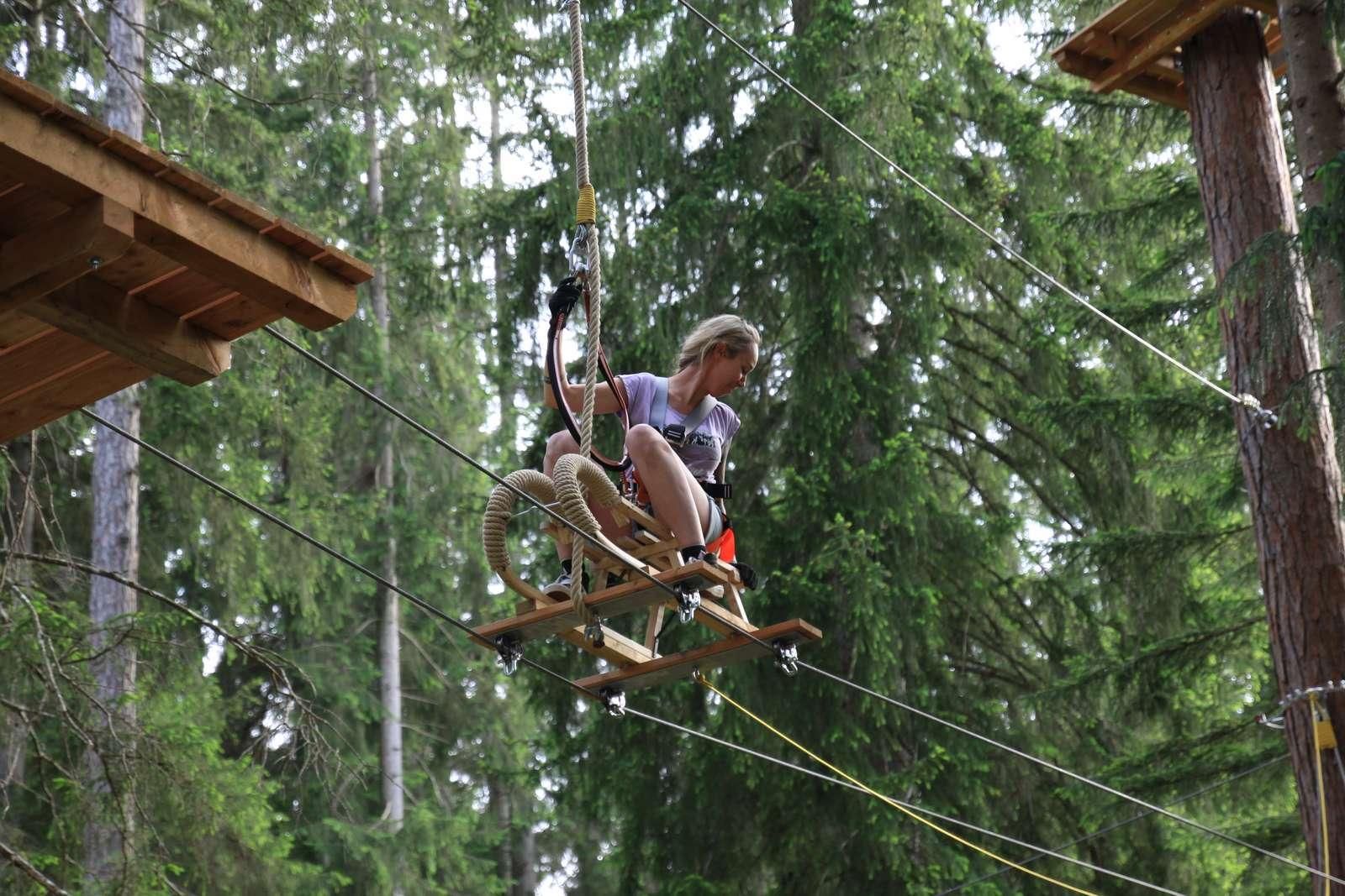 60 exciting exercises on six courses – from simple balancing trails to challenging climbing sections and thrilling zip lines.