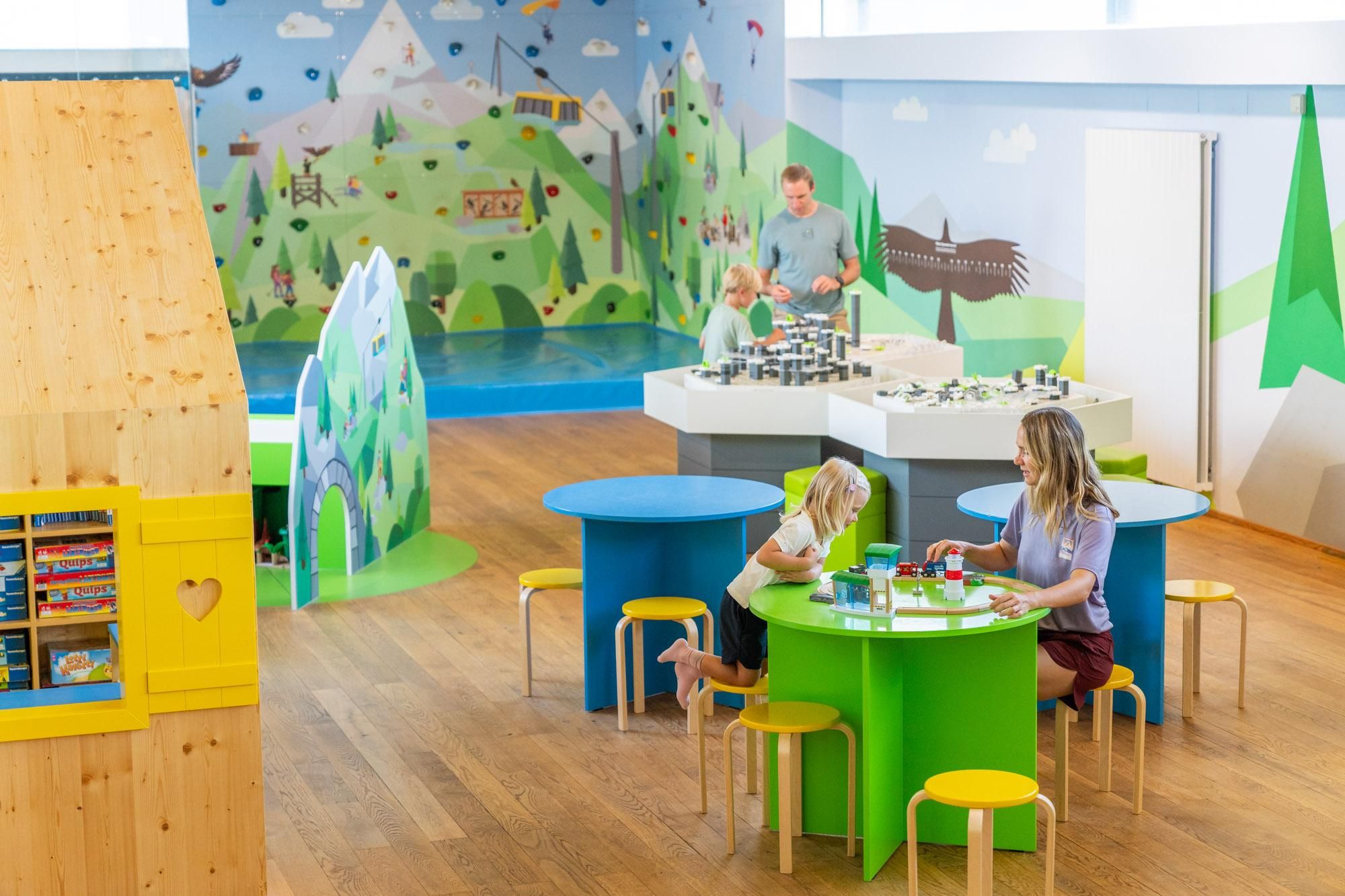 Fun and games with AlbertAdler await you this summer in FreiRaum at the top station of the Ahornbahn!Together with Ravensburger, an exciting and varied indoor game world was created on approximately 140m². (age recommendation from 3 years)OUR TIP: Ideal also as a bad weather program! Equipped with a large climbing wall, a playhouse with books and coloring templates, an eagle's nest with listening stations, GraviTrax and Brio gaming tables as well as a giant puzzle and memory, you will definitely have an exciting time with us!AlbertAdler and his friends are looking forward to seeing you!