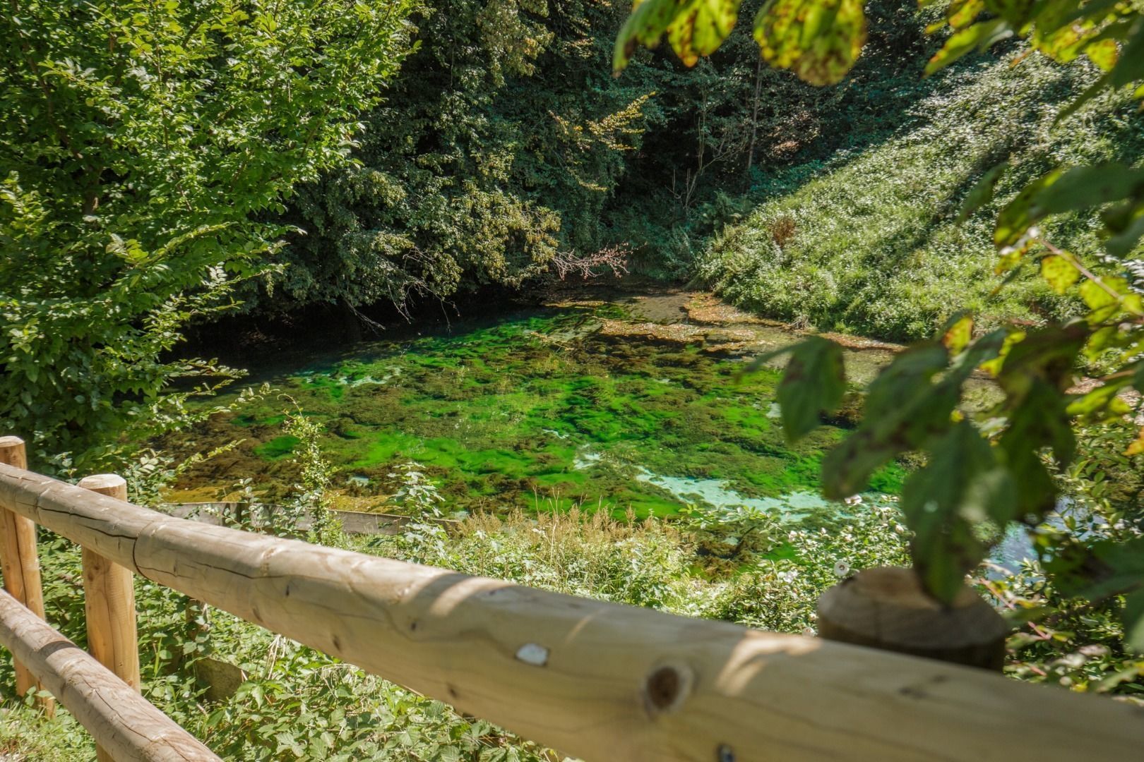 An indescribable play of colours and the quiet splashing make the Blue Spring, a natural source of drinking water, a very special energy-giving oasis of well-being. Through the garden of the guesthouse "Blaue Quelle" you reach the opening valley, where a breathtaking spectacle of nature offers itself. Two benches and a wooden couch invite you to absorb the impressions and sink into the natural oasis.