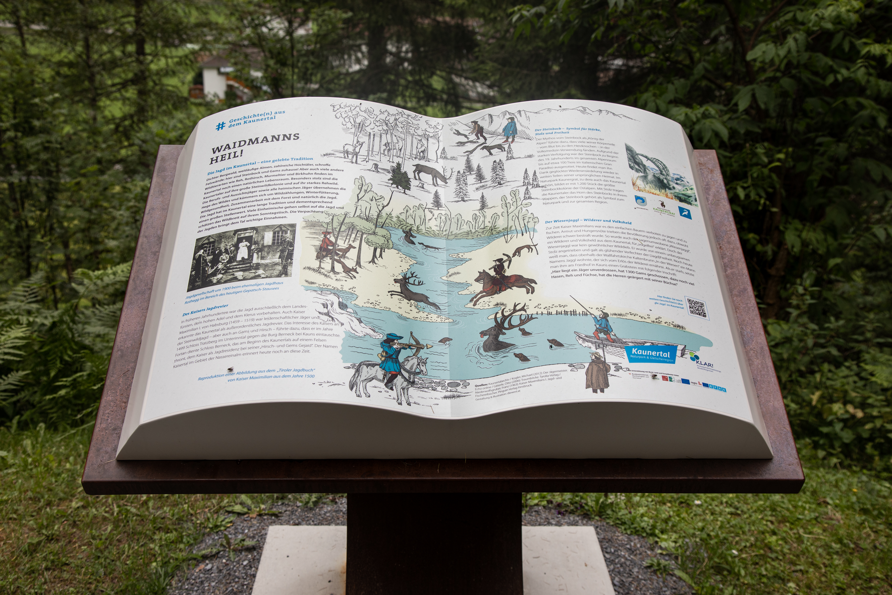 The XXL books are easily accessible for everyone, even with a wheelchair or pram. In addition, each location is linked to the Kaunertal contemporary witness archive by means of a QR code, which promises further exciting memories of life in the Kaunertal.