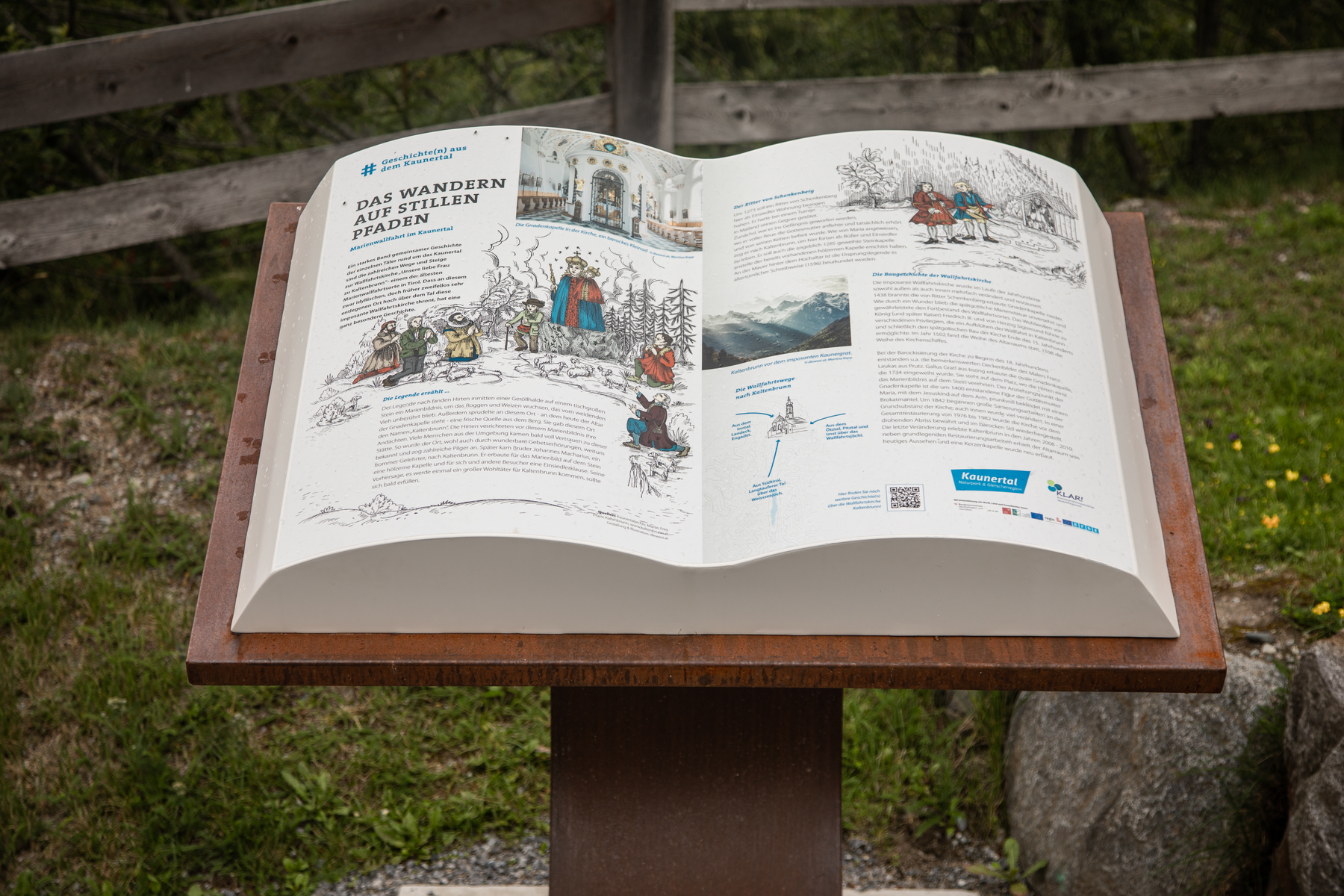 The XXL books are easily accessible for everyone, even with a wheelchair or pram. In addition, each location is linked to the Kaunertal contemporary witness archive by means of a QR code, which promises further exciting memories of life in the Kaunertal.