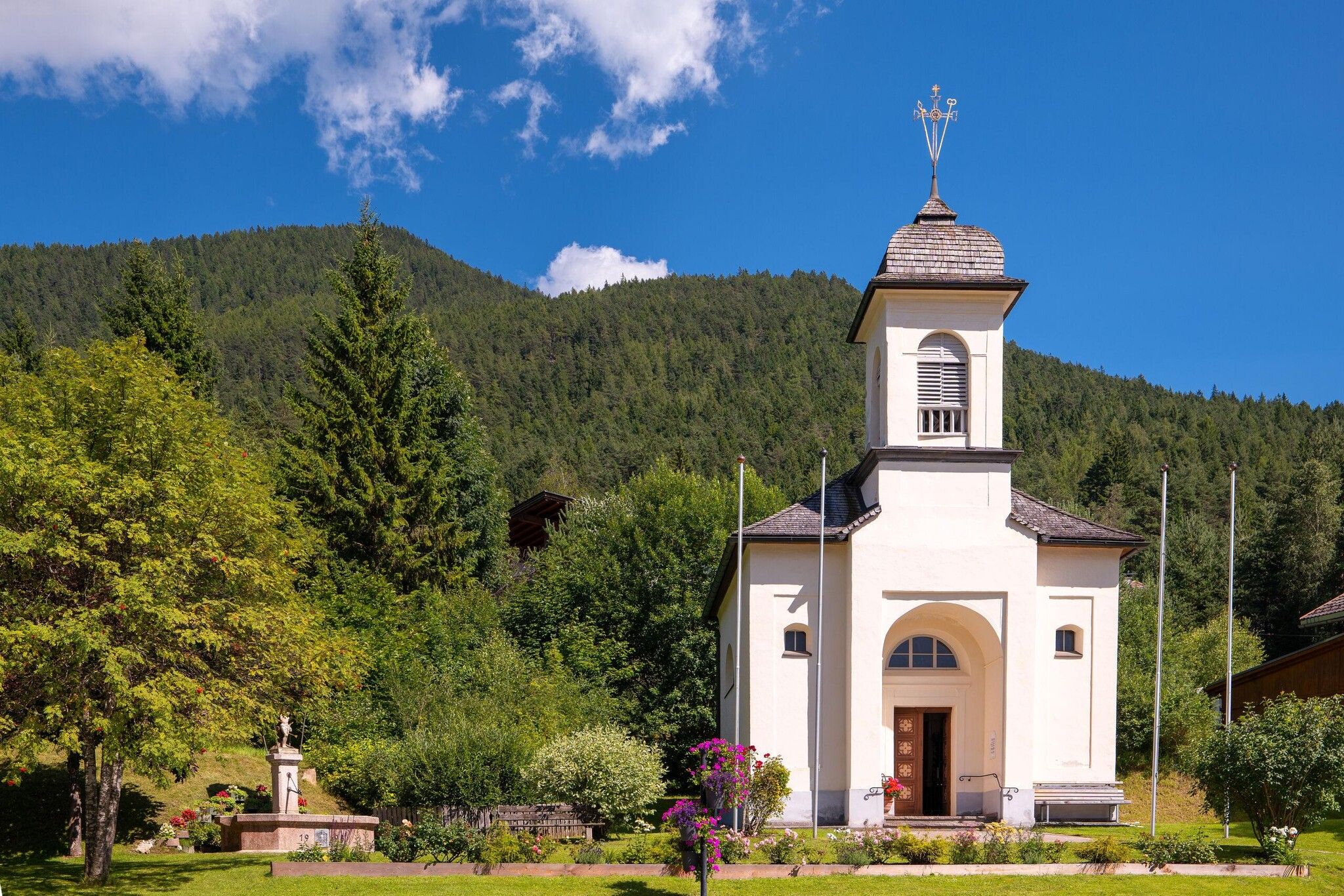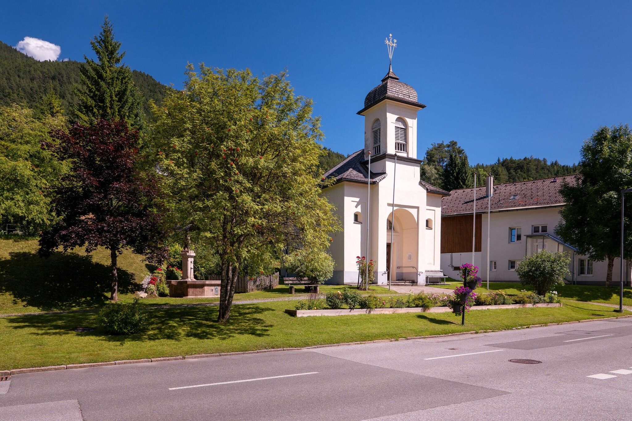 The church in Auland was constructed in 1856 with the help of exemplary co-operation within the inhabitants of the village. During the catastrophic years after 1892 and 1945 the principal church services for the whole local area where held in this chapel. In 1898 it was renovated as part of the celebrations of the 50th anniversary of the accession of the Emperor Franz Joseph. This is commemorated by a plaque on the exterior. Inside there are plenty of treasured works of art. As well as the high altar with an image of Mary, Mother of Perpetual Help, of note are the two side altars, statues and frescos. The chapel was renovated again between 1995/96.