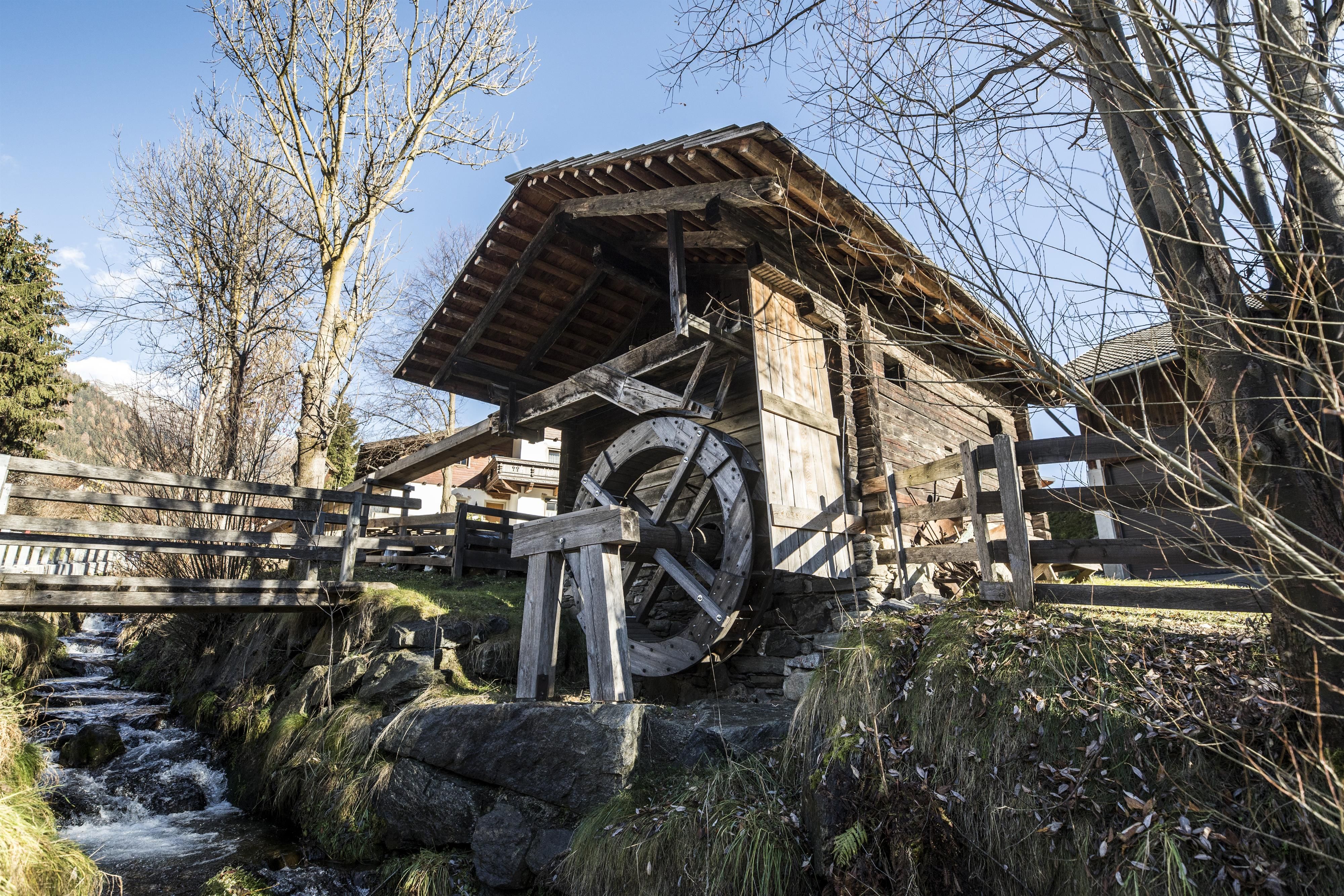 Lots of sunshine, a marvellous view of the mountains around the Lienz valley floor - Oberlienz is without doubt a particularly beautiful place. The sunny village also has an impressive cultural landscape to offer. Anyone travelling along the well-maintained hiking trails is sure to notice the so-called "Feldgröfelmauern" in the meadows. These are dry stone walls, piled up from stones and rubble that once reached the fields through the Schleinitzgraben with mudslides, avalanches, etc. If you walk along the Schleinitzbach stream in the village centre, you are basically already in the middle of the Oberlienz open-air museum, which consists of an ensemble of various historical buildings. They give an impression of life and farming in the region. At the upper end of the open-air museum, you first come across the Bad- und Brechelstube, where flax was roasted and flax was broken until the early 1950s. Alongside sheep's wool, flax fibres formed the basis of all textiles used in rural life. The washed wool ran through wooden rollers and iron pins in the wool carding machine further down, which was driven by a paddle wheel - this is how it was cleaned and made ready for spinning.The granary once stored fruit and potatoes on the open floor, field and garden crops and barrels of cabbage. The village grain store was located on the floor above. The grain mill of the "Znopp" hereditary farm is also part of the open-air museum ensemble. Grain was ground here and processed into animal feed using the clover crusher. The large hammer in the farmyard and hardware forge further down was also driven by a water wheel, with a sophisticated system regulating the air supply for the bellows.