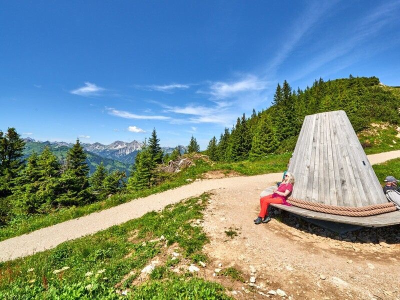 Der „Kuckst Du – Sonnenpanoramahut“ kann von der Bergstation Füssener Jöchle mühelos auf unserem Geo-Pfad in Richtung Gamskopf erreicht werden. Der Hut steht unseren Gästen Sommer wie auch Winter zur Verfügung!