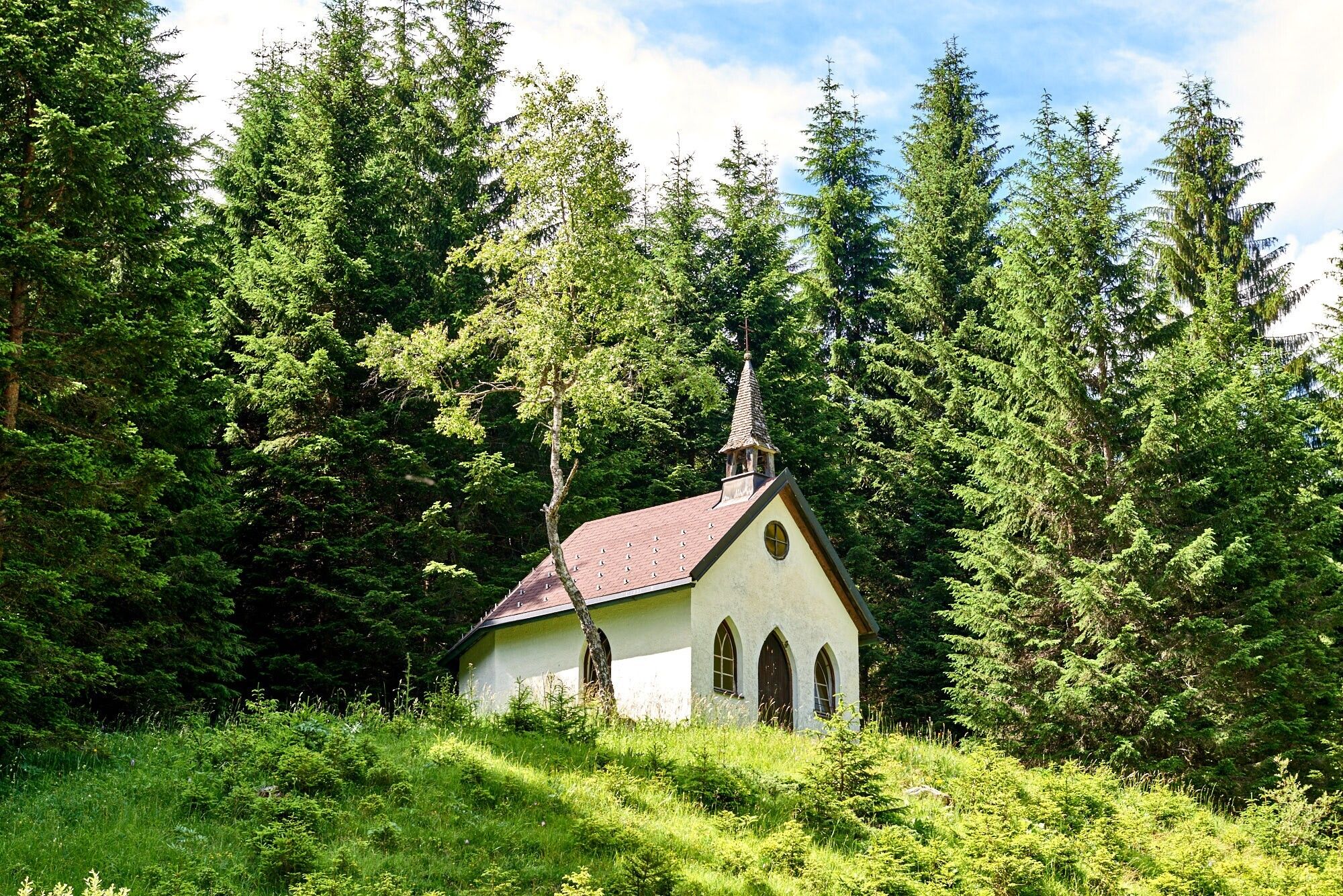 This picturesque chapel stands somewhat elevated at the fork in the road to Rauth. It is privately owned by the Bilgeri family. This chapel is still very often visited by believers seeking comfort and help. Prayer room with bell ridge turret, painting Maria mit Kind by Melchior Paul von Deschwanden, 1874.