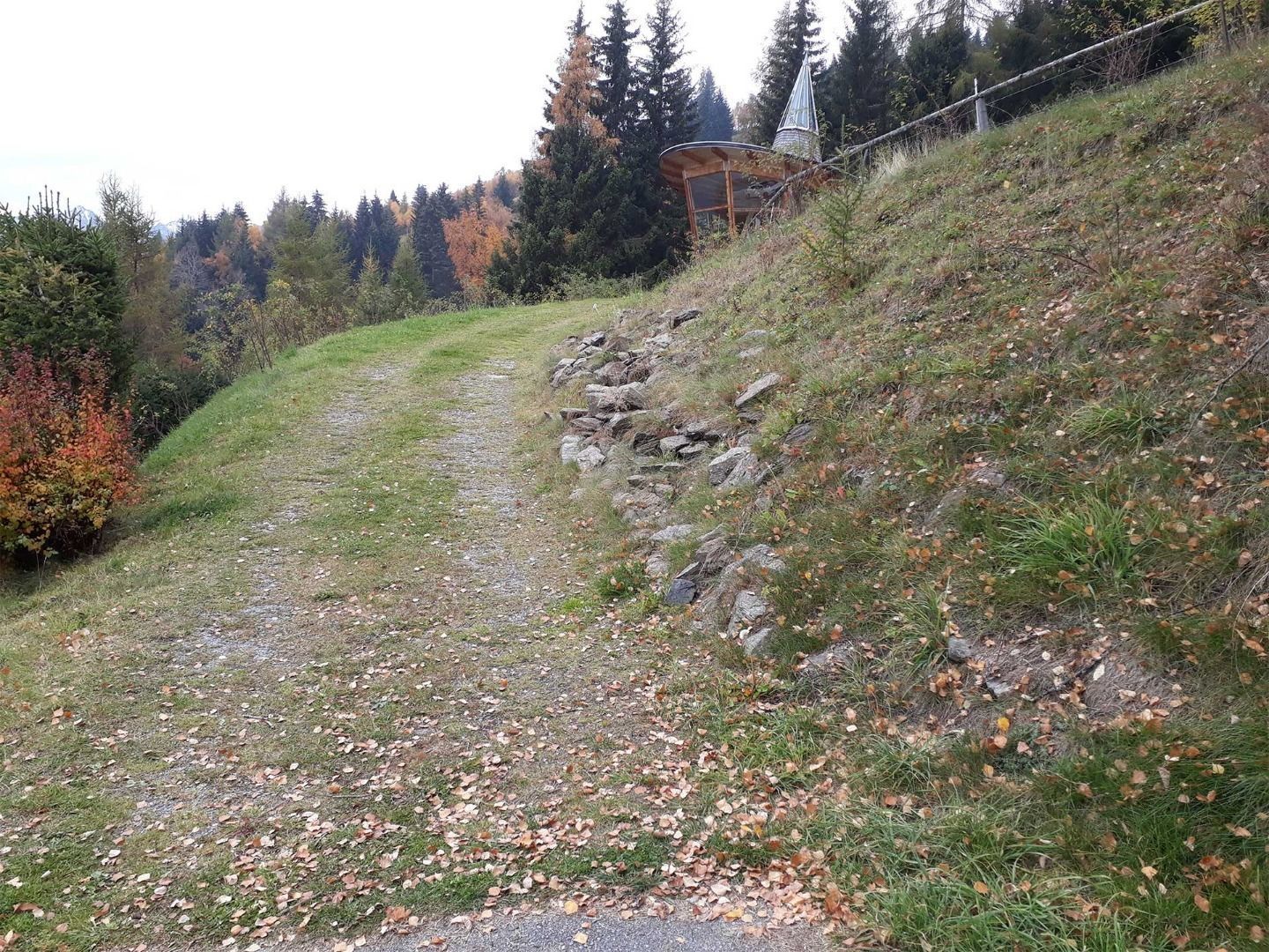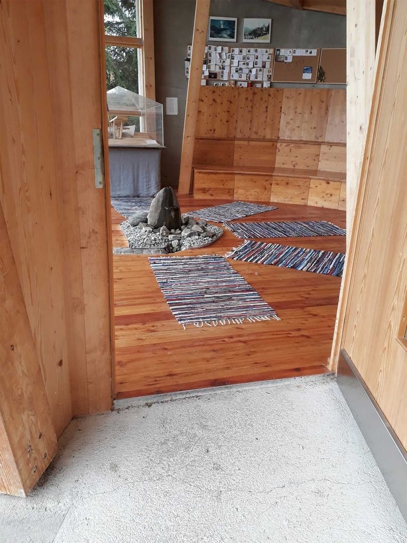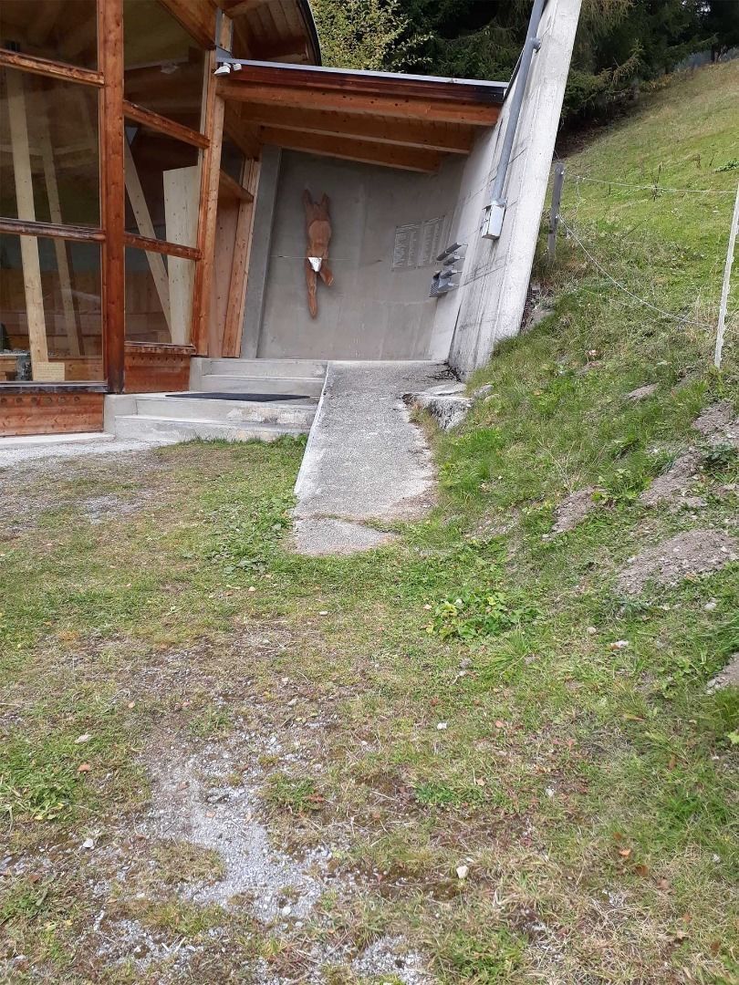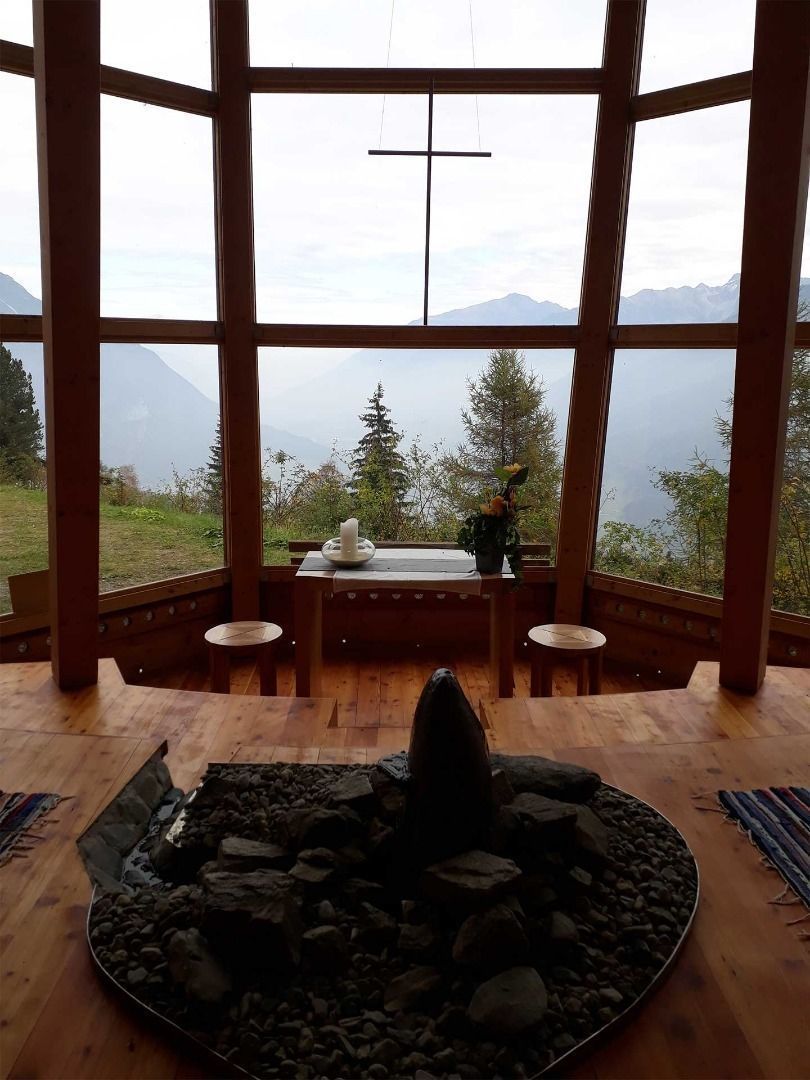 It is a ca. 10 min car journey from the main road up to Plattenrain. At the end of the road, you can park at the car park near the chapel. Follow a short steep section that is not laid-out as a path up to the chapel. You will need assistance for this section. The chapel can be accessed via a steep concrete ramp. The interior is level and laid-out with wood flooring. It offers space to sit down and to meditate.