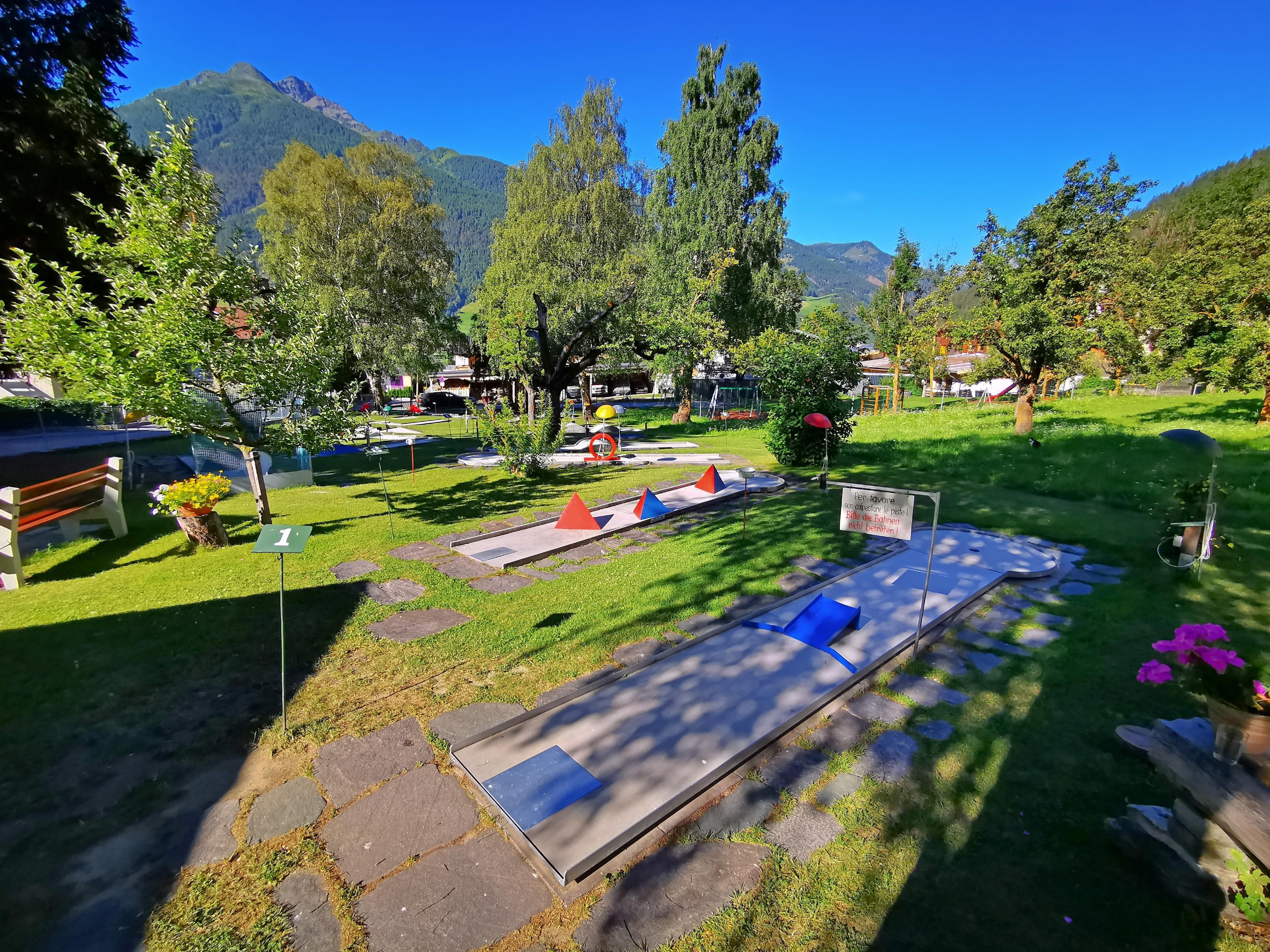 The mini golf course with 15 lanes in a beautiful garden setting, is located directly in the center of Matrei in Osttirol. The possibility to follow the minigolf on a warm summer evening is also available.