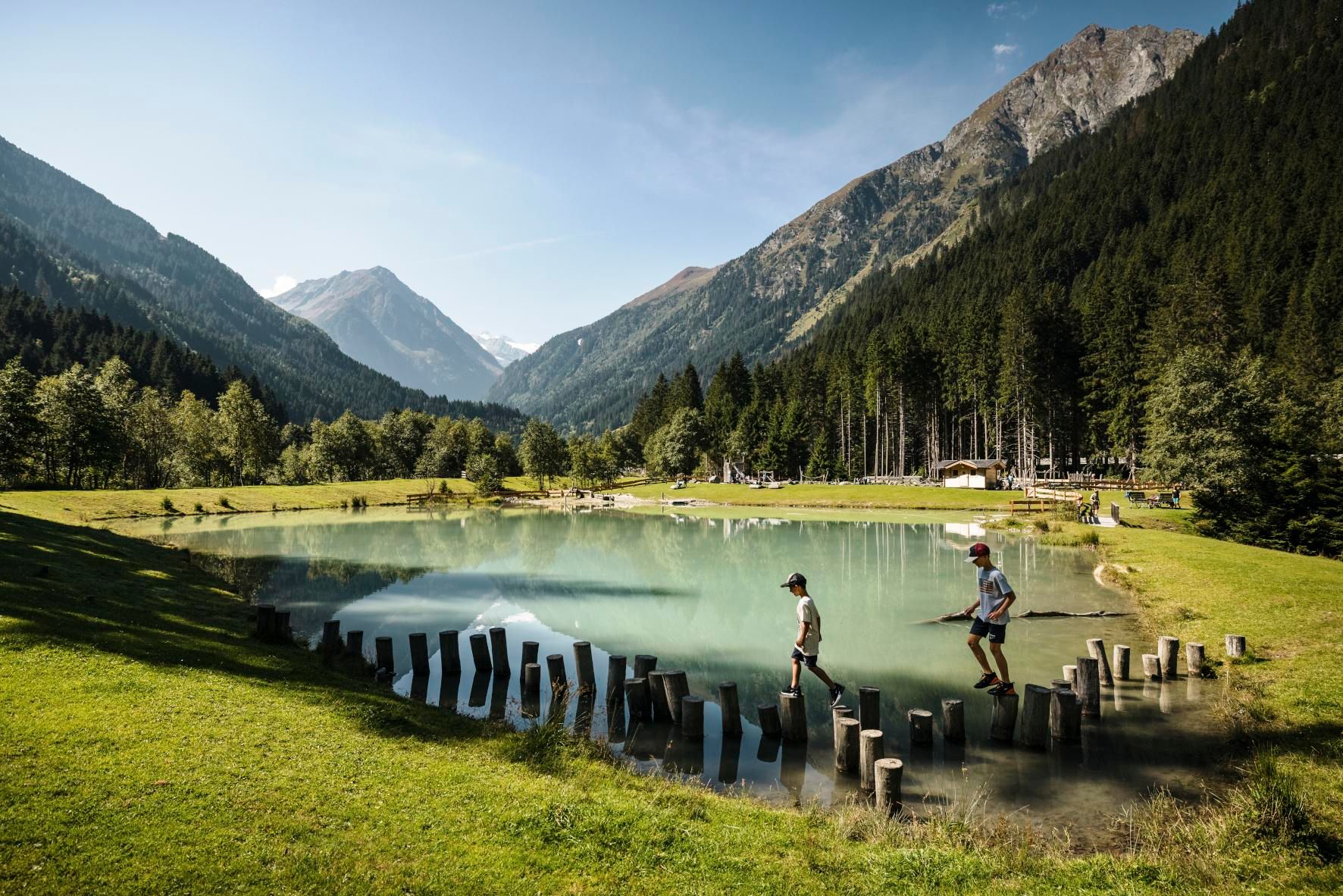 This unique playground is designed so that little adventurers can wade through shallow streams, build dams, and experiment with water flows. Endless water fun and creative play are guaranteed. While the children splash and play, parents can relax in the idyllic surroundings and enjoy the impressive mountain scenery.