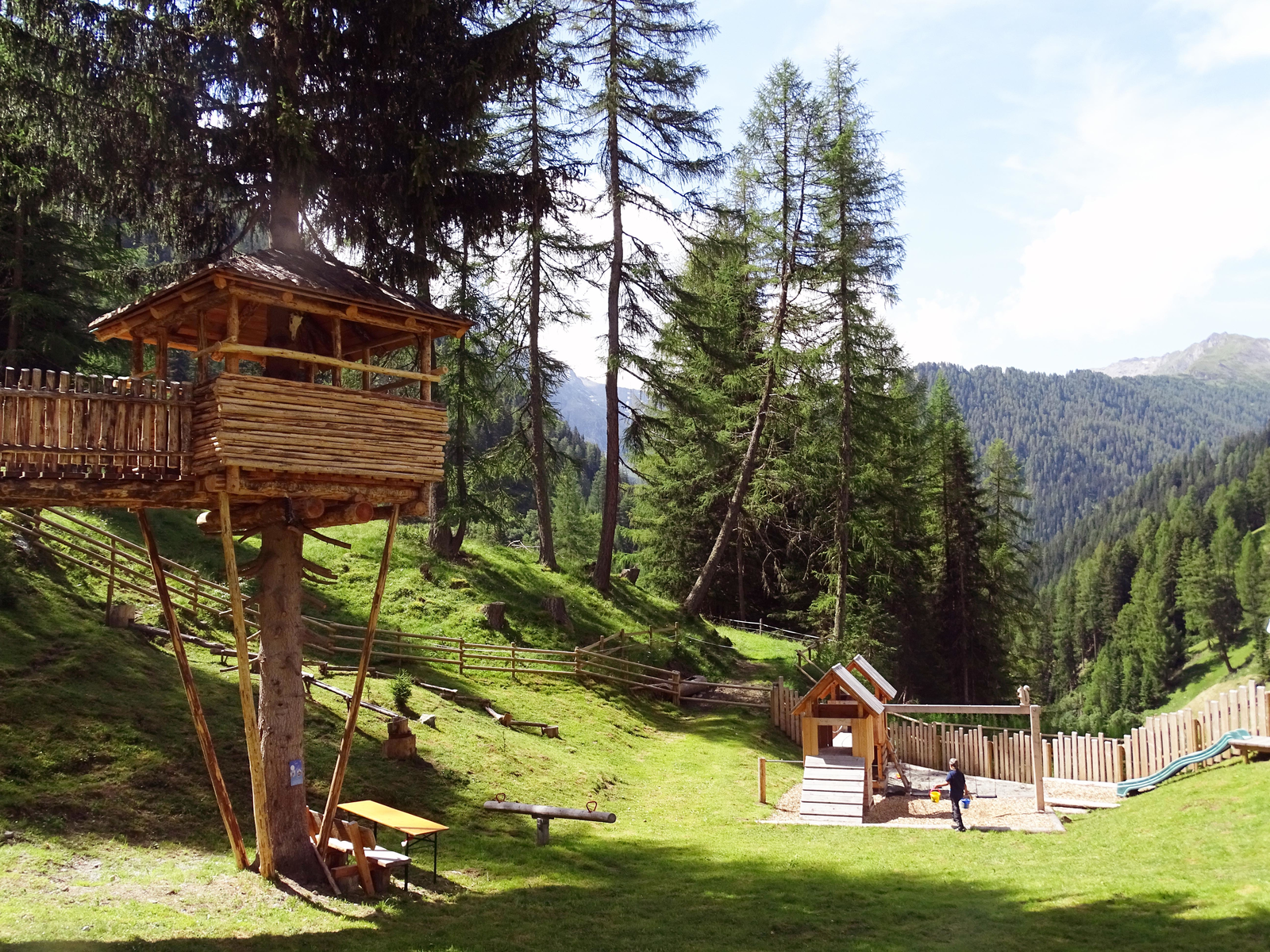 Discover the 4 elements of fire, earth, water and air in the adventure playground in Spiss. In this idyllic yet very sunny woodland area, you will experience fun and games based on natural materials that unite with the forest. Local animals made of wood, the water play area, the tree house and various playground equipment invite you to climb, splash around and let off steam. Thanks to the generous barbecue area and the many seats, "recharging your batteries" is easy.