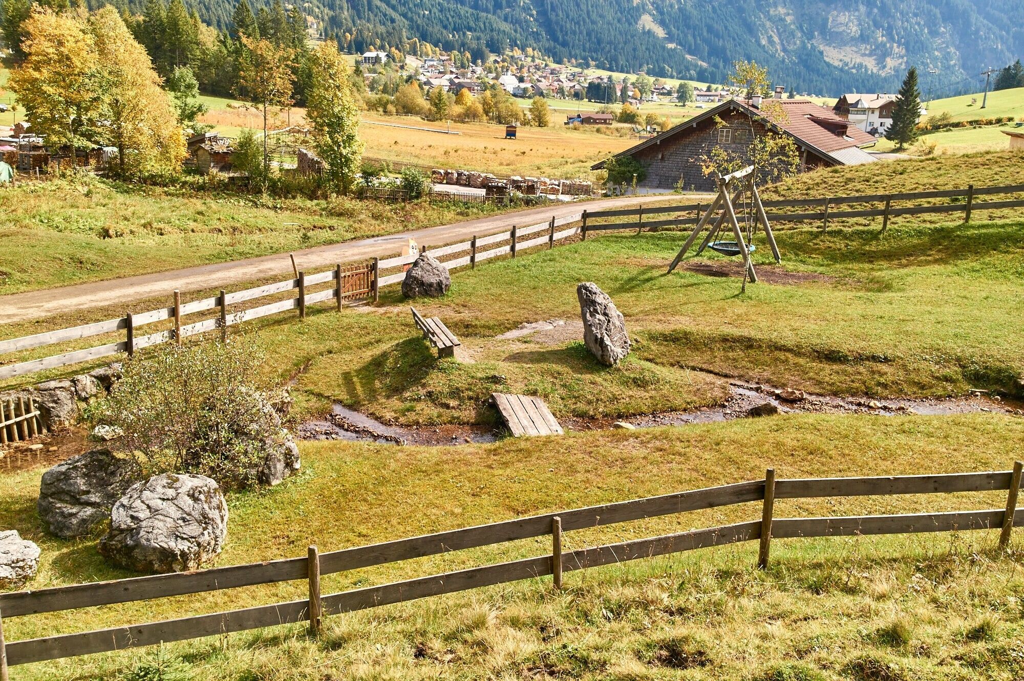The playground is located at the Schmittebächle near the parking lot at the lifts in Nesselwängle. Lots of great playground equipment awaits you. And afterwards relax your feet in the cool water.