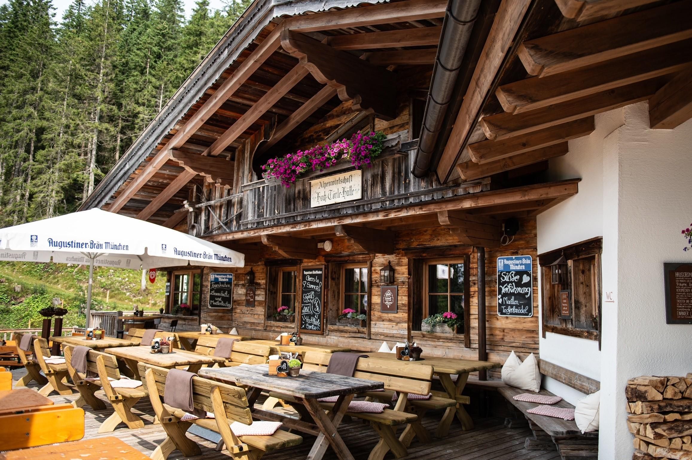 The Hochthörle Hut is located directly at the foot of the Wetterstein mountains.