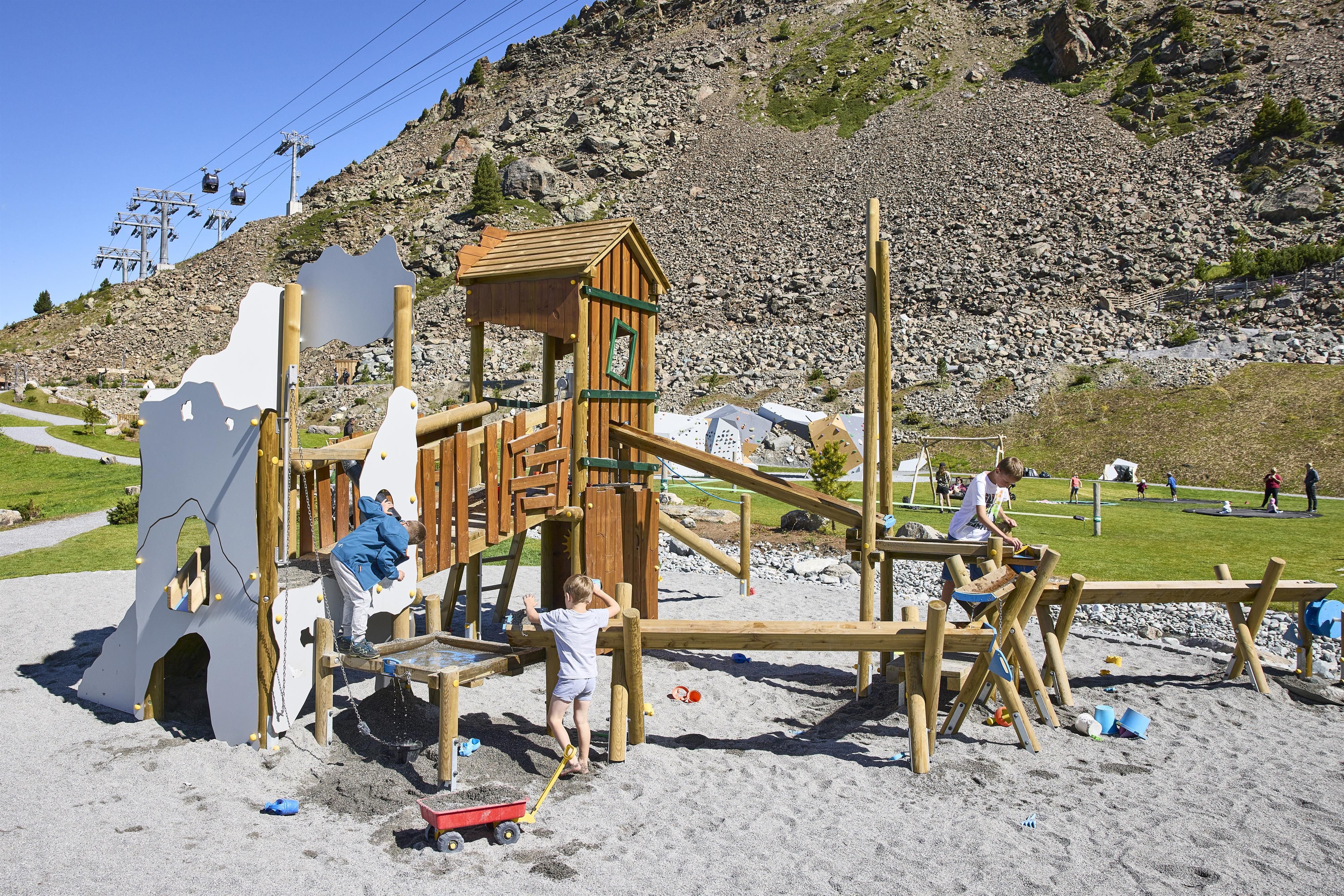 Arriving at the Idalp, the Vider Truja adventure park immediately attracts the kids' attention. Where to go first? To the water park, the bouldering tower, the slackline or one of the cozy barbecue areas? The Tyrolean adventure park 'Vider Truja' on the Idalp has countless games for children and cozy places for parents to relax!