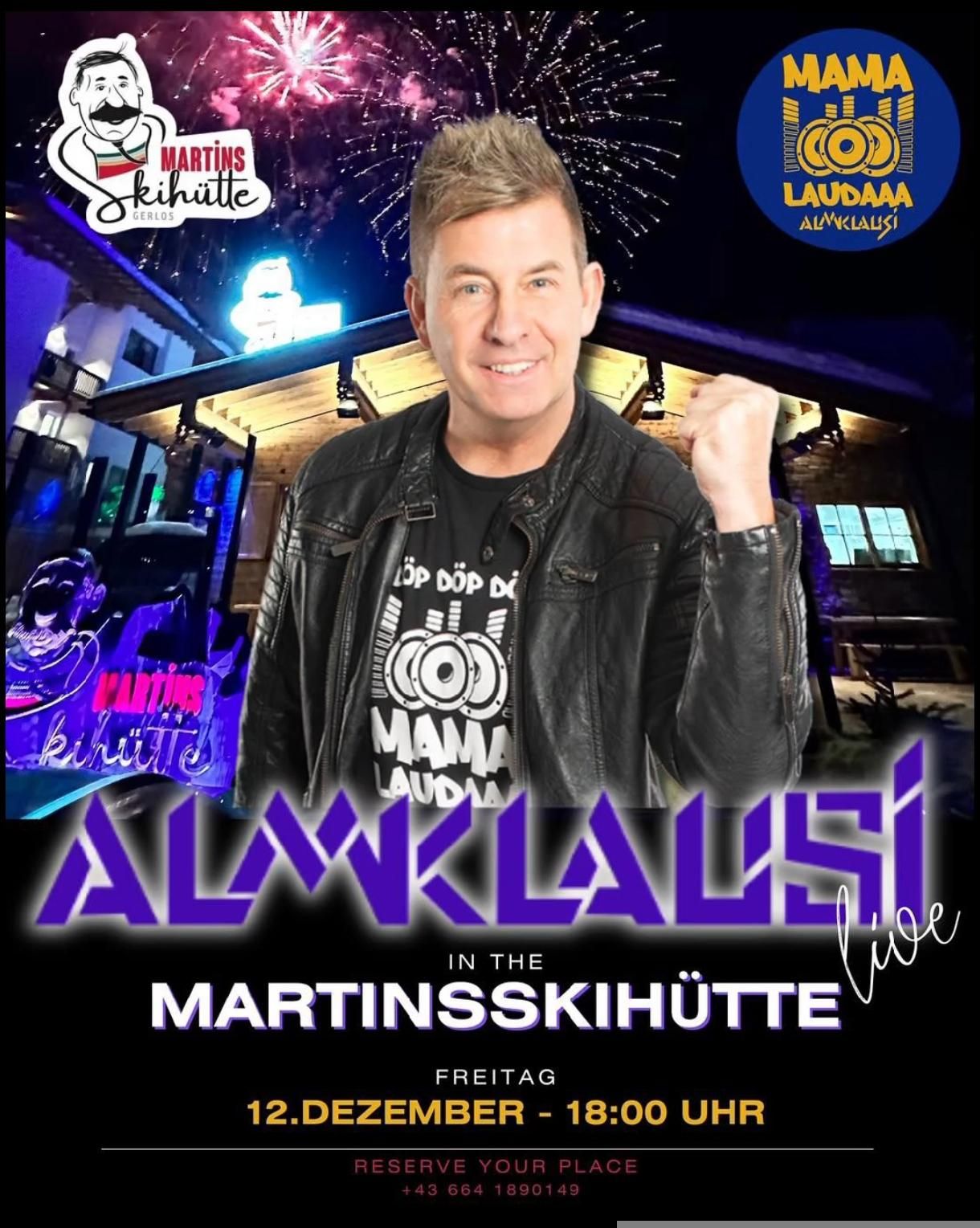 Almklausi live © Martins Skihütte Almklausi livePlace: Gerlos : 12. Dec 2025 see the eventsee the event: Almklausi live