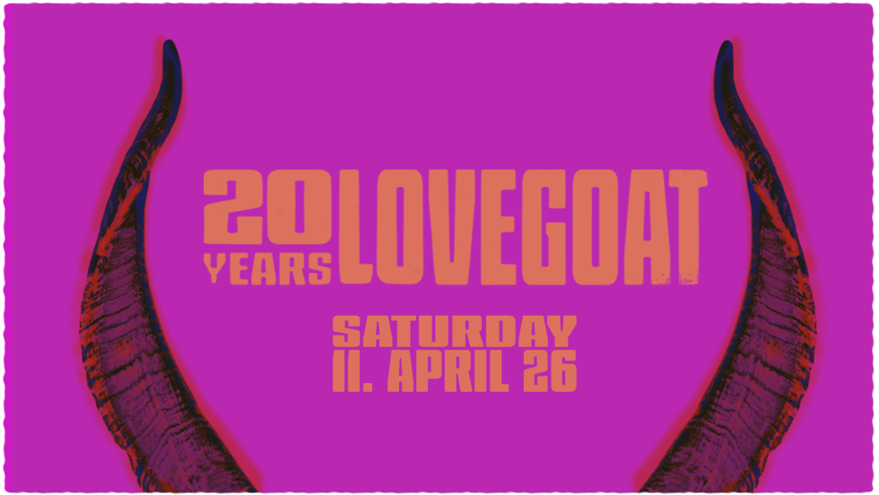 We’re celebrating 20 years of LOVEGOAT! Since 2006, we’ve been doing exactly what we feel like doing, mixing it up from space kraut to techno, from punk through wave to metal. No labels, no genre constraints, just mad love for sound and underground spirit. Together with all of you, we want to celebrate an evening in a class of its own! Featuring: