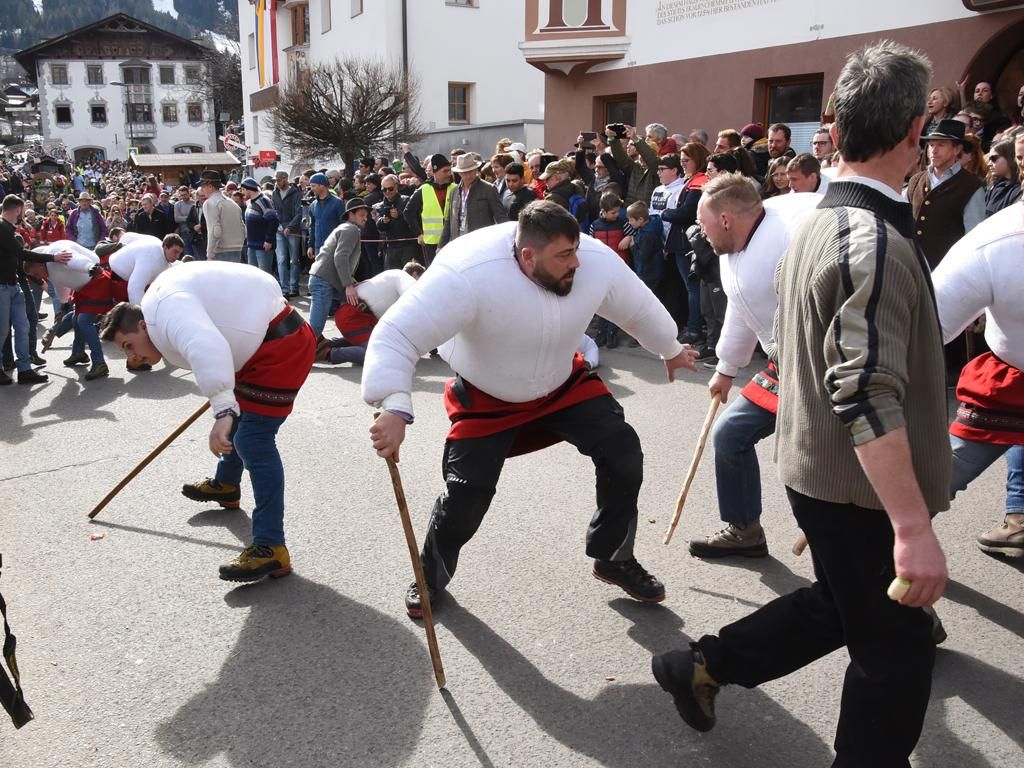 Carnival finale in Axams! Traditional end of carnival time in Axams with the famous "Axamer Wampelerreiten". In 2016, awarded by UNESCO as Intangible Cultural Heritage in Austria: